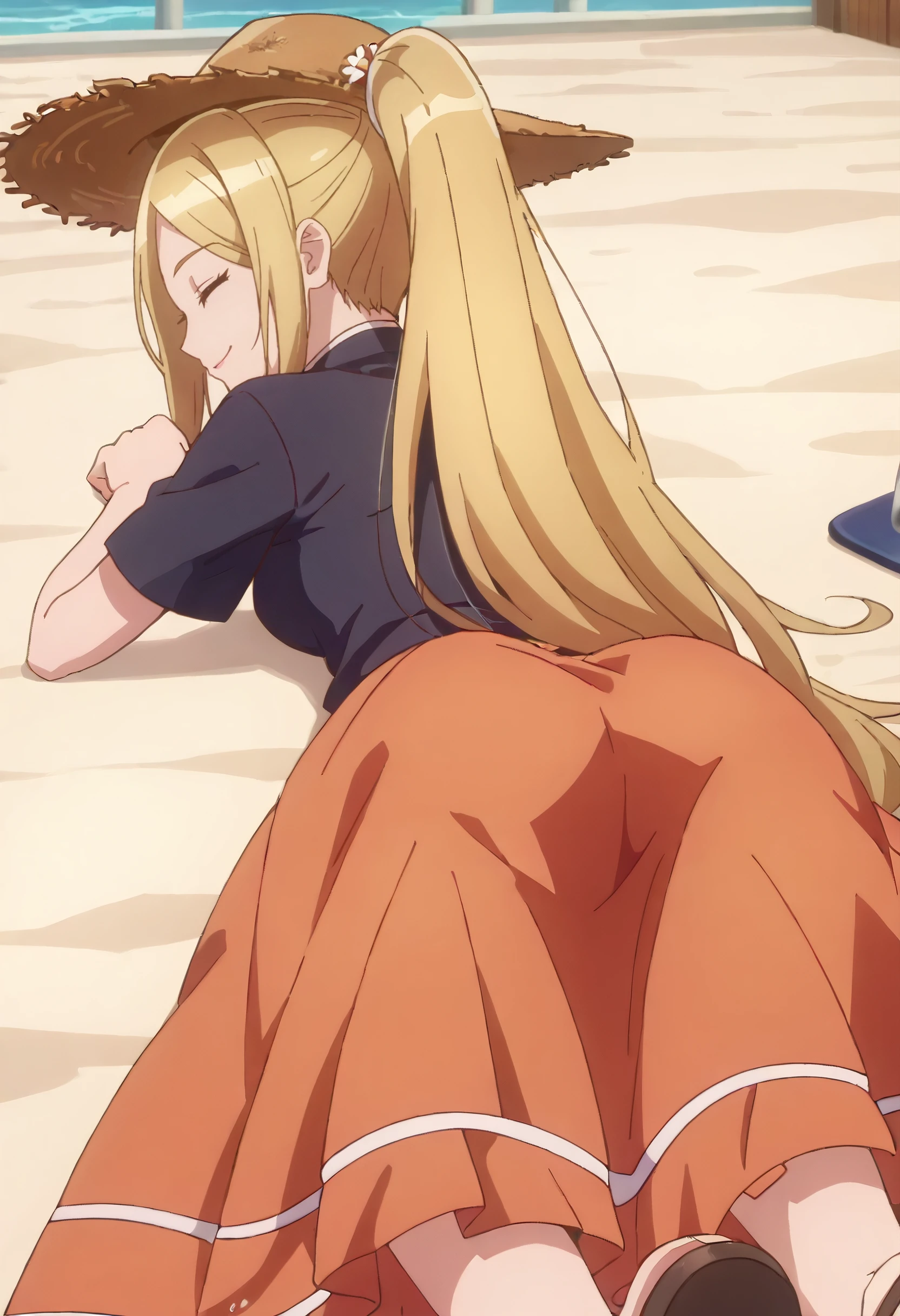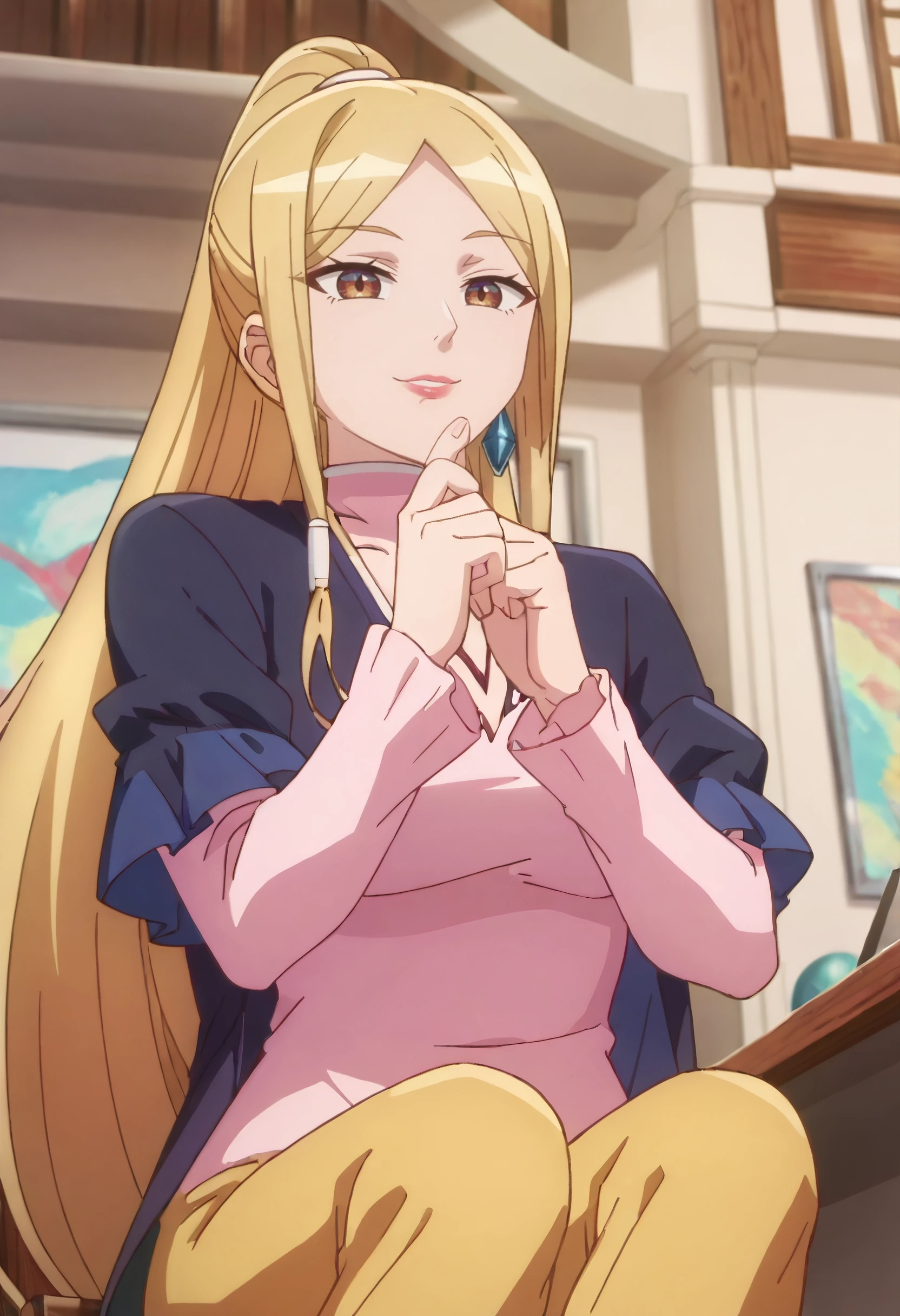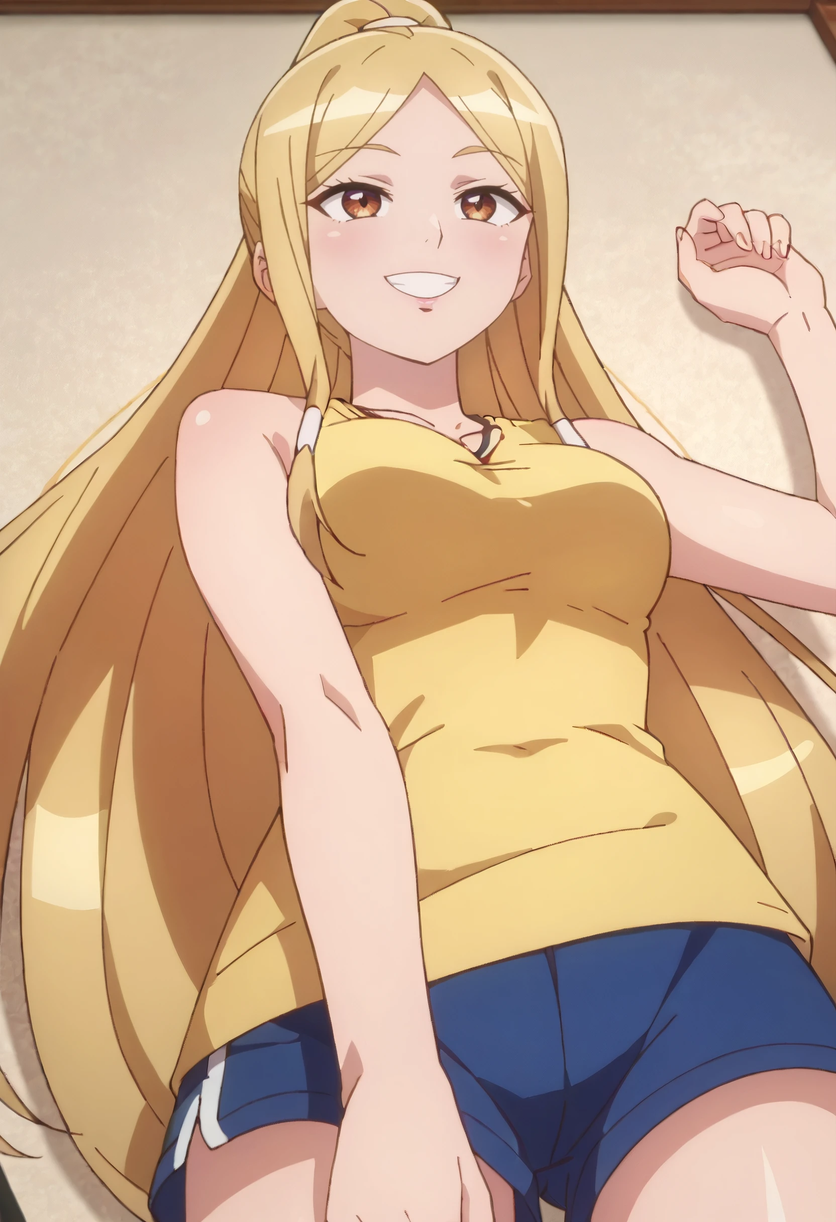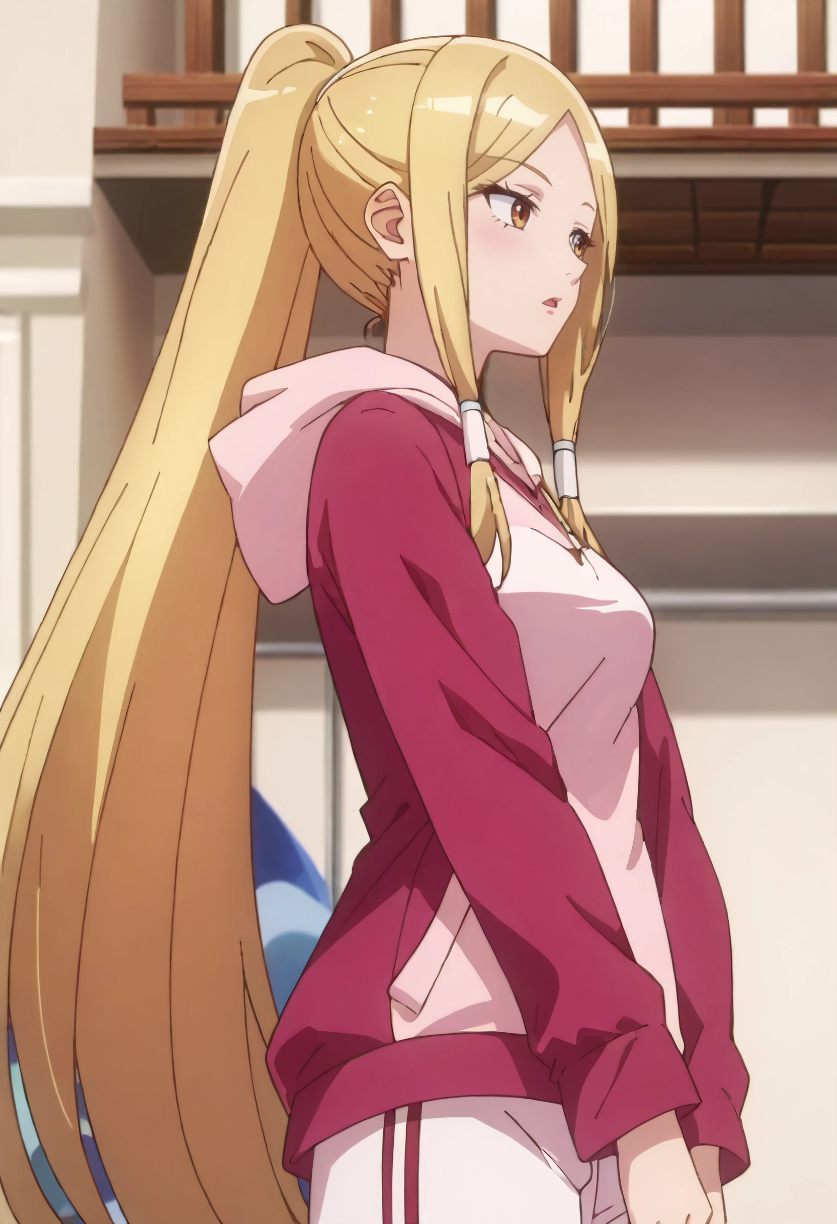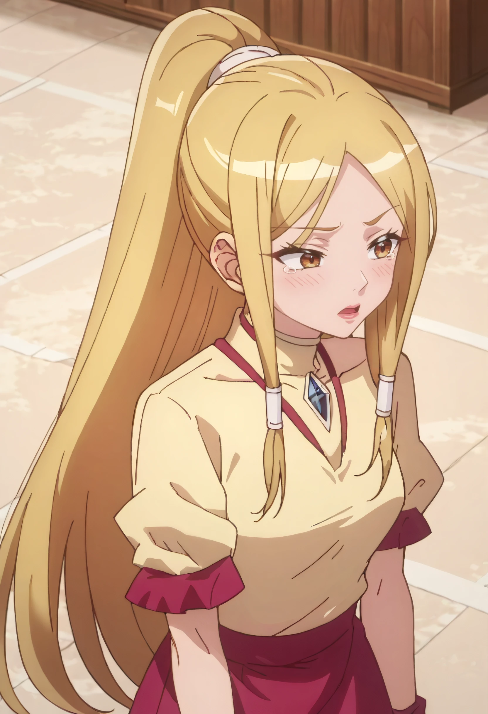 OWSDarcy, long hair, blonde hair, ponytail, sidelocks, parted bangs, very long hair, hair tubes, high ponytail, brown eyes,
