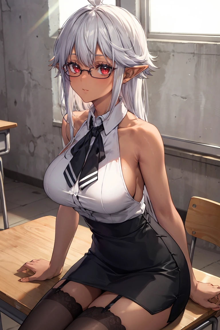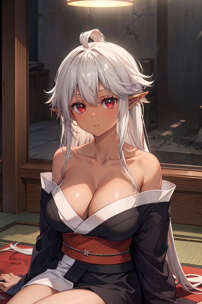 reanette, long hair, pointy ears, dark-skinned female, sidelocks, large breasts