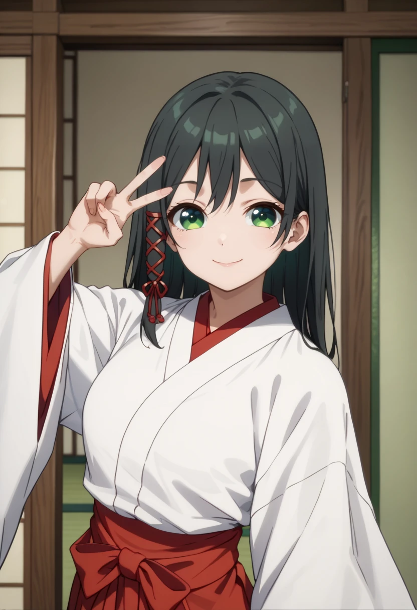 outfit: japanese clothes, miko, hakama skirt, red hakama, white kimono, wide sleeves