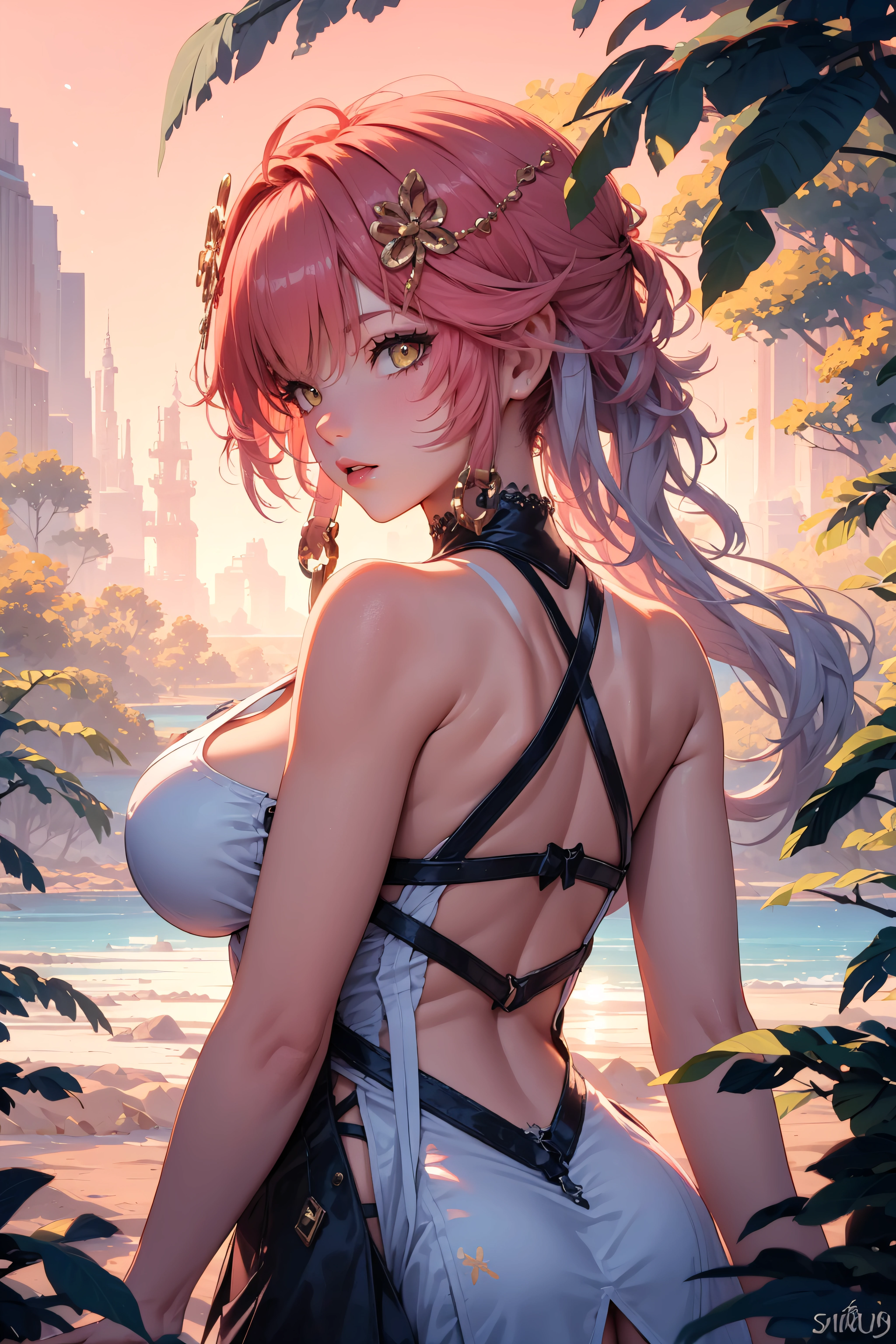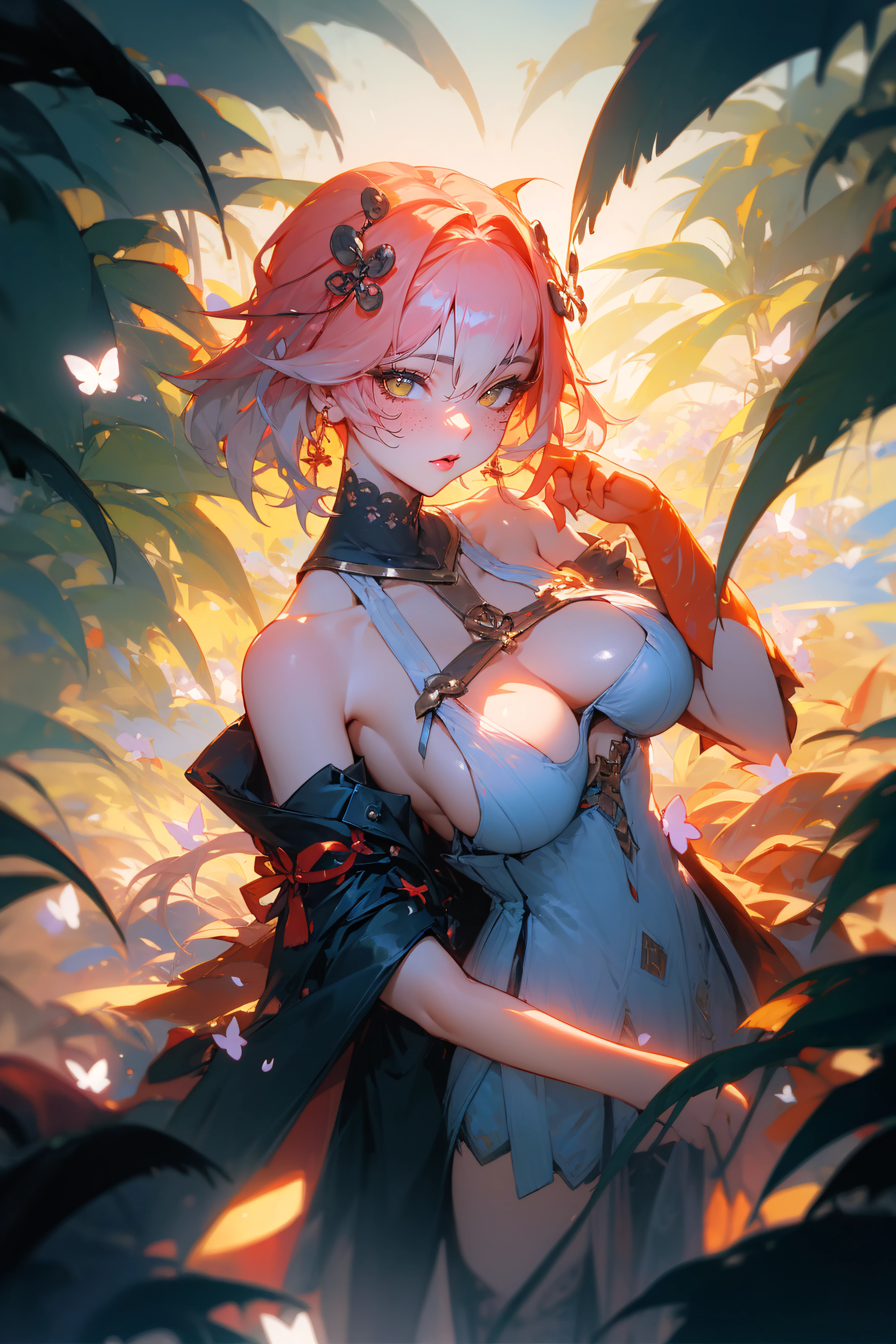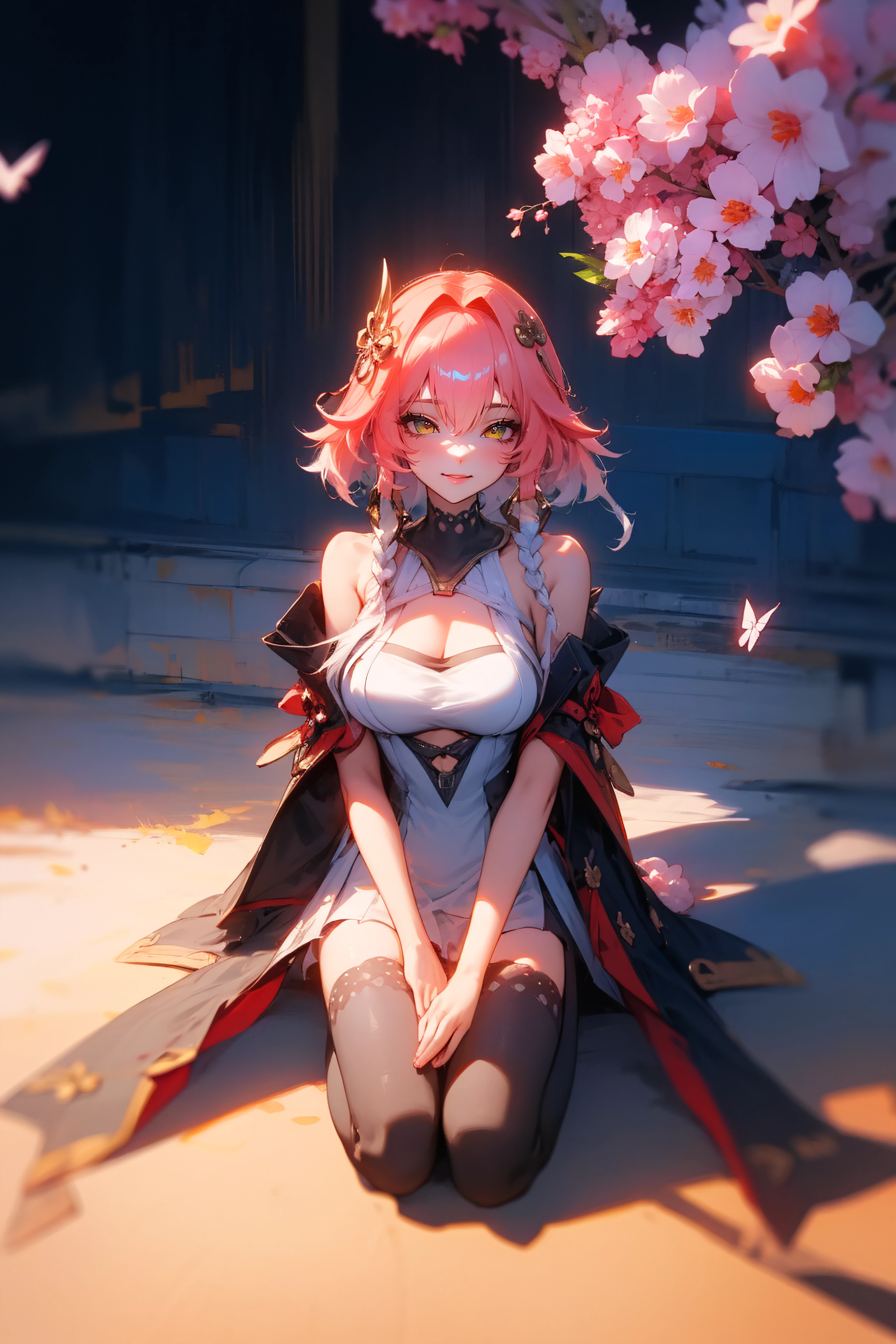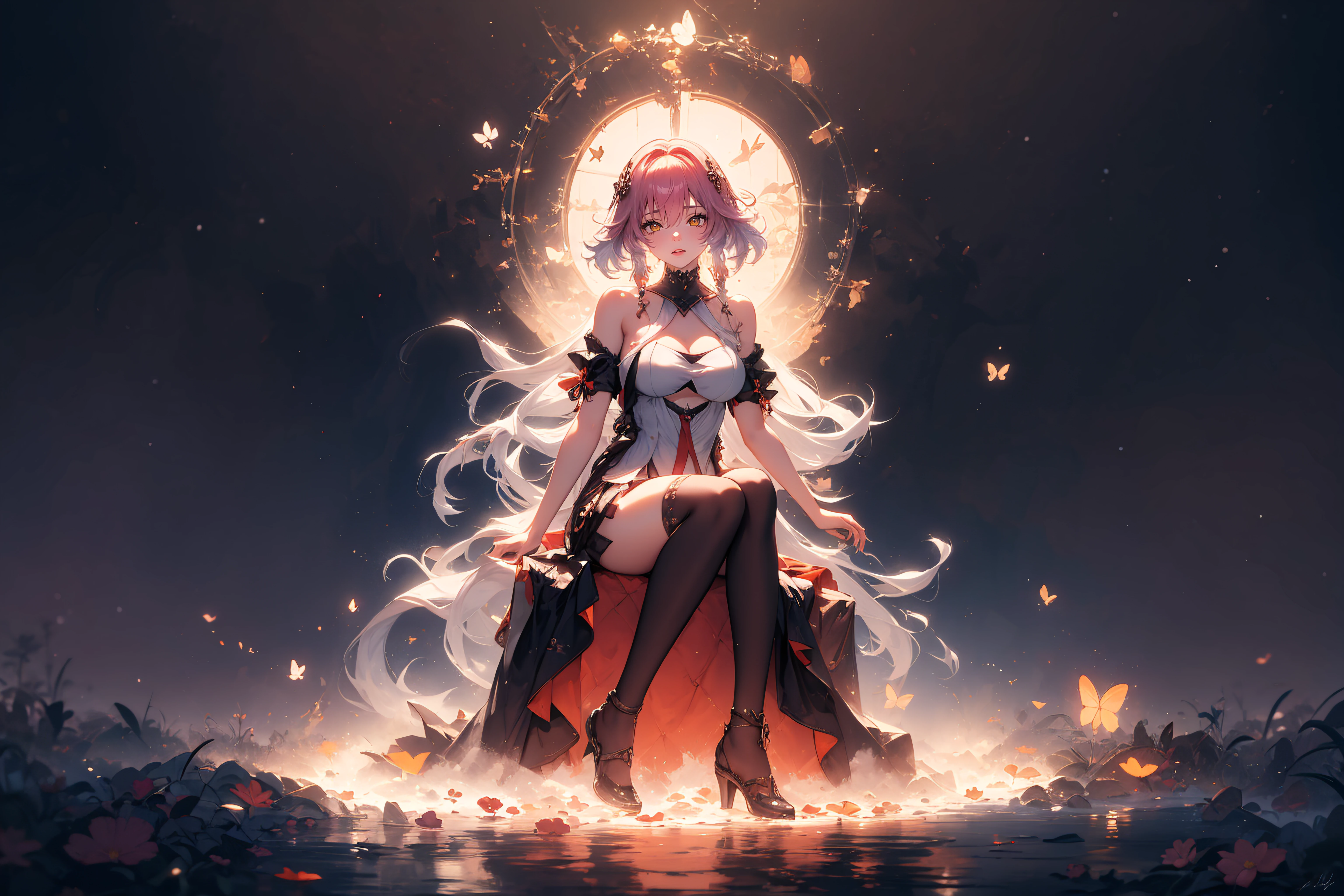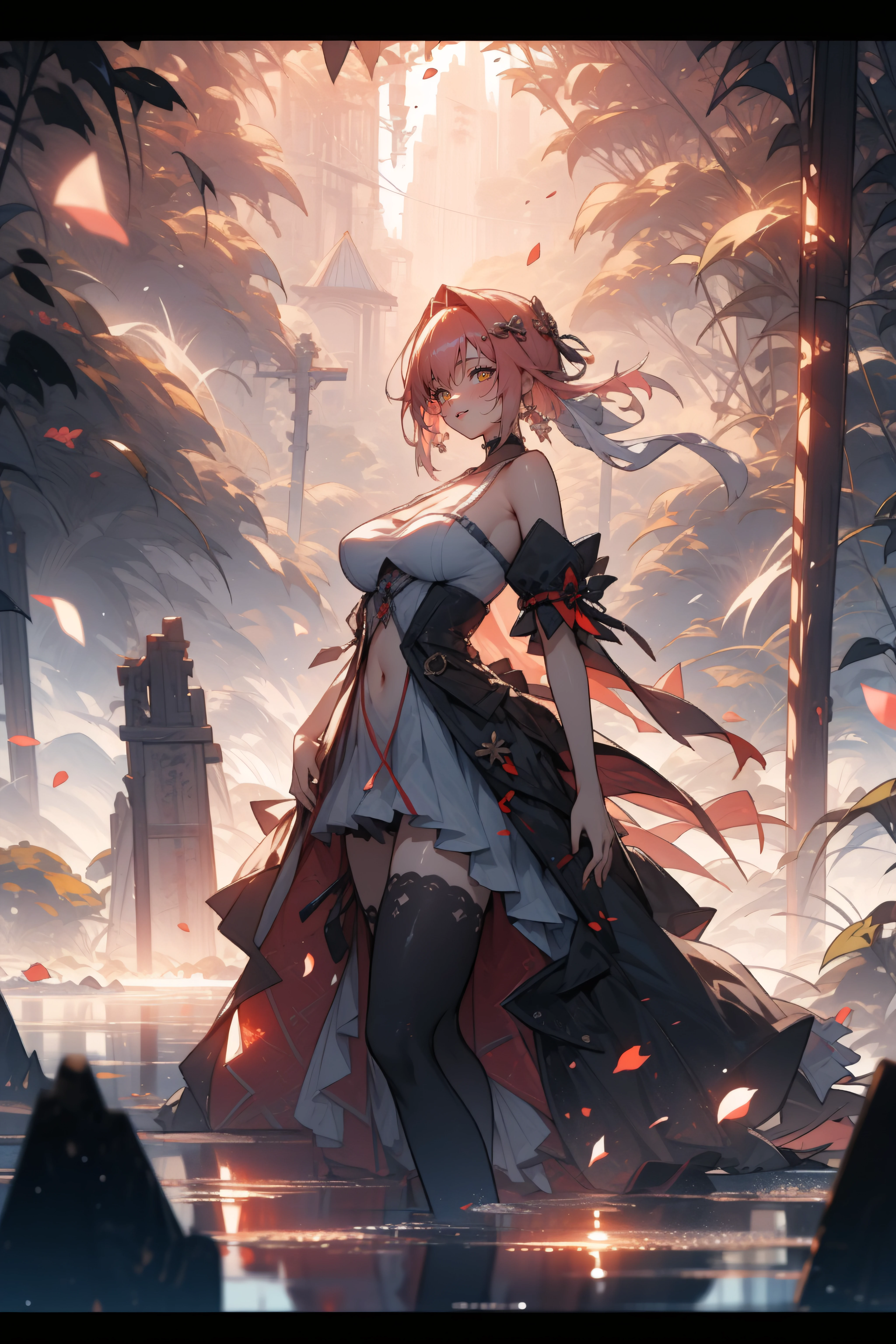 thighhighs, dress, cleavage, bare shoulders, black thighhighs, white dress,