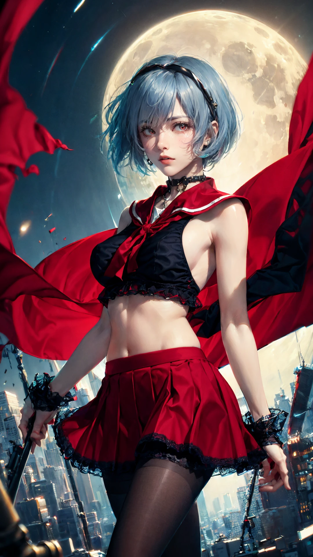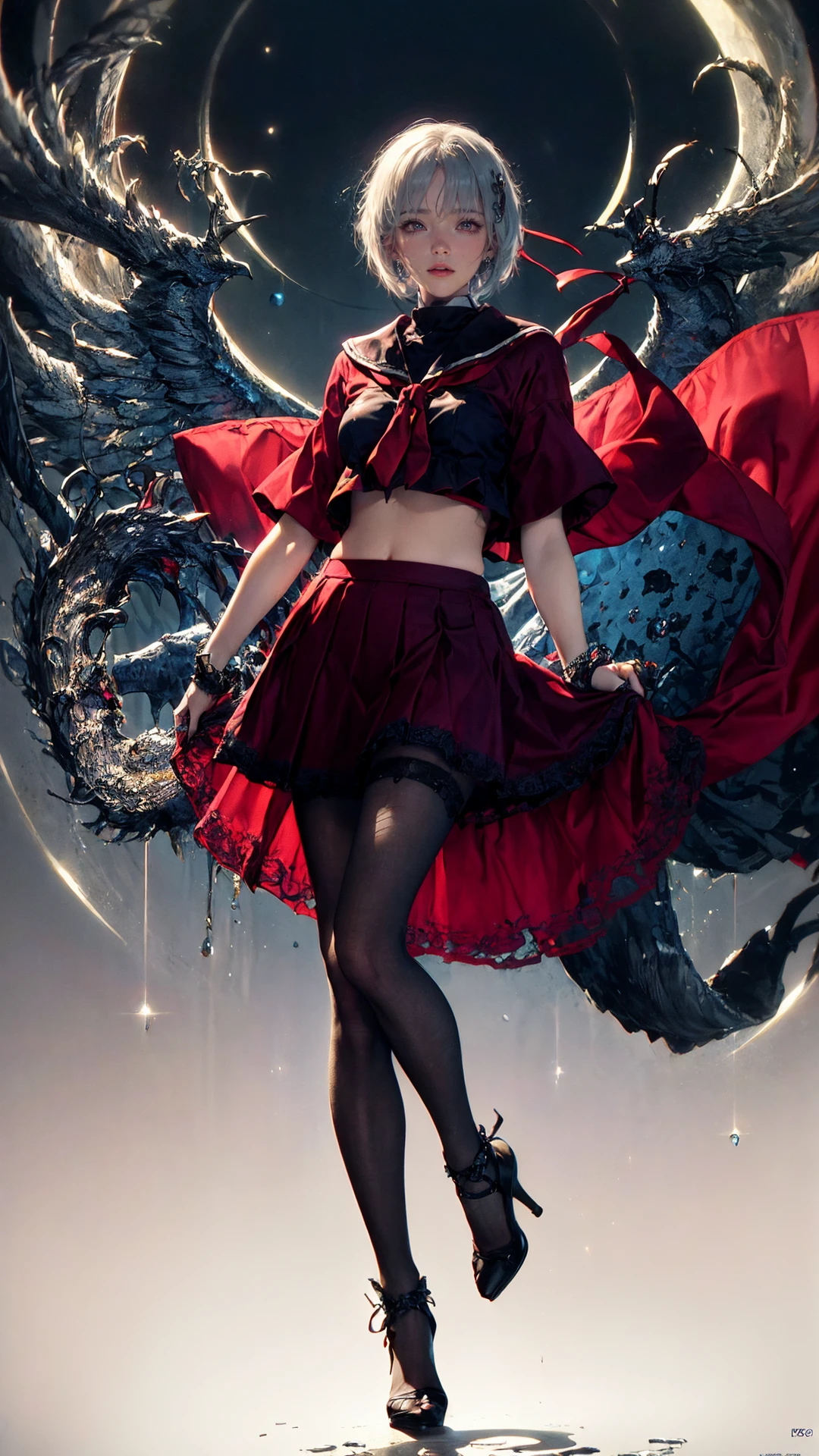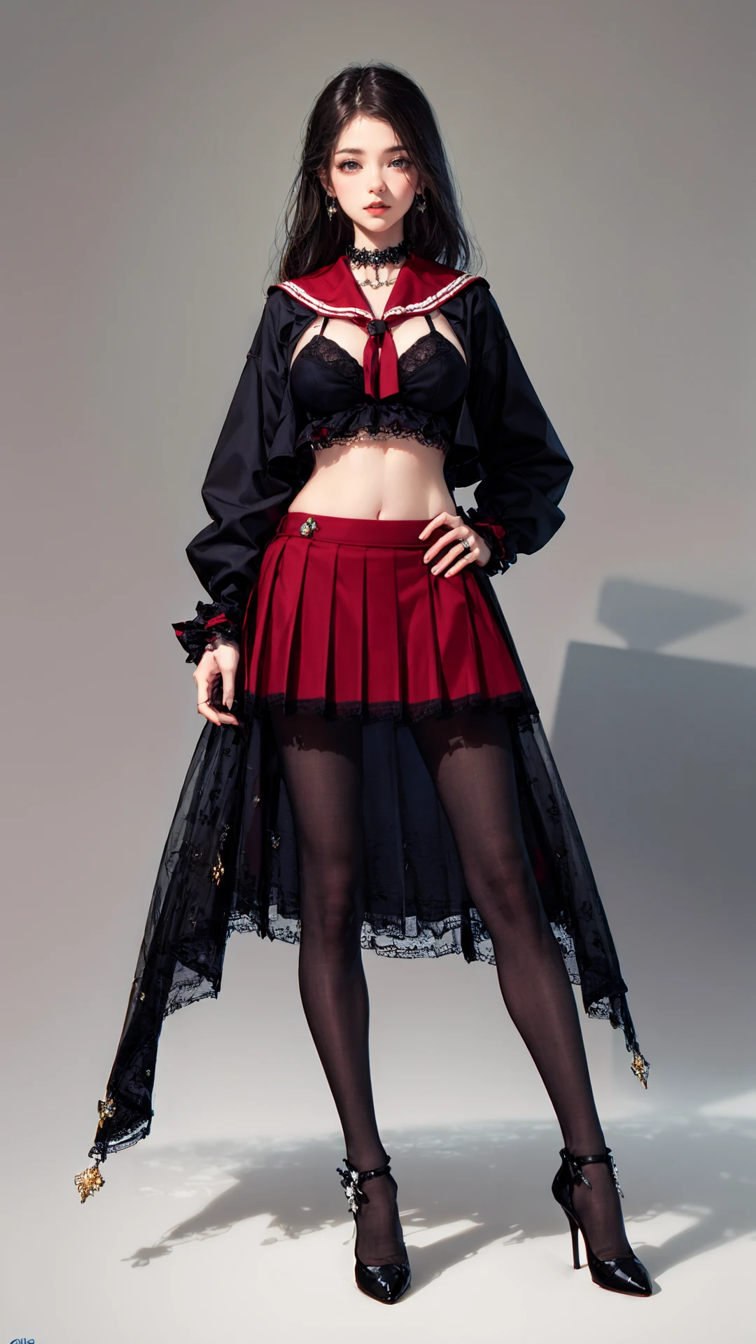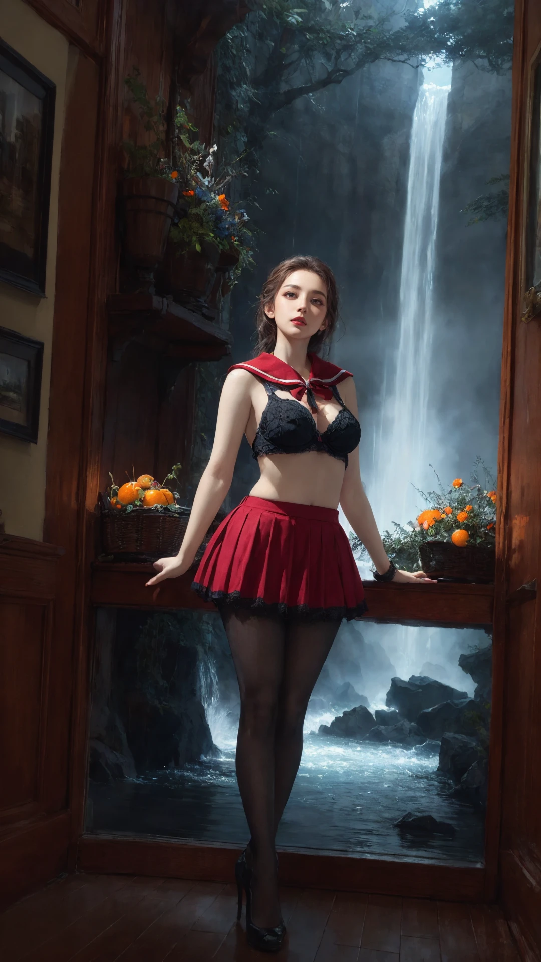 4、触发词为:tutututu,red_skirt, school uniform, black_bra, underwear,lingerie,midriff,red_sailor_collar,