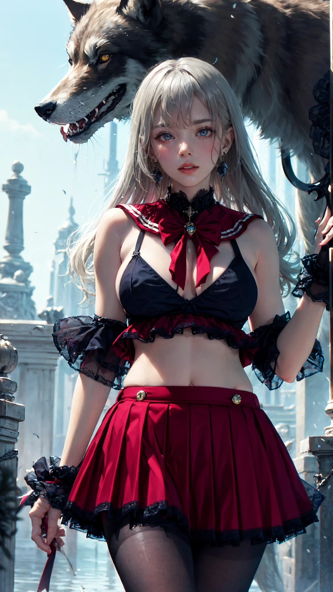 4. The trigger words are: tutututu, red_skirt, school uniform, black_bra, underwear, lingerie, midriff, red_sailor_collar,