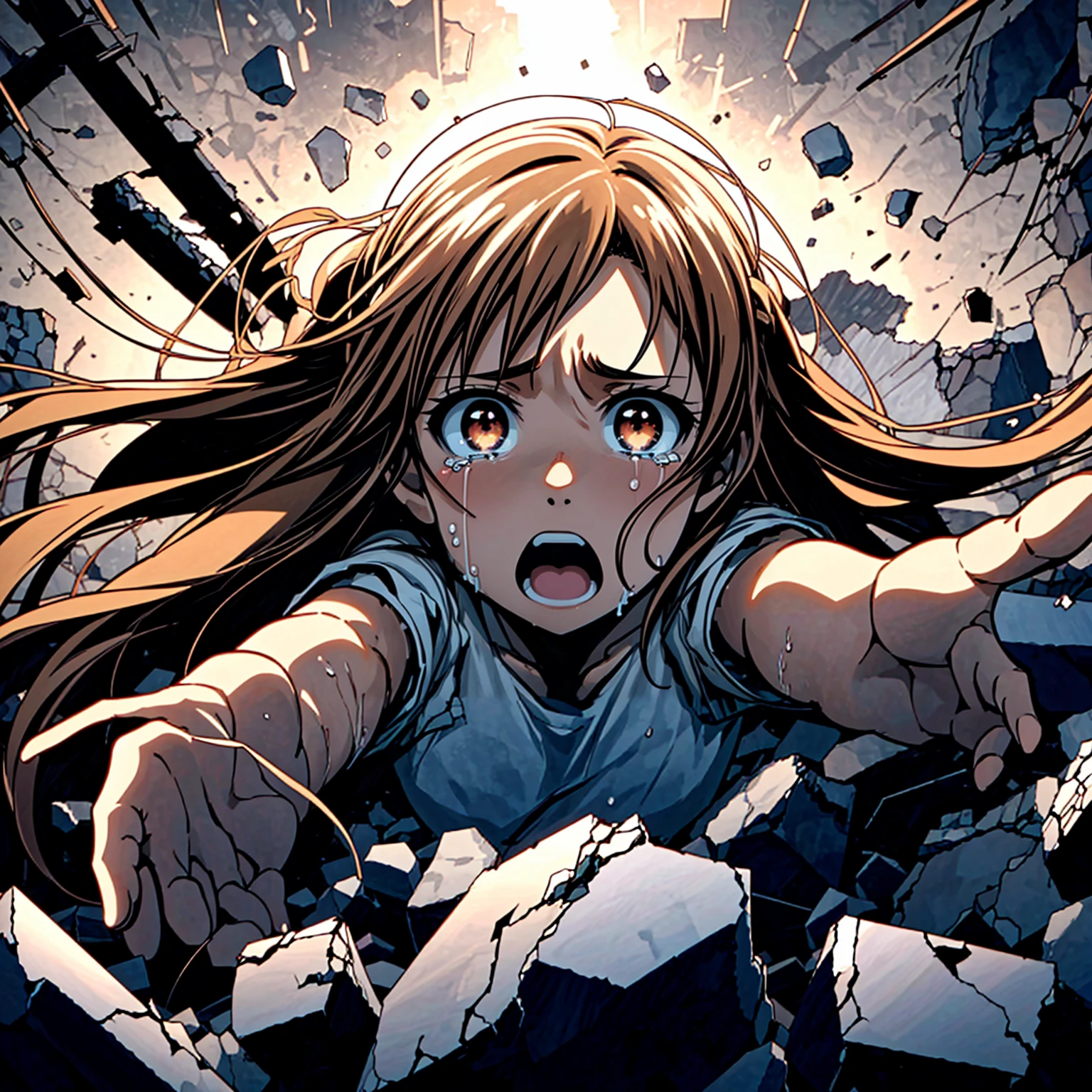 I created a Lora where my favorite character is buried in debris. Similar to scenes where characters are submerged in sand or magma, prompts like skirts or socks make it more likely to generate images where those parts are not fully covered in debris. Therefore, if you want the character to be buried up to their neck, avoid prompts for decorations below the neck. Additionally, when testing this type of debris Lora, I found that images with debris above the neck are less common, so including prompts like reaching towards the viewer, outstretched arm, reaching, outstretched hand, and foreshortening helps to create images where it appears the character is being swallowed by the debris. For a focus on the upper part of the body, please use close-up or portrait prompts.