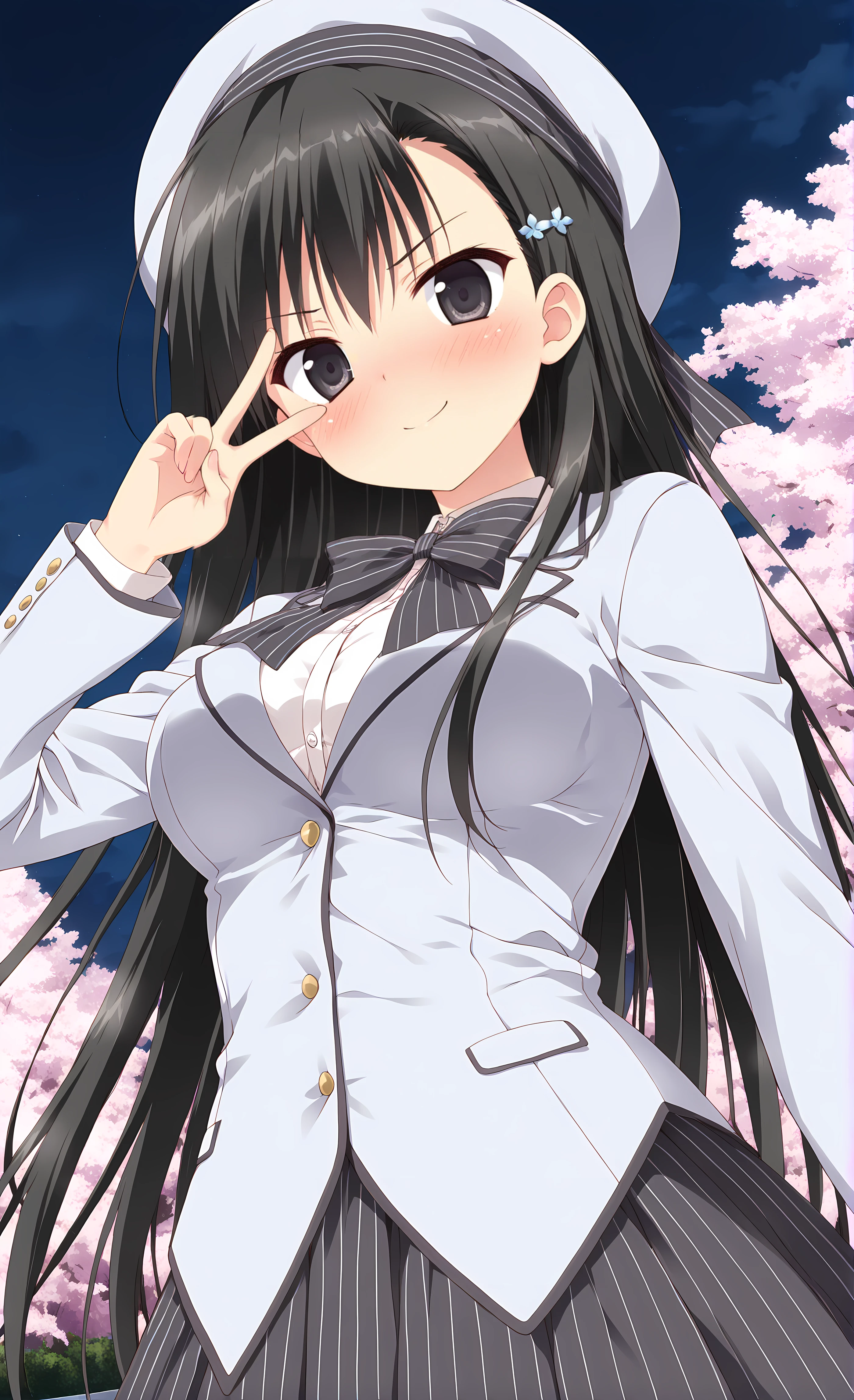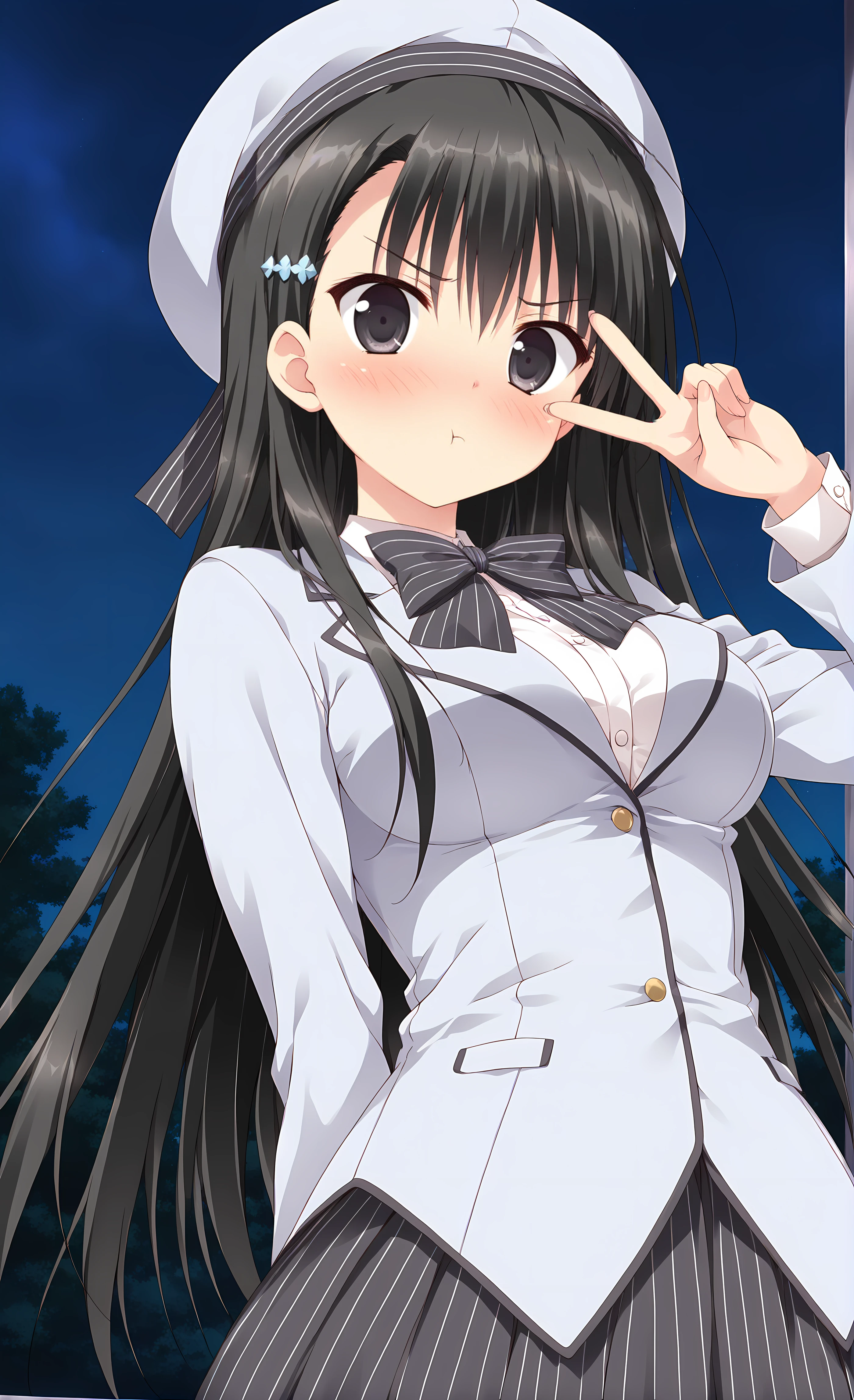 Base: Fuyuka,black hair,hair ornament,long hair,black eyes,hairclip,medium breasts