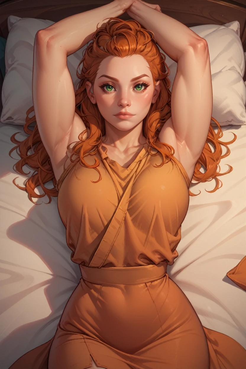 HFWAloy, 1girl, orange hair, long hair, green eyes