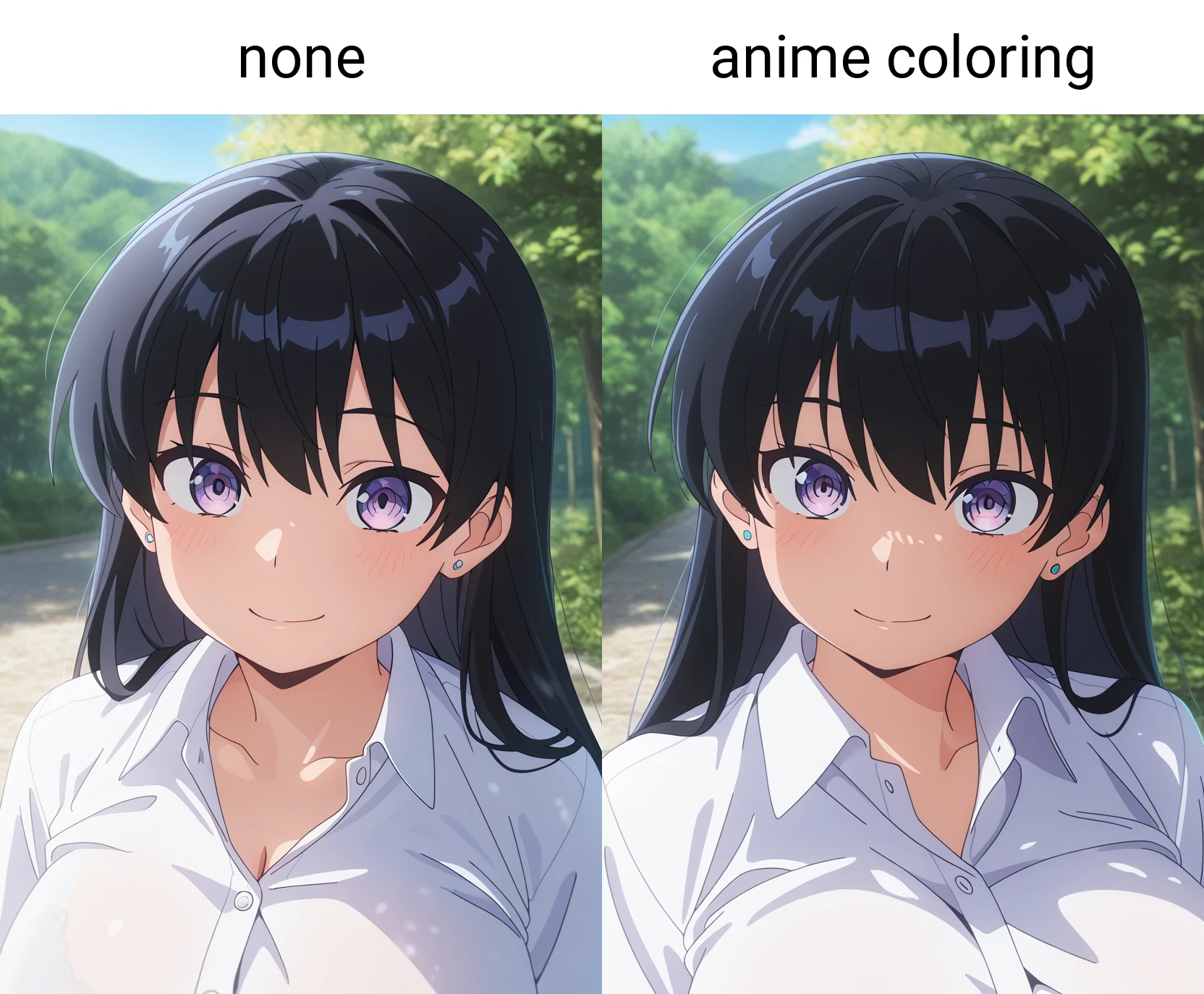 Using 'anime coloring' in the prompt will make the illustration look closer to an anime style.