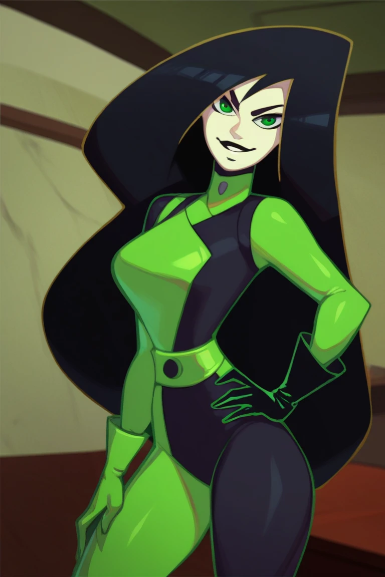 sh3g0, green skin, colored skin, black hair, long hair, green eyes, black lips