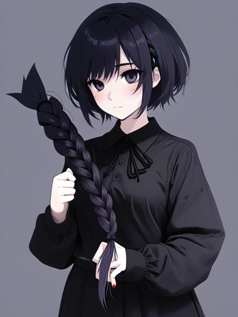 Trigger words: cut off hair cut off braid holding braid holding hair