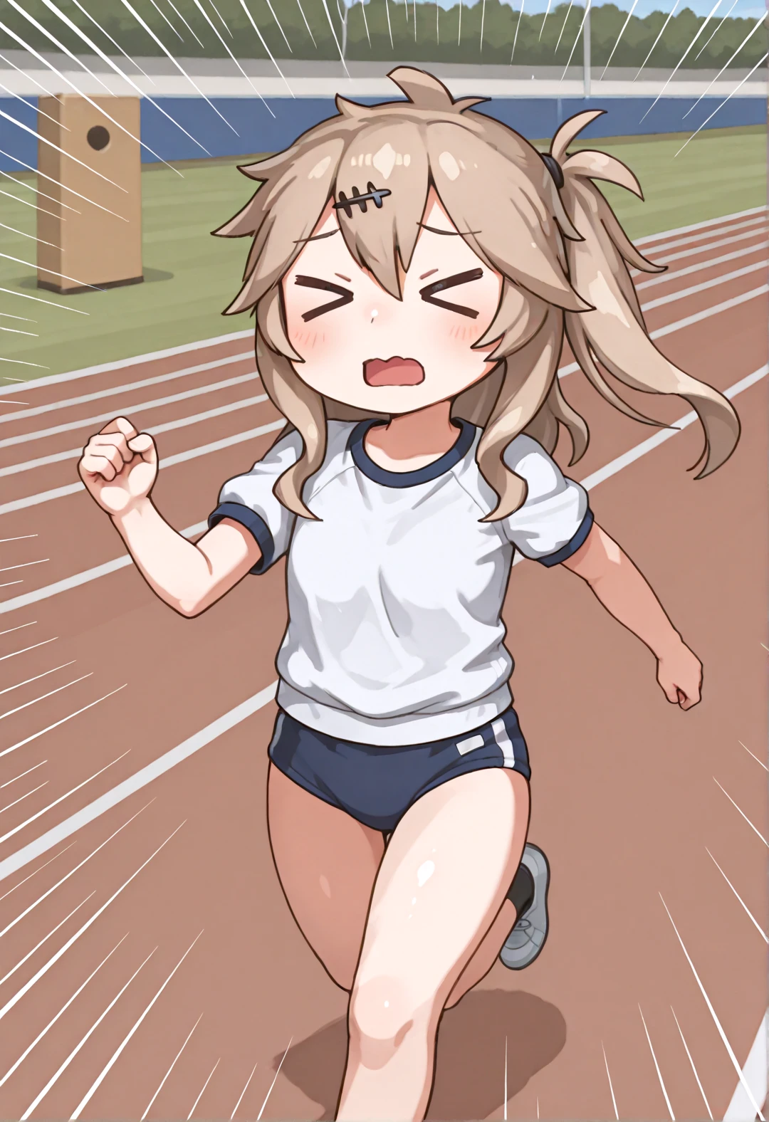 KasukabeTsumugiSKMTAHR, kasukabe tsumugi, blue eyes, brown hair, side ponytail, hairclip,