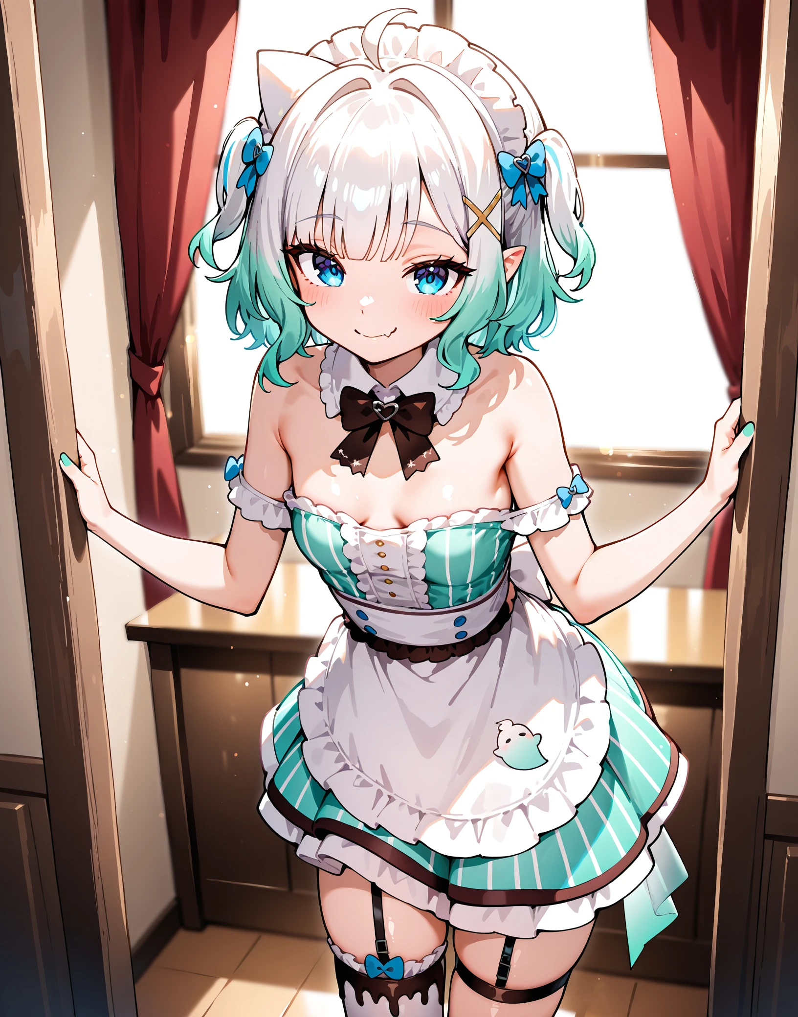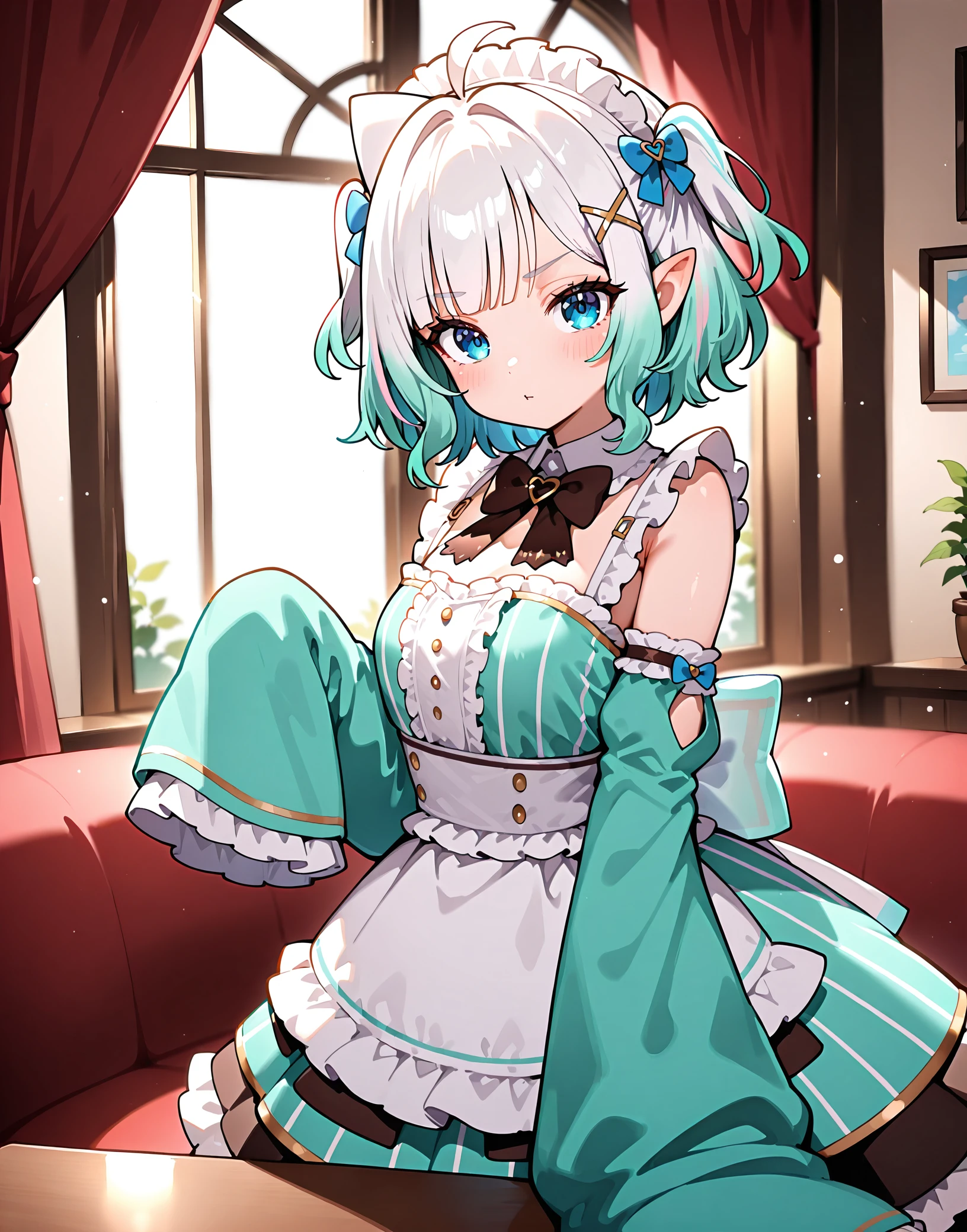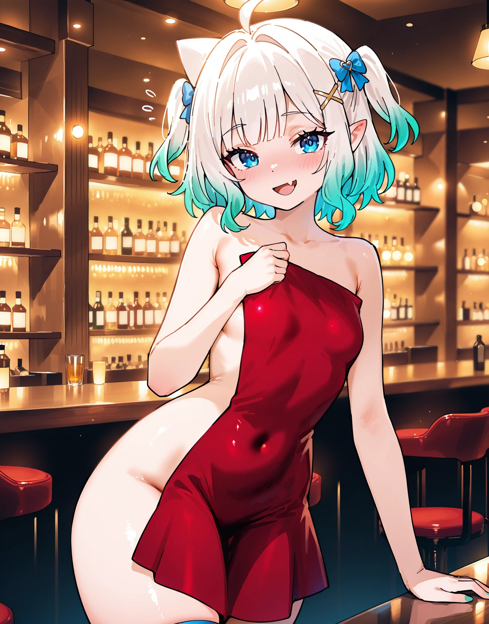 mintfantome, single thighhigh, thigh strap, frills, short hair, twintails,Red Dress