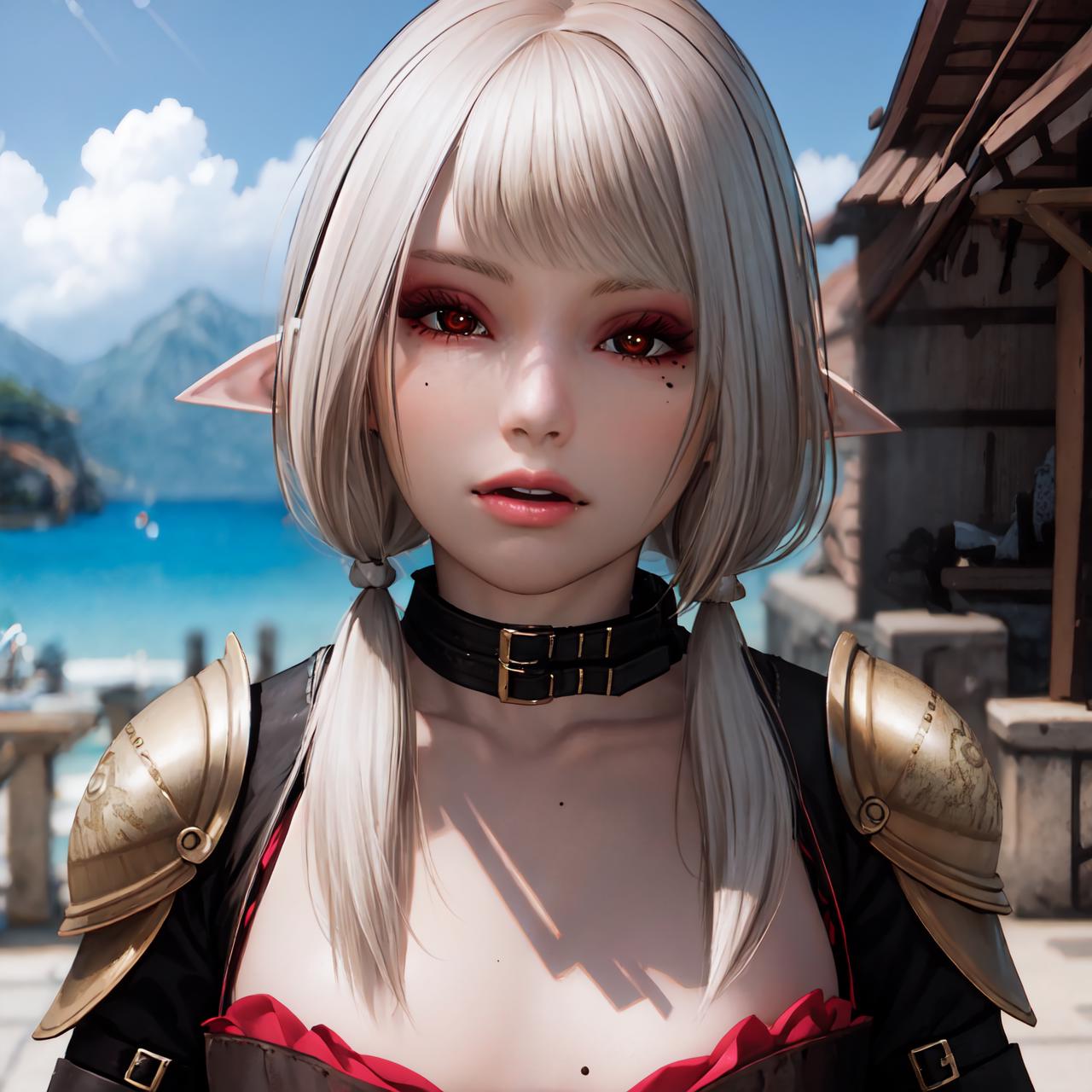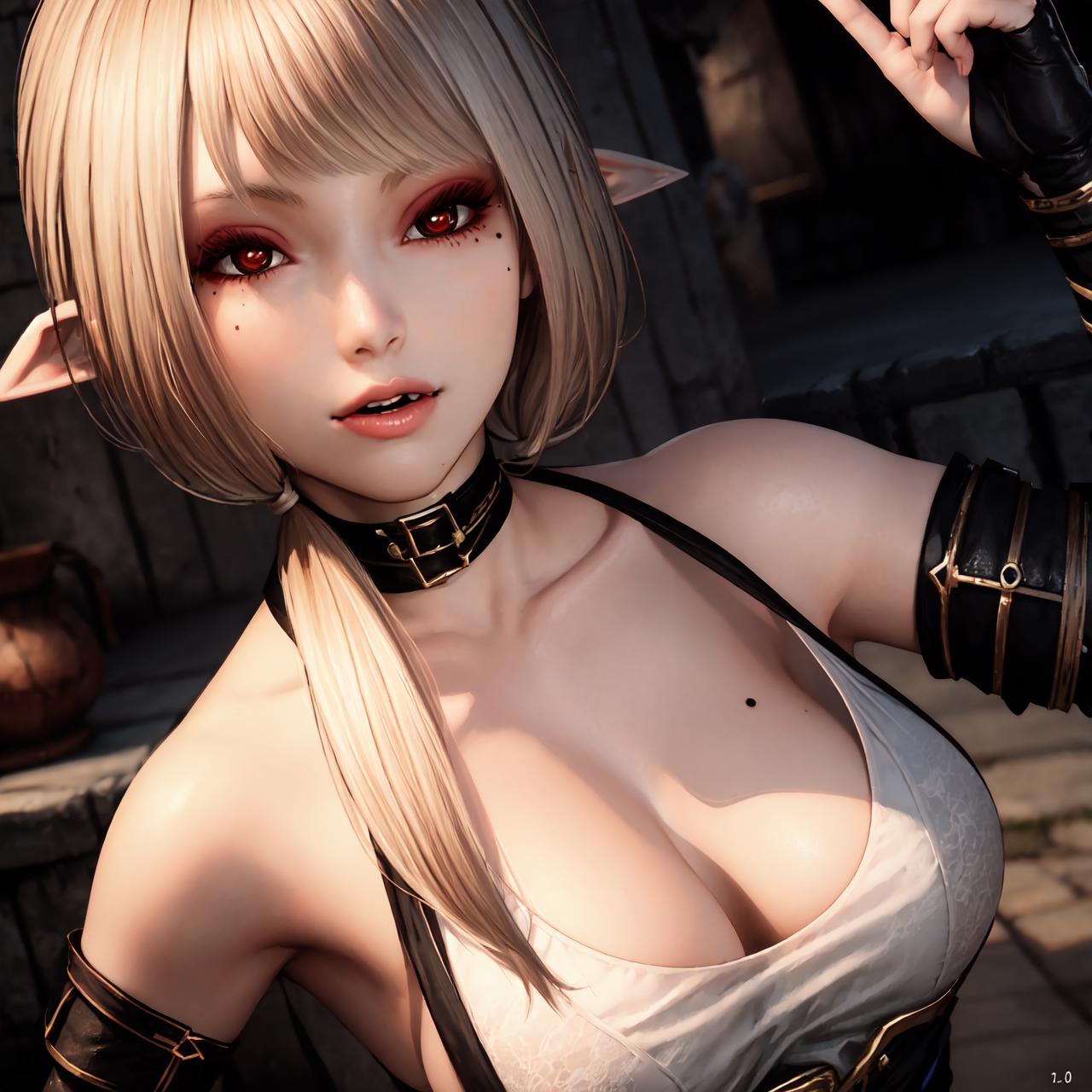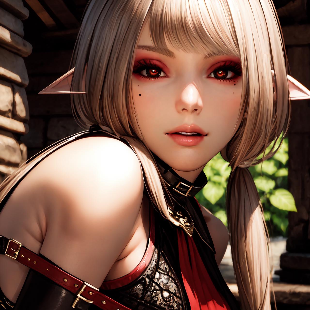 Model based on korosukenari's popular original character for Skyrim (and my favorite non-voiced follower!) called Eleonora. She is a beautiful slim vampire with mesmerizing red eyes. Unfortunately, the model couldn't properly capture the mole she has under her eyes so sometimes it shows up and sometimes it does not.