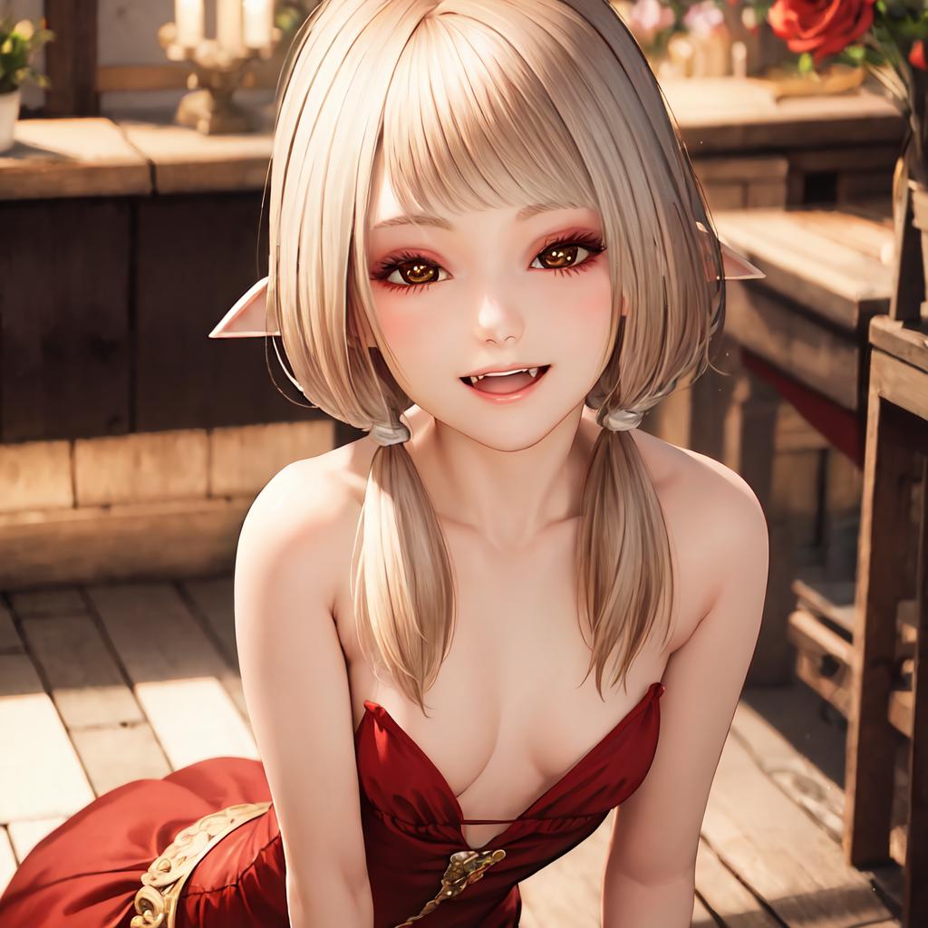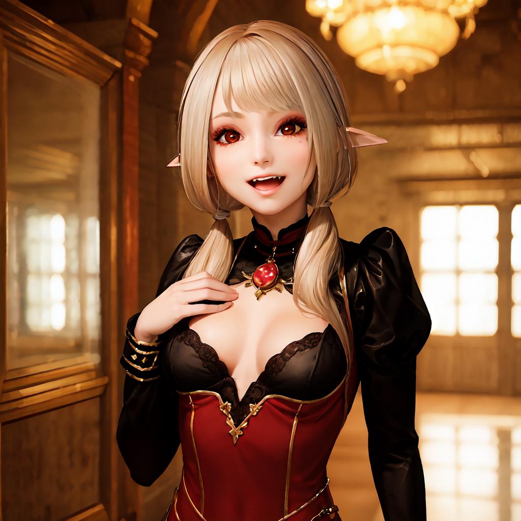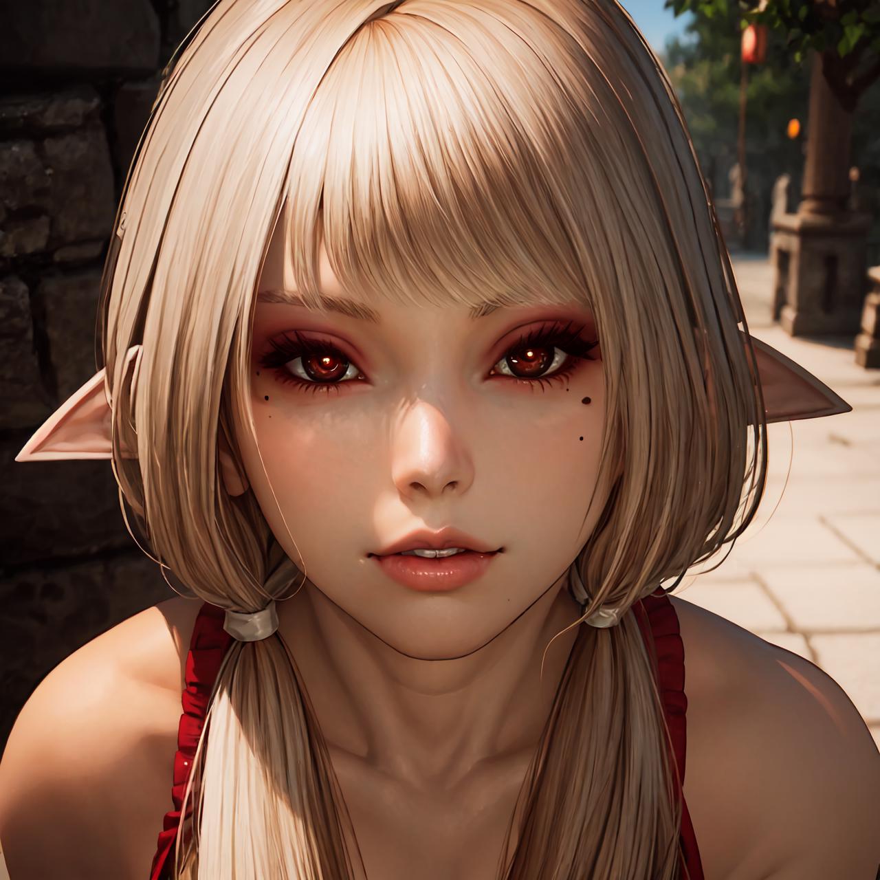 Model based on korosukenari's popular original character for Skyrim (and my favorite non-voiced follower!) called Eleonora. She is a beautiful slim vampire with mesmerizing red eyes. Unfortunately, the model couldn't properly capture the mole she has under her eyes so sometimes it shows up and sometimes it does not.