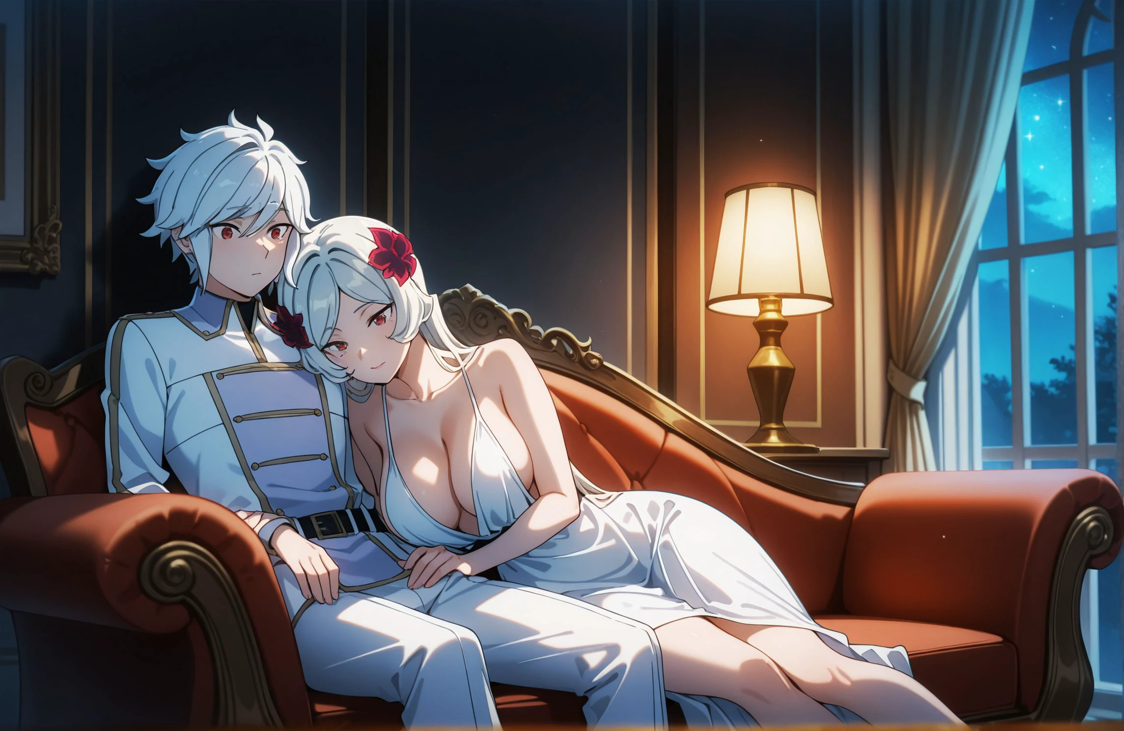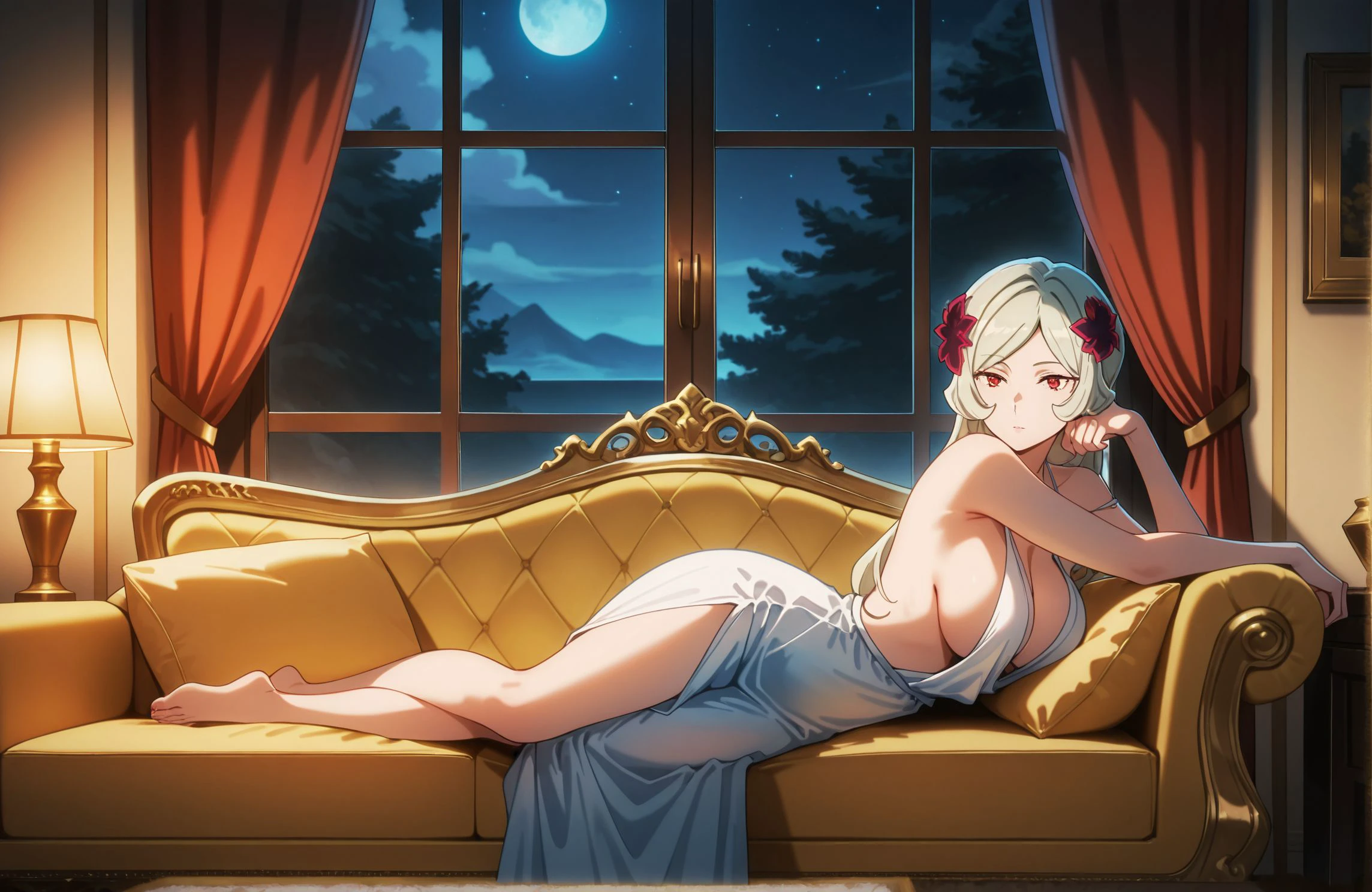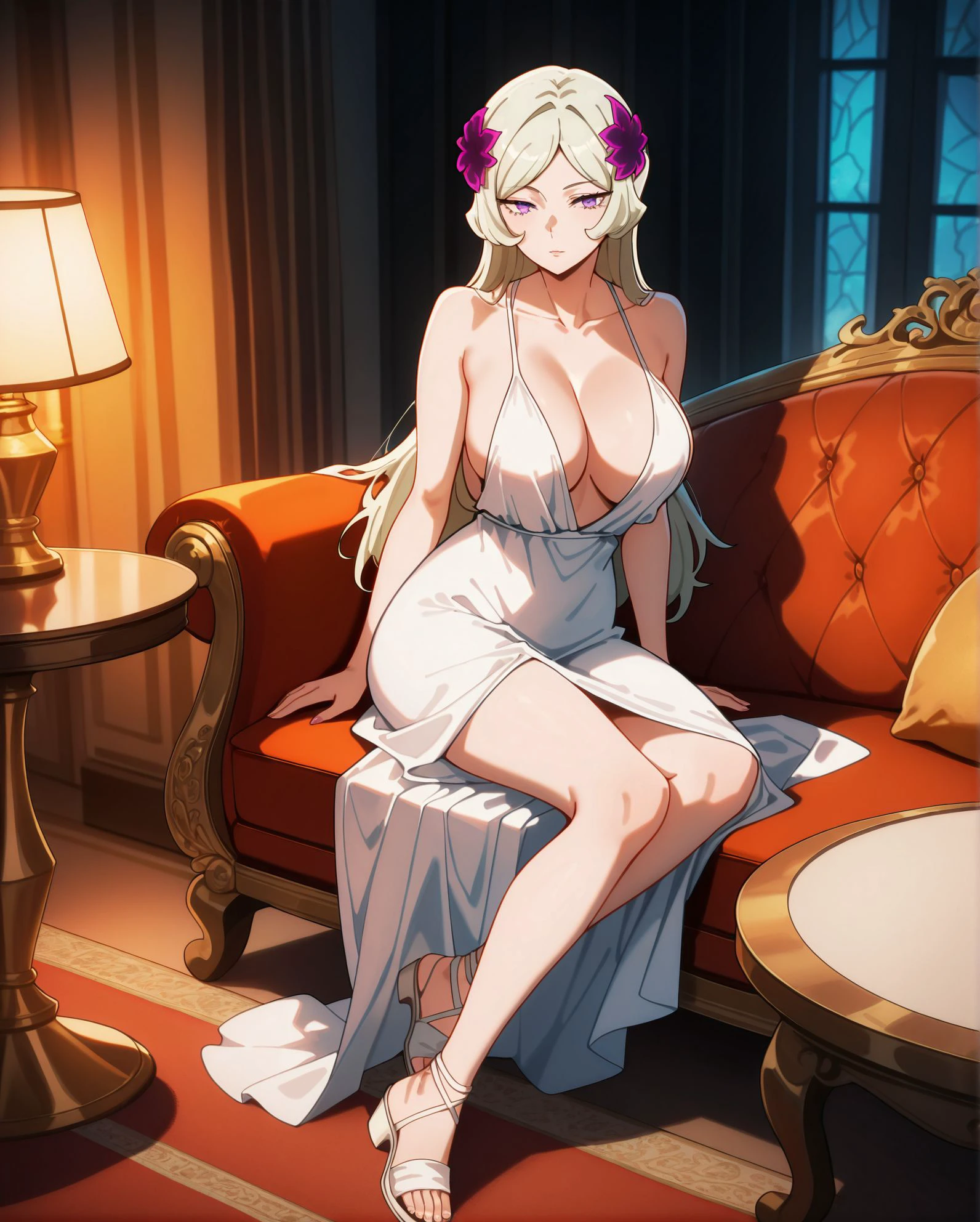 hair flower,hair ornament,cleavage, sideboob, large breasts,