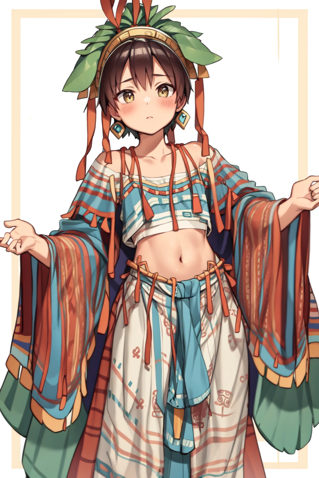 This is most likely one of the few Traditional Clothes LoRAs I've made to have 20 epochs instead of 10, but from what I generated, they match the look and feel of Mayan clothes and even avoids making them look like Chel from Road to El Dorado (not sure if you can recreate her on here without the need of a character lora of her, but that's something for you to try, I guess)