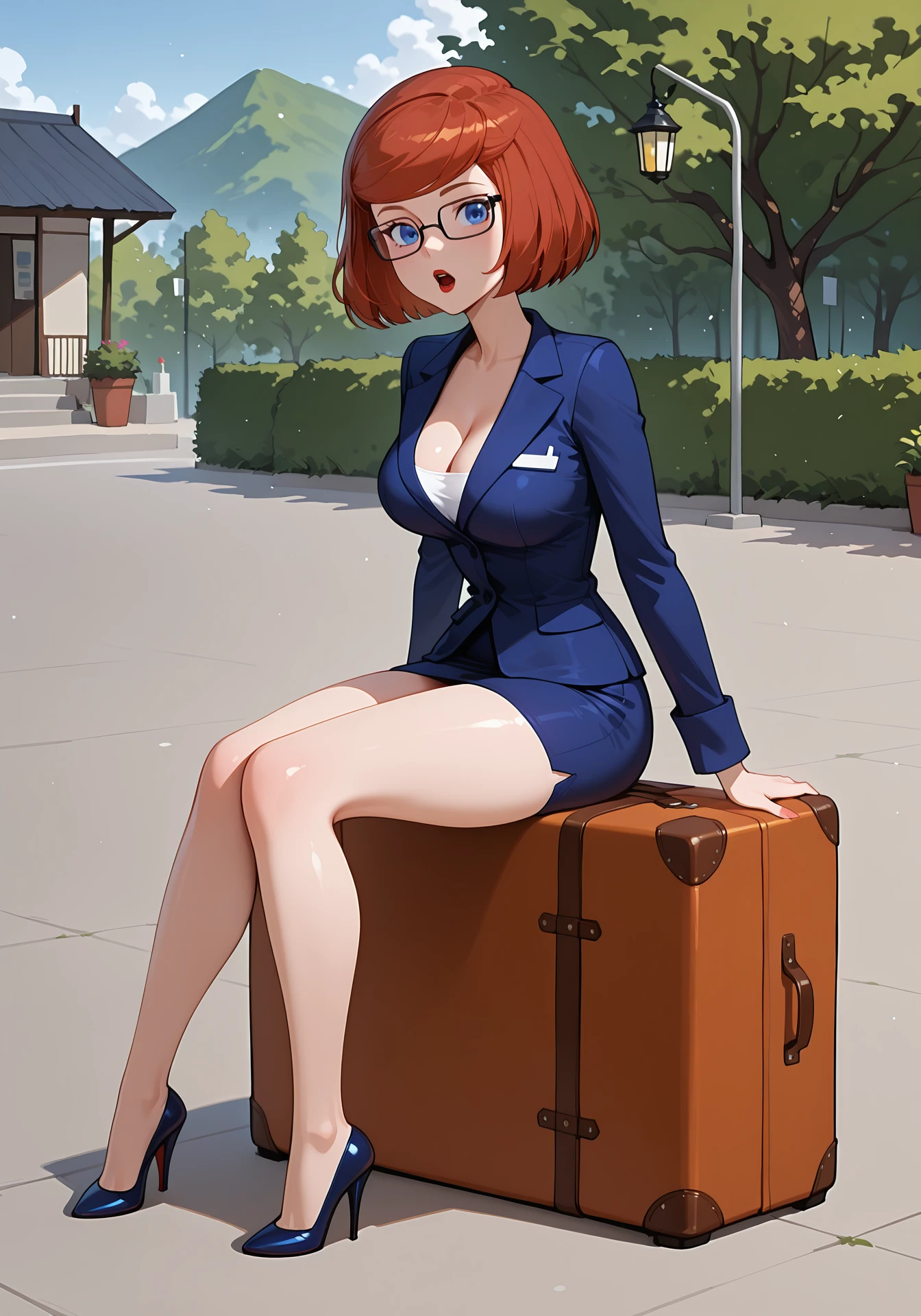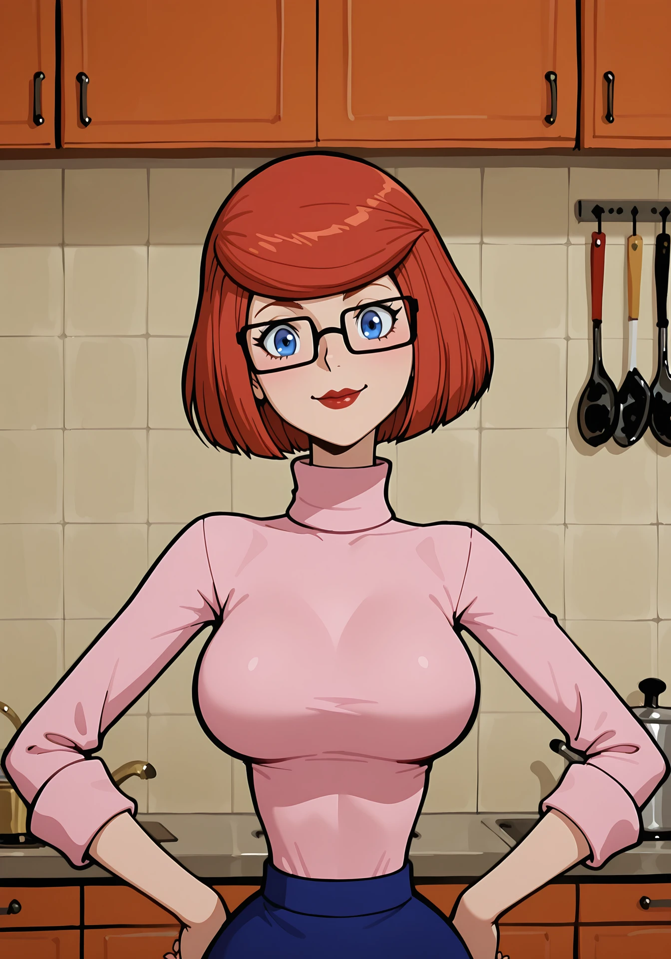 rimma1980, short hair, red hair, glasses, blue eyes, red lips, lipstick