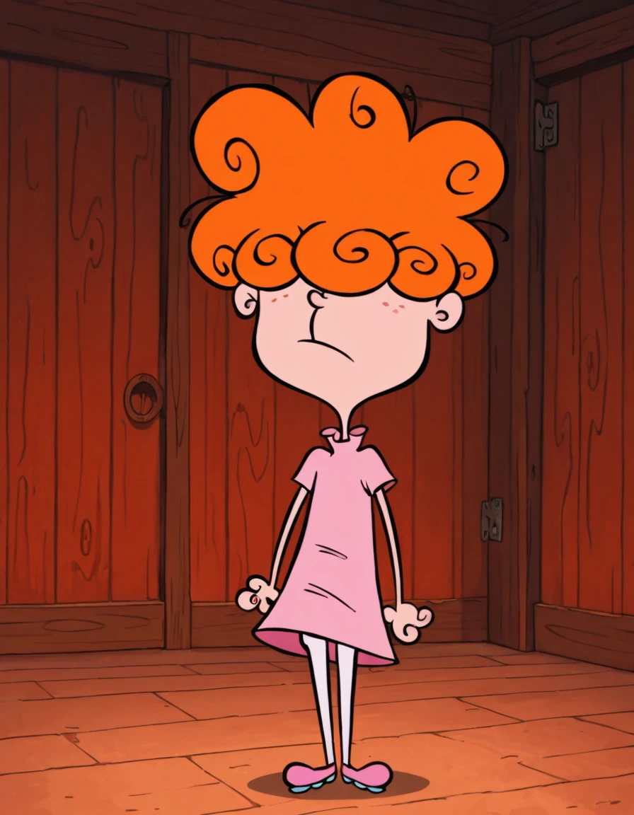 This LoRA perfectly replicates Lee Kanker, the eldest, meanest, and most aggressively romantic of the three Kanker Sisters from Cartoon Network’s Ed, Edd n Eddy (voiced by Janyse Jaud). A tall, wild, lovesick bully with zero chill, Lee lives to terrorize and kiss the Eds (especially Eddy) while ruling her sisters with an iron fist and a lipstick-stained grin. The model locks her classic Seasons 1999–2009 design: fiery red curly hair, braces, and perpetual “come here, boyfriend!” energy. Ideal for trailer-park ambushes, lipstick attacks, or “Lee finally corners Eddy” chaos.