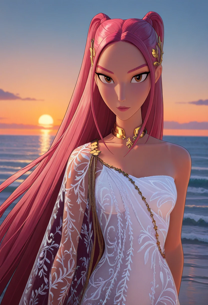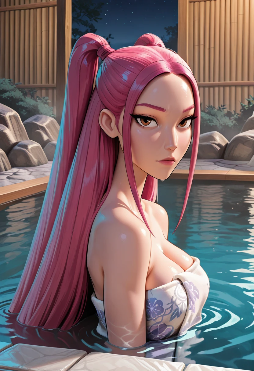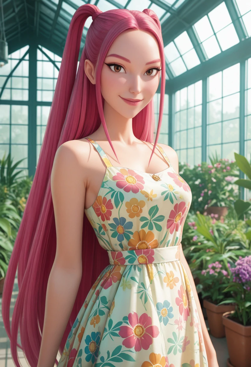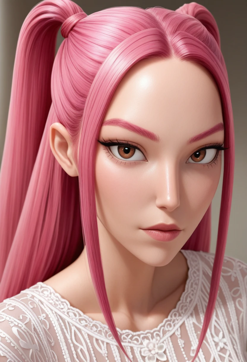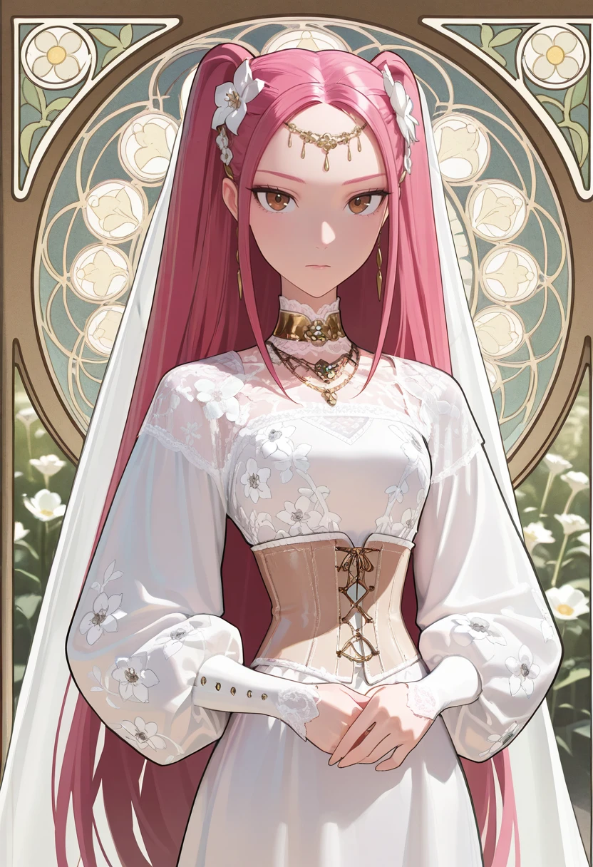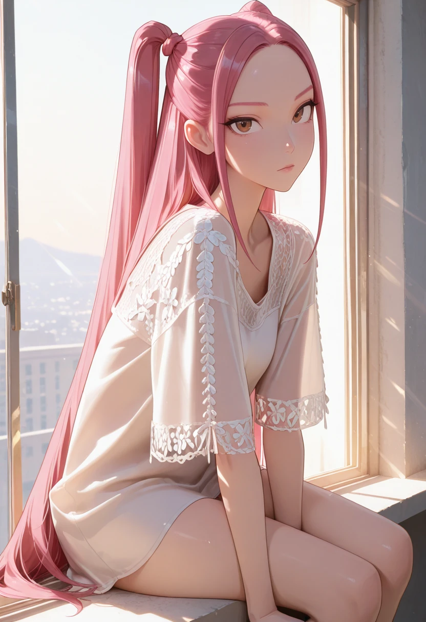 KDHMira, 1girl, pink hair, long hair, twintails, brown eyes, sidelocks