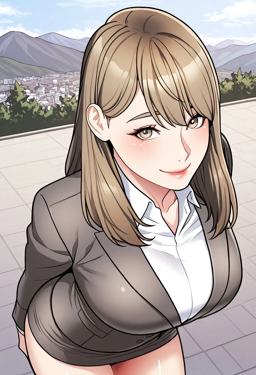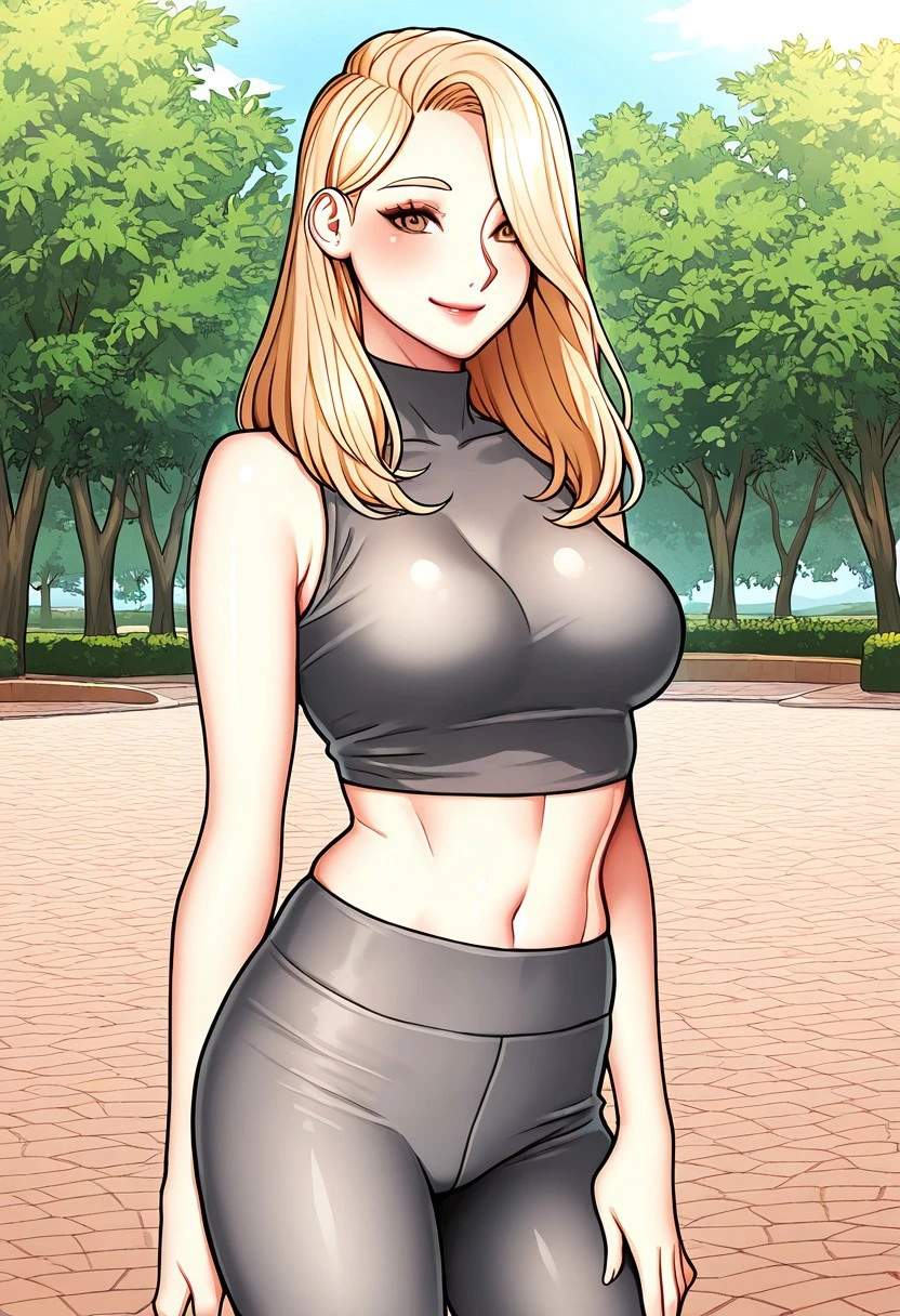 Geum Ah-Yeong: geum_ah-yeong, beautiful brown eyes, beautiful blonde hair, beautiful long hair, hair over one eyes, huge and shaggy breasts,
