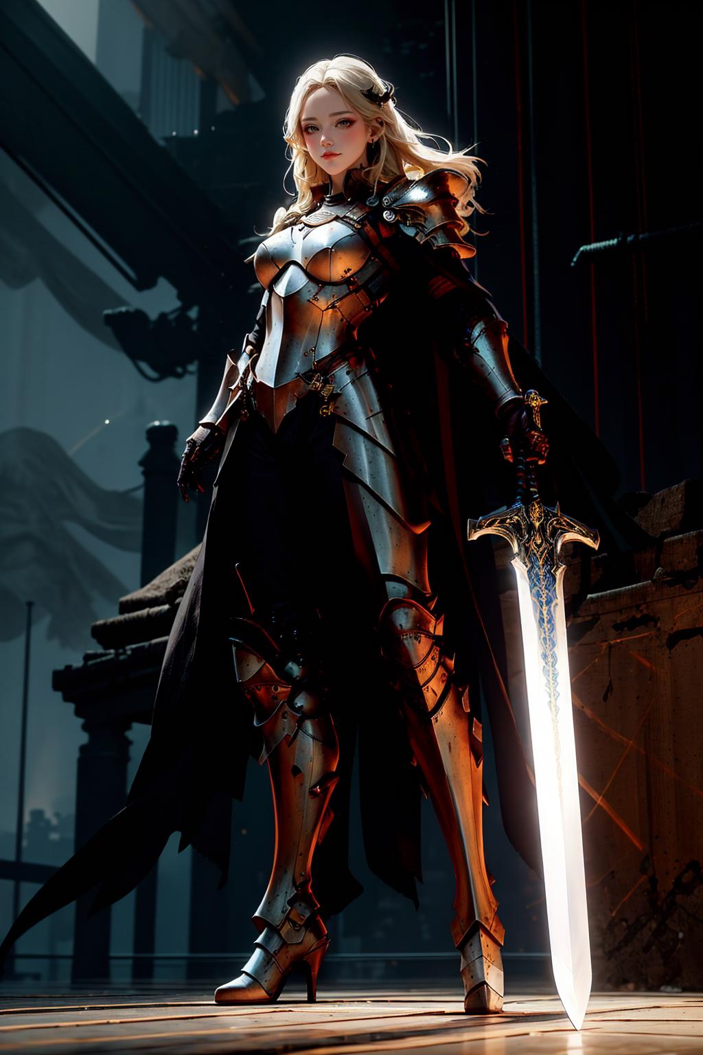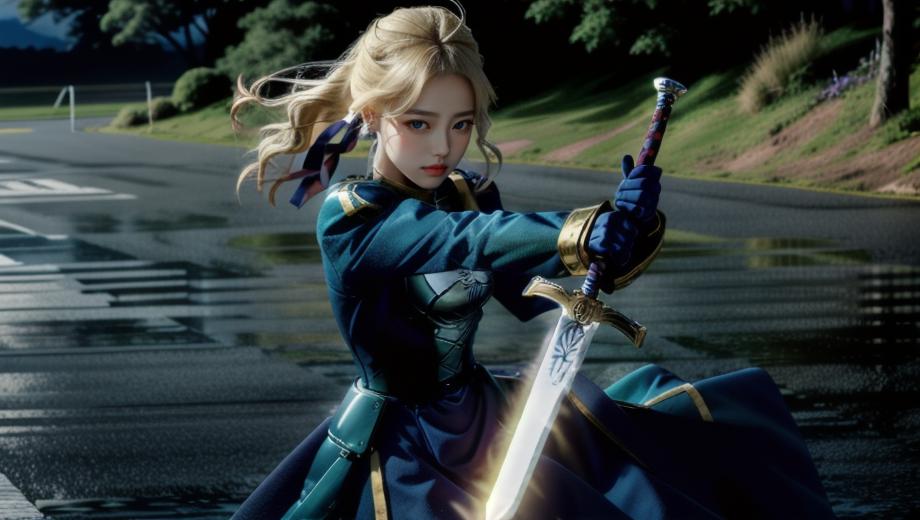 我的朋友在"Pinterest"上看到了一张AI图片(Midjourney),图片中人物拿着发光的武器。 他想要使用"Stable Diffusion"与不同的"模型"结合创造出不同的风格。