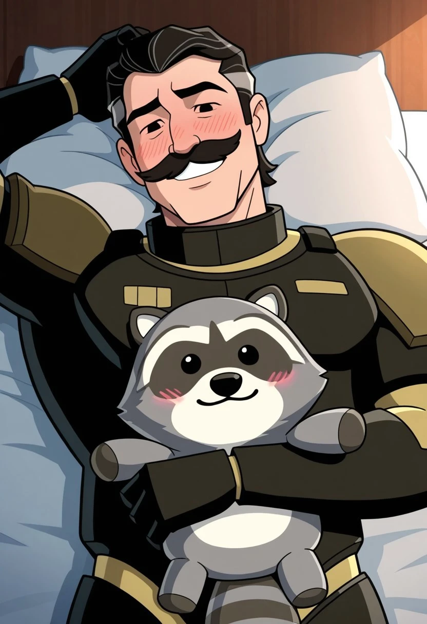 1man,solo,male focus,Sly Baron,black hair,graying hair,mature,muscular,mustache,facial hair,armor bodysuit,