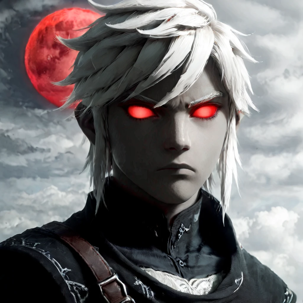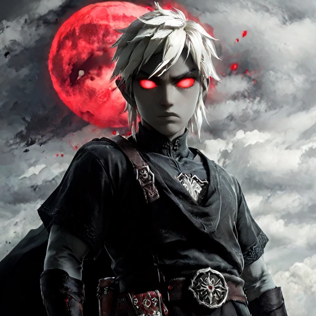 darklink , red eyes , white hair , grey skin