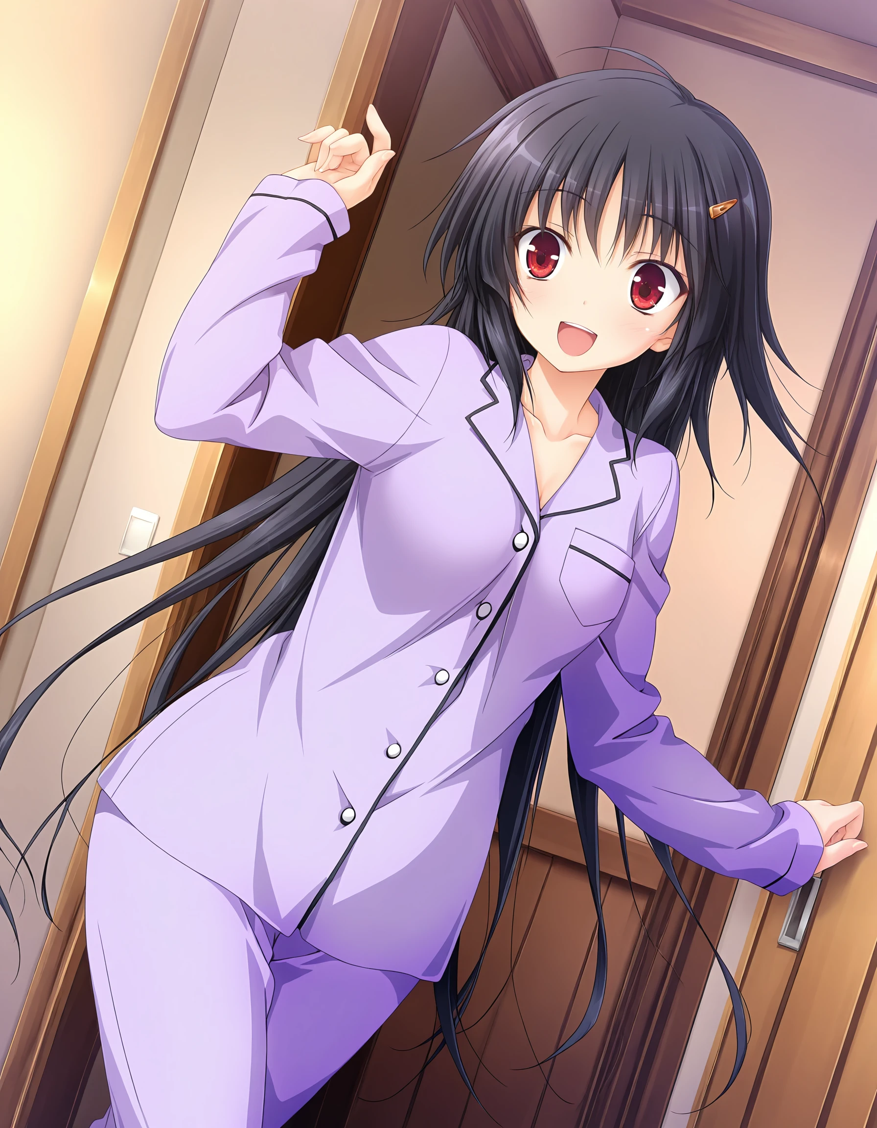 outfit06, pajamas, purple pajamas, shirt, pajamas shirt, long sleeves shirt, pants, pajamas pants, buttons, close clothes, close shirt,