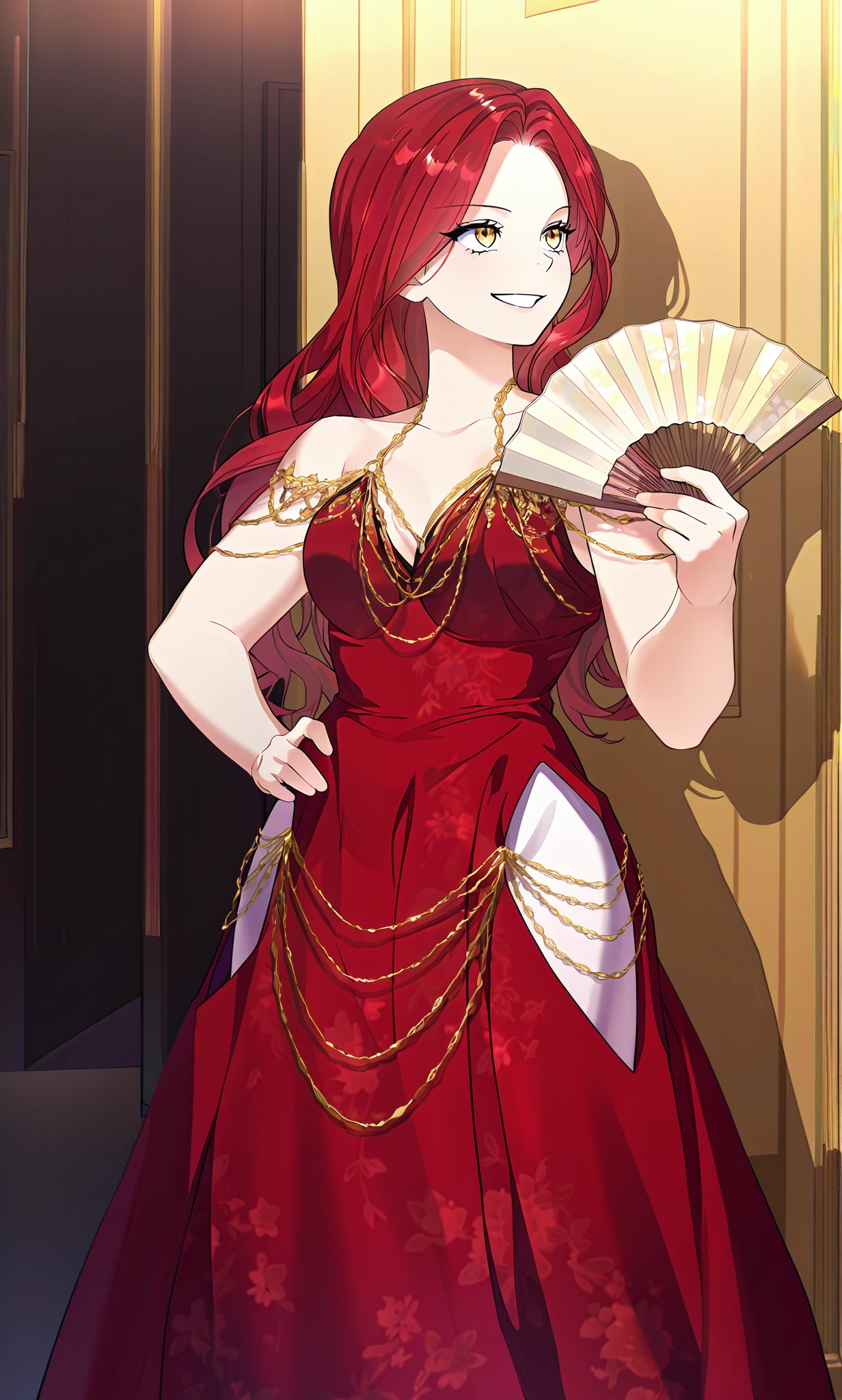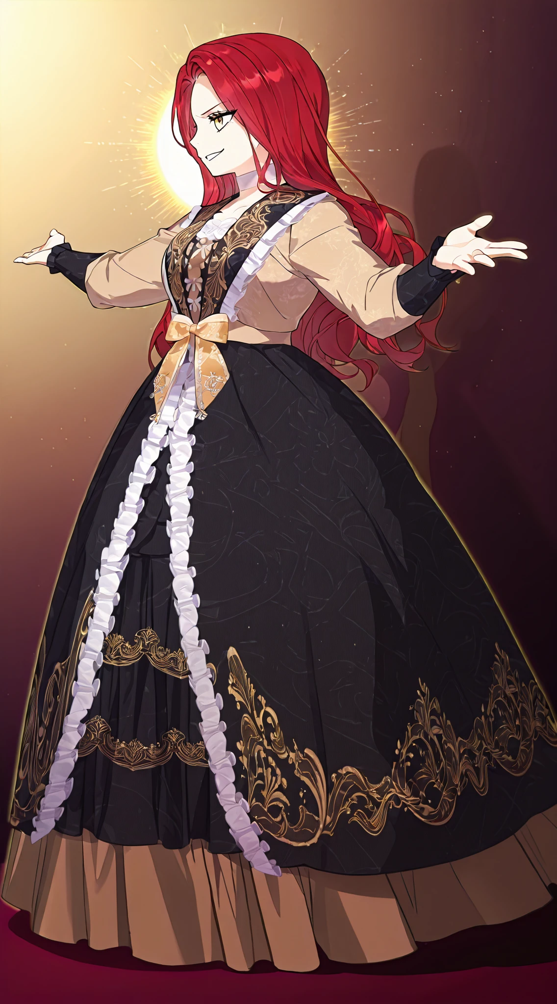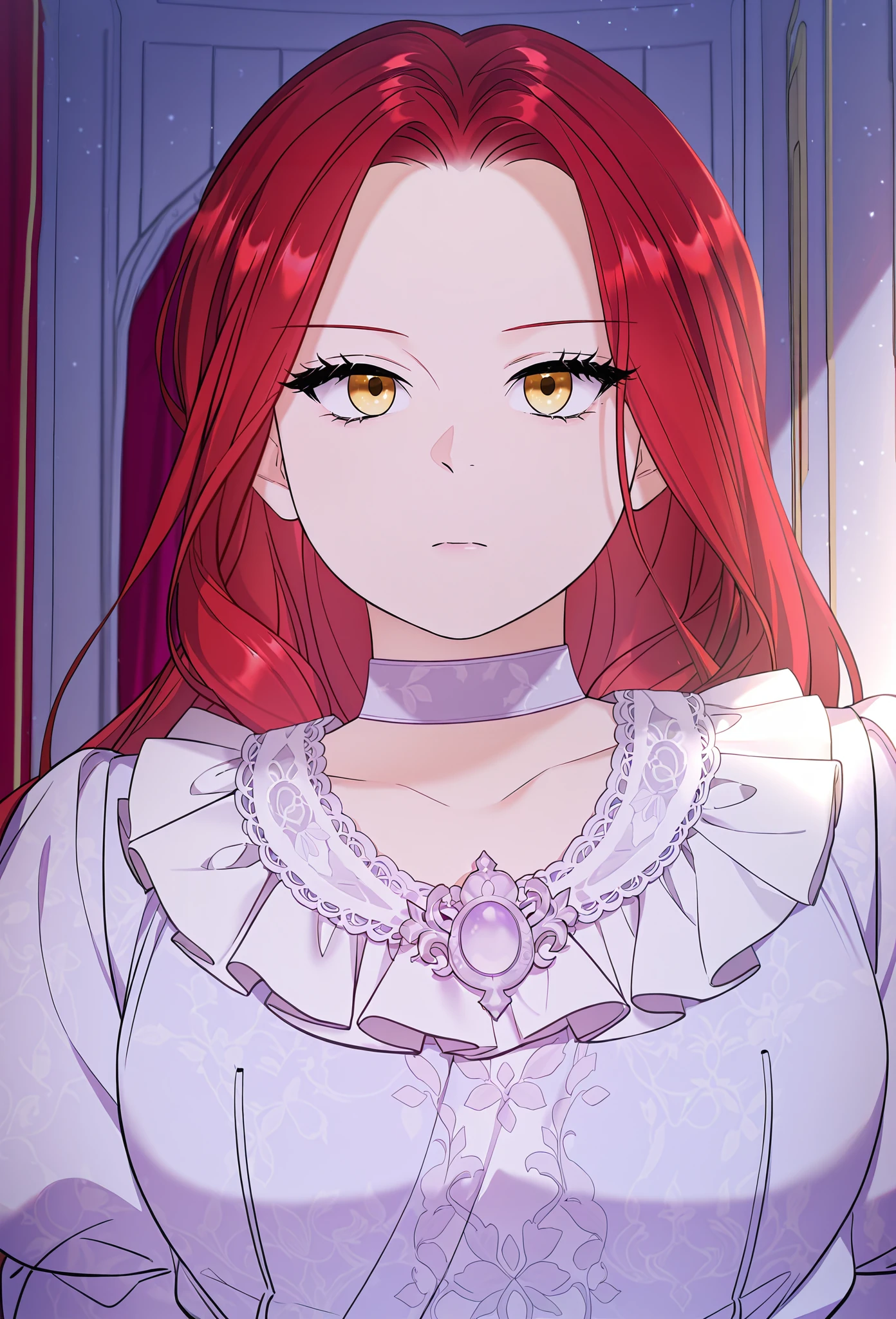 Main prompt: louvetria, red hair, golden eyes, long hair