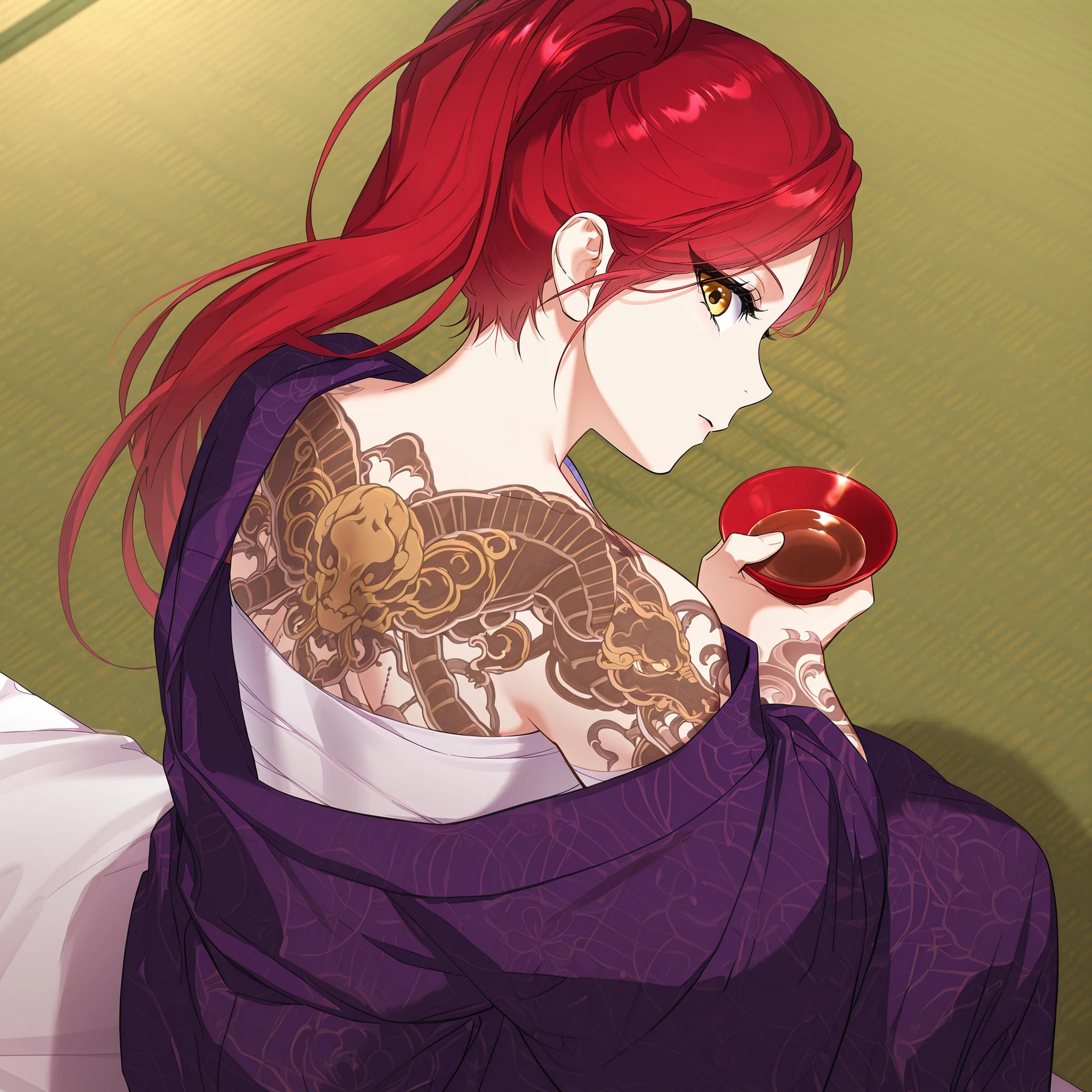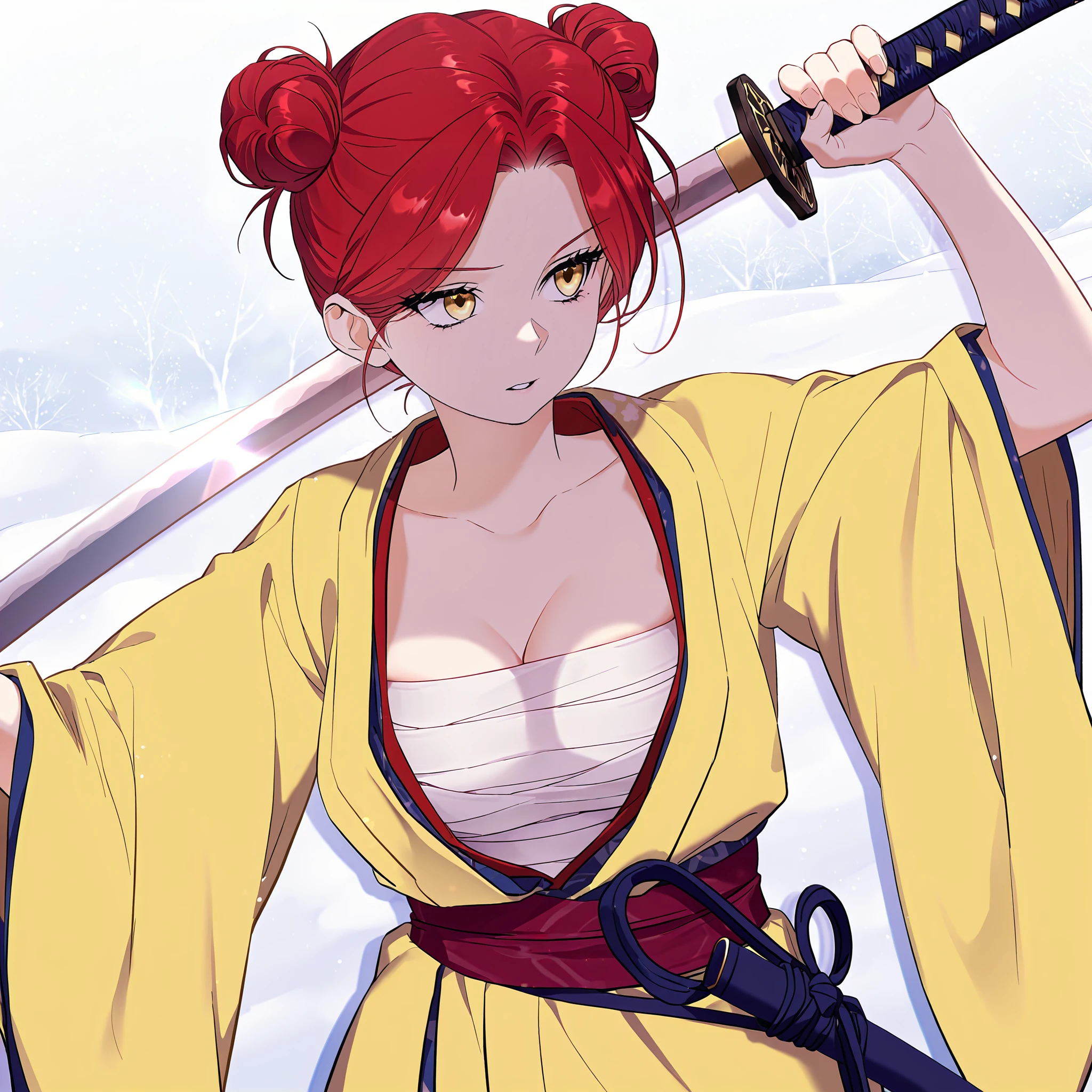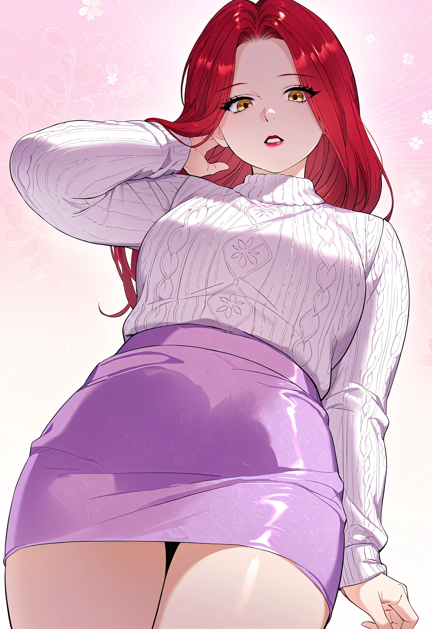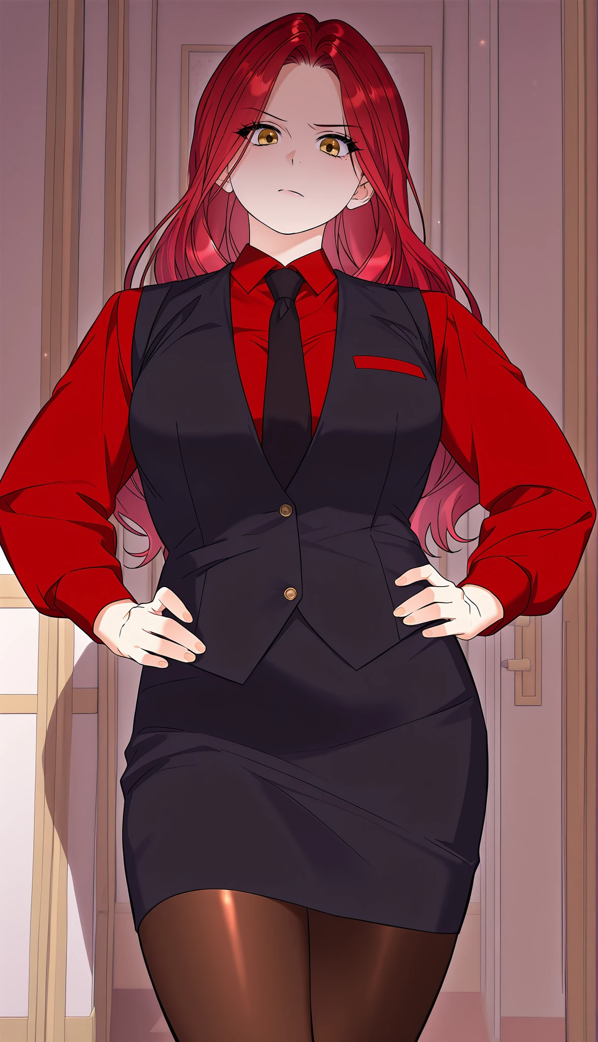 Main prompt: louvetria, red hair, golden eyes, long hair