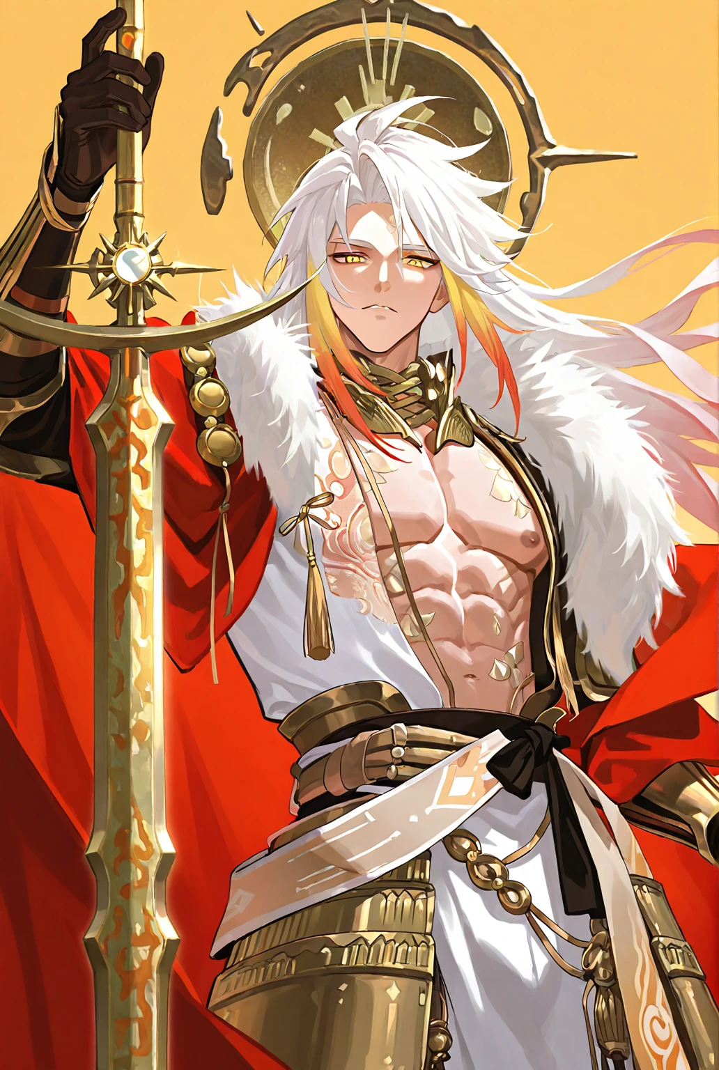 ping jm, white clothes, white hair, multicolored hair, yellow eyesEvolved / 觉醒: