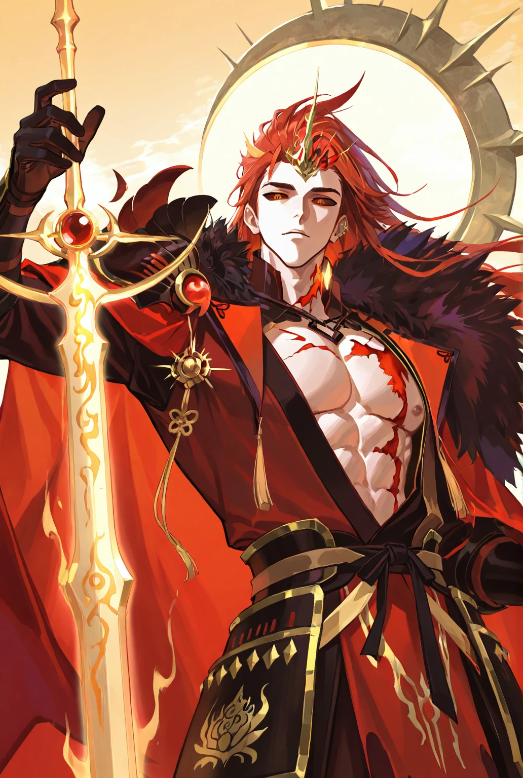 ping jm evolved, red clothes, red eyes, colored sclera, red hairOptional: