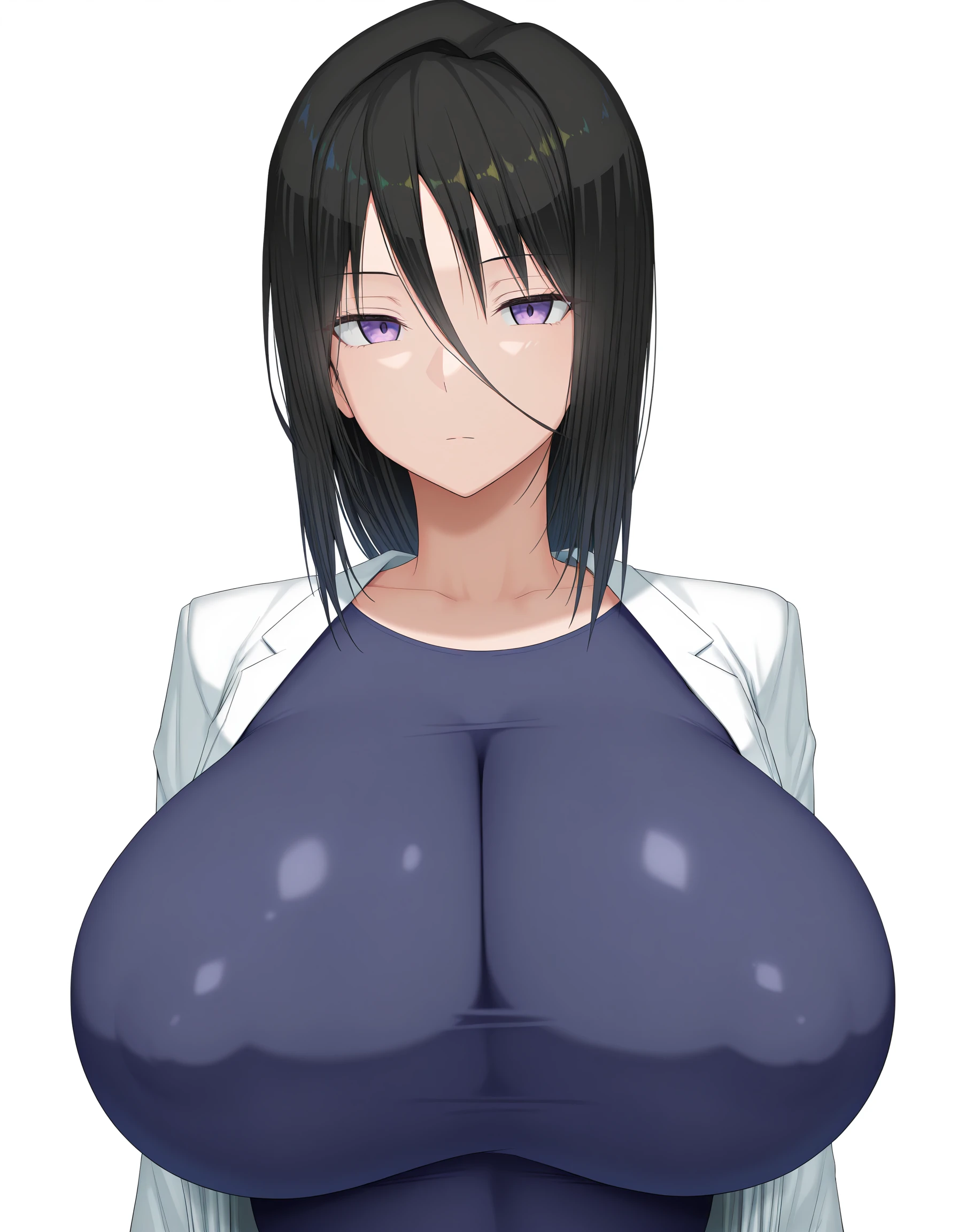 minazukishino,1girl,black hair,long hair,(optional:low-tied long hair),purple eyes,huge breasts