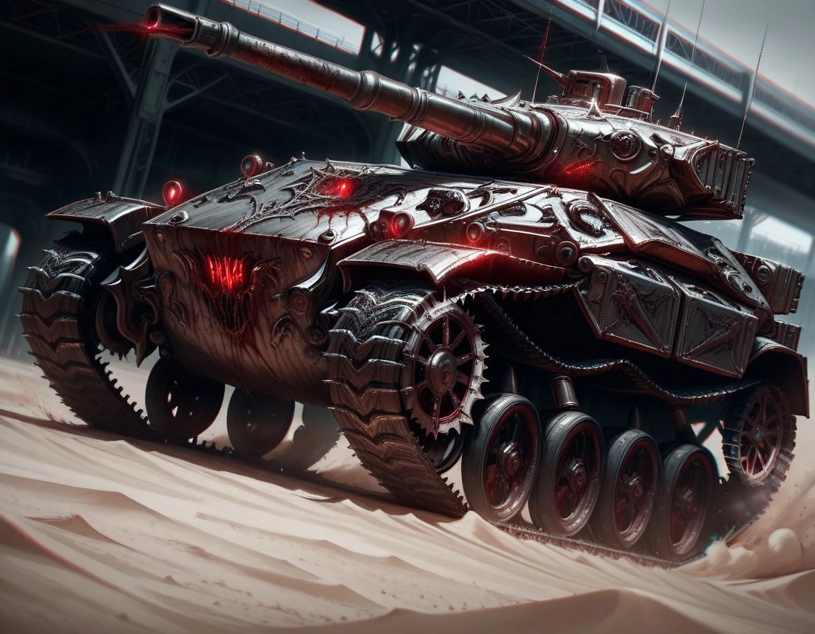 This LoRA morphs things around it to fit a world where vampires has ruled the earth, adopting silvers as there main material after they used to completely exterminate the werewolf race, laced with mineral blood (yes blood ooze out springs in that world), now they're prospering in future shaped by Vampiric tech .