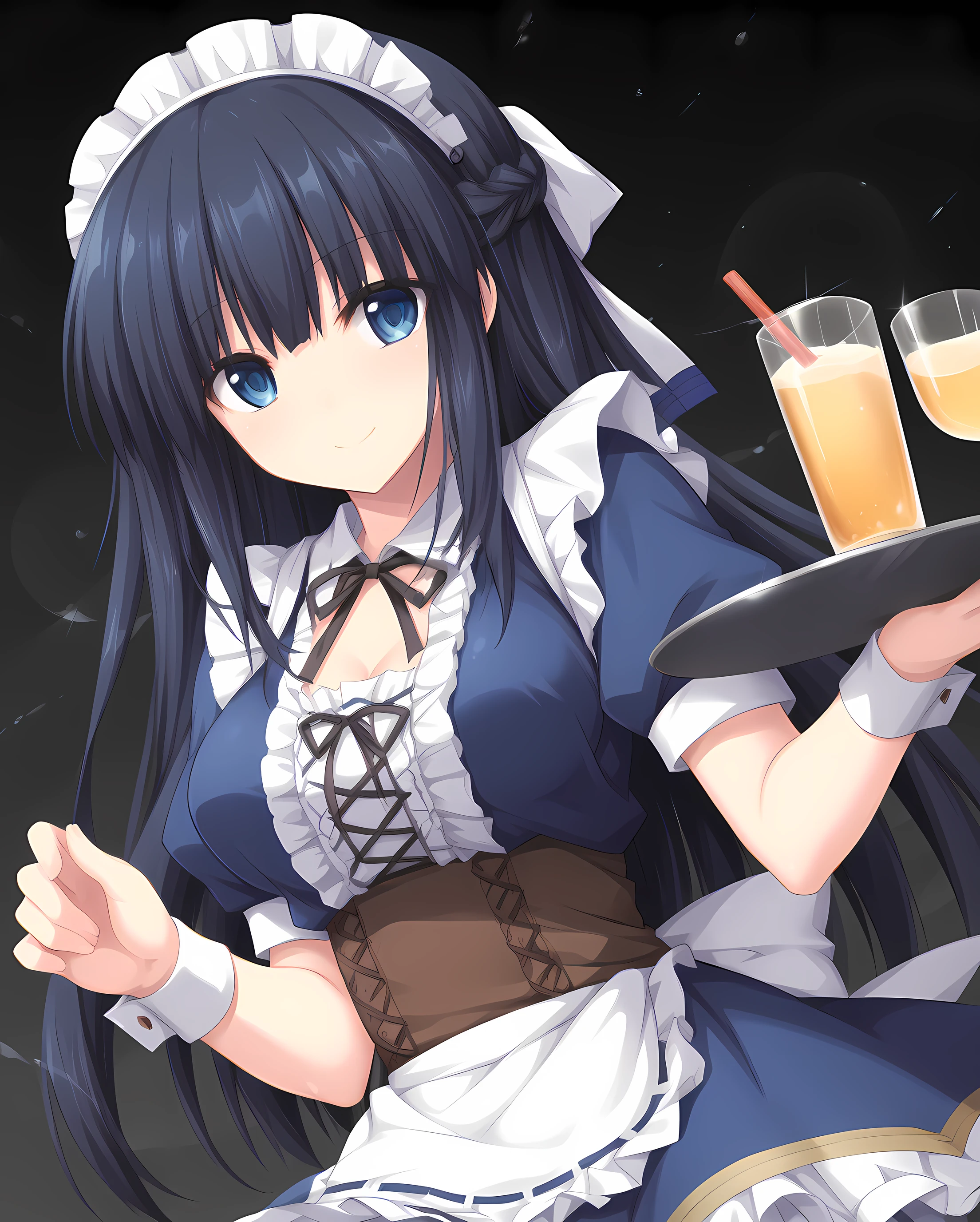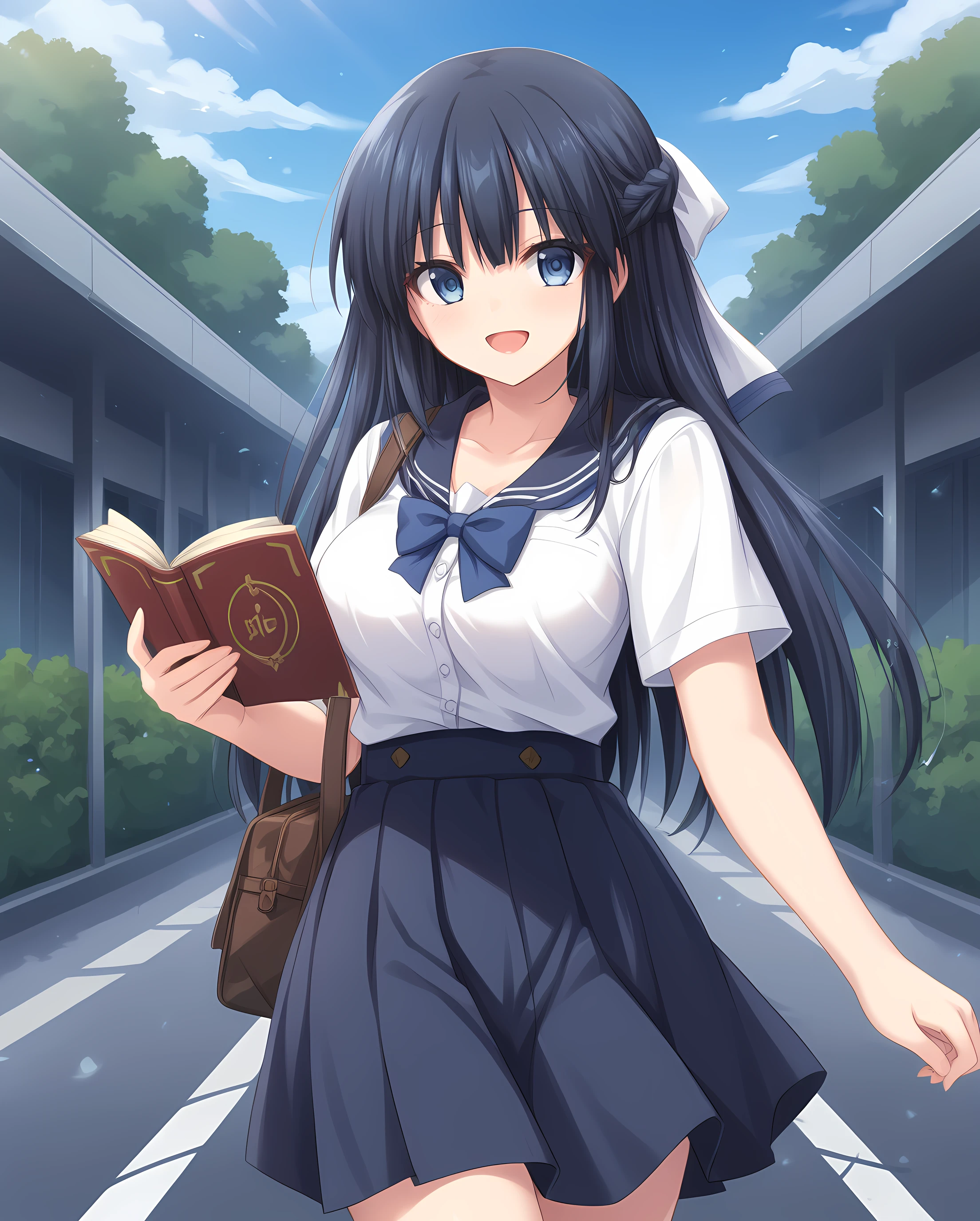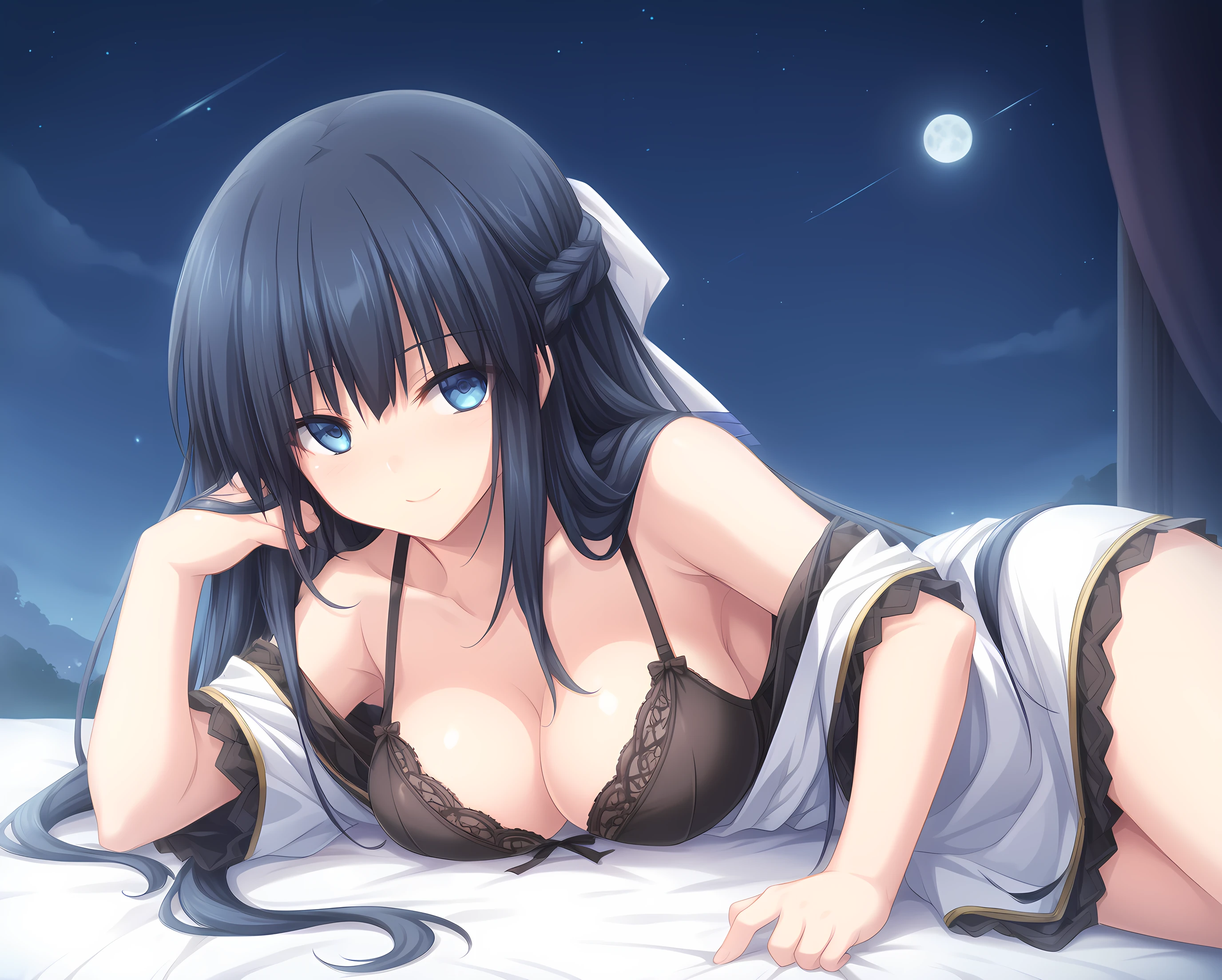 eushully,liselle,long hair,black hair,blue eyes,half updo,ribbon,braid,armor,hair ribbon,pauldrons,boots,blue hair,large breasts,gloves,zettai ryouiki,cross-laced clothes,belt,white thighhighs