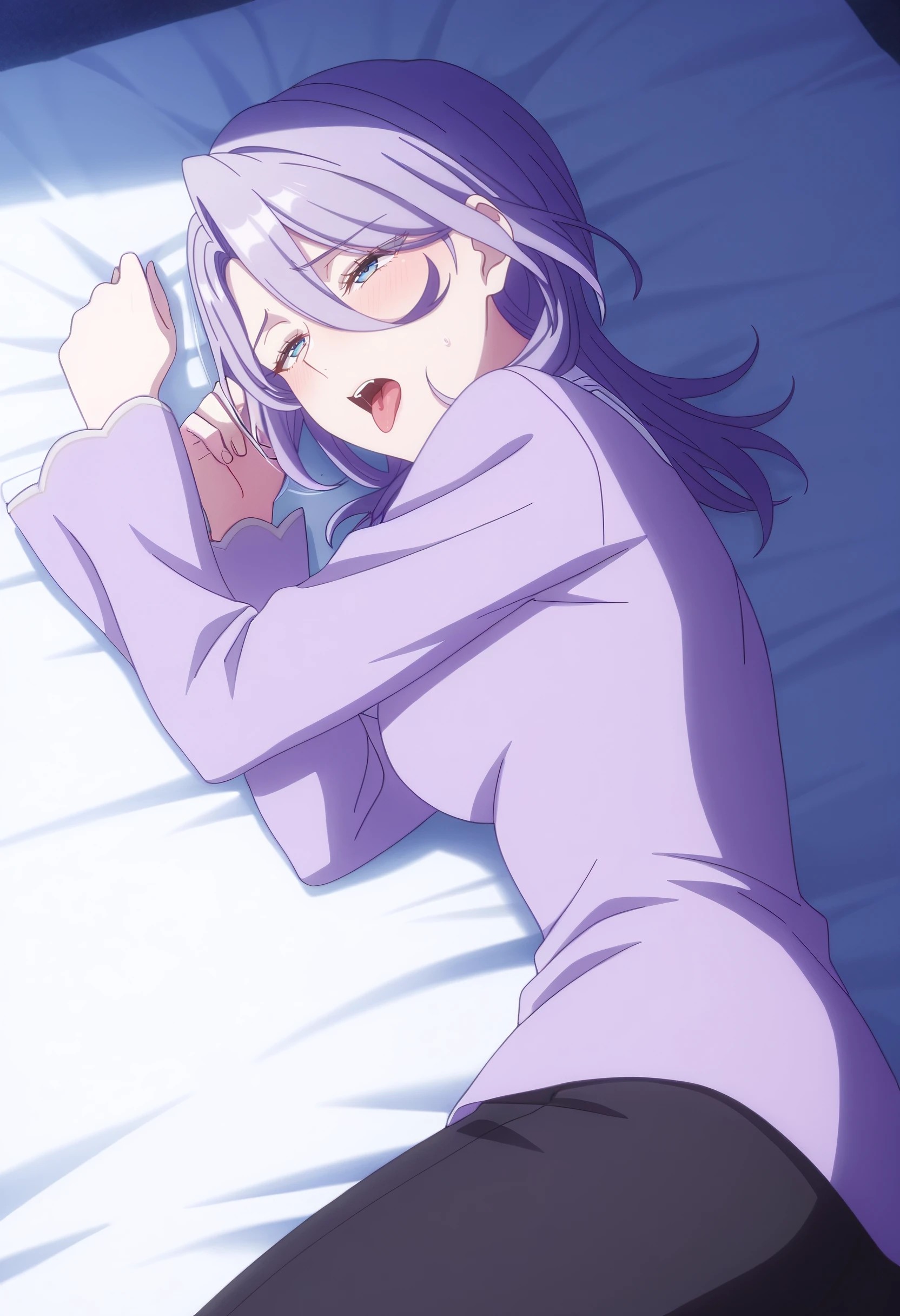 KTHildegard, long hair, purple hair, hair between eyes, blue eyes, long bangs,