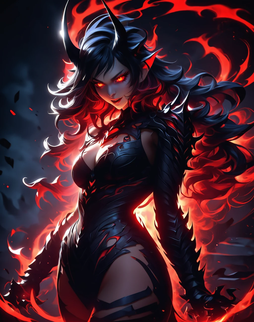 The intend of this model is to give the subject a dark aura effect. Aura comes by default as black in a purple hue, however, color can be controlled by using the token red or purple in the prompt. (Red and purple were used in the training process, you might try different colors).