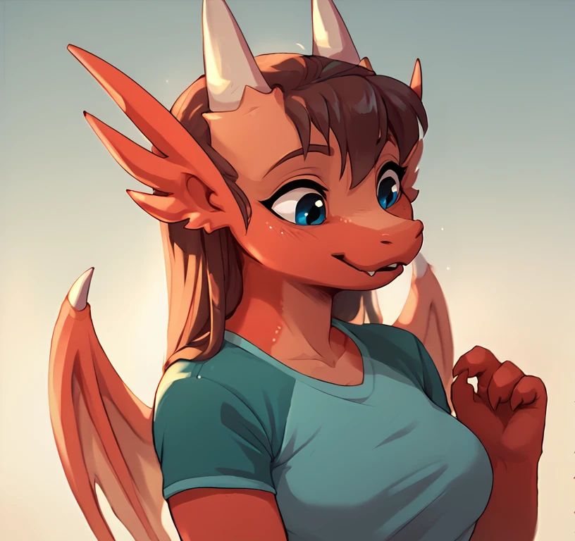 zPDXL3, javanshir, overweight, pupils, looking at viewer, female, obese, blue eyes, red body, mythological creature, dragon, horns, smile, breasts, loincloth, loincloth aside, wings, wide hips, thick thighs, hyper, fang, standing, tail, <lora:Pom:1> Negative: