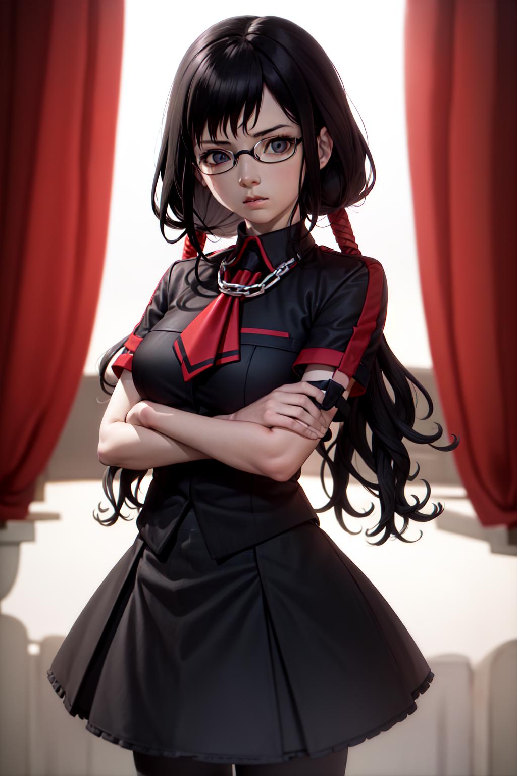 Default Outfit: glasses, school uniform, red skirt