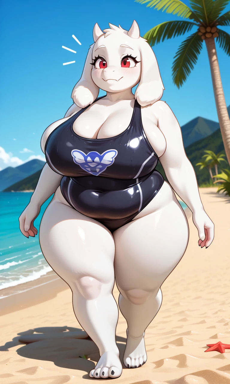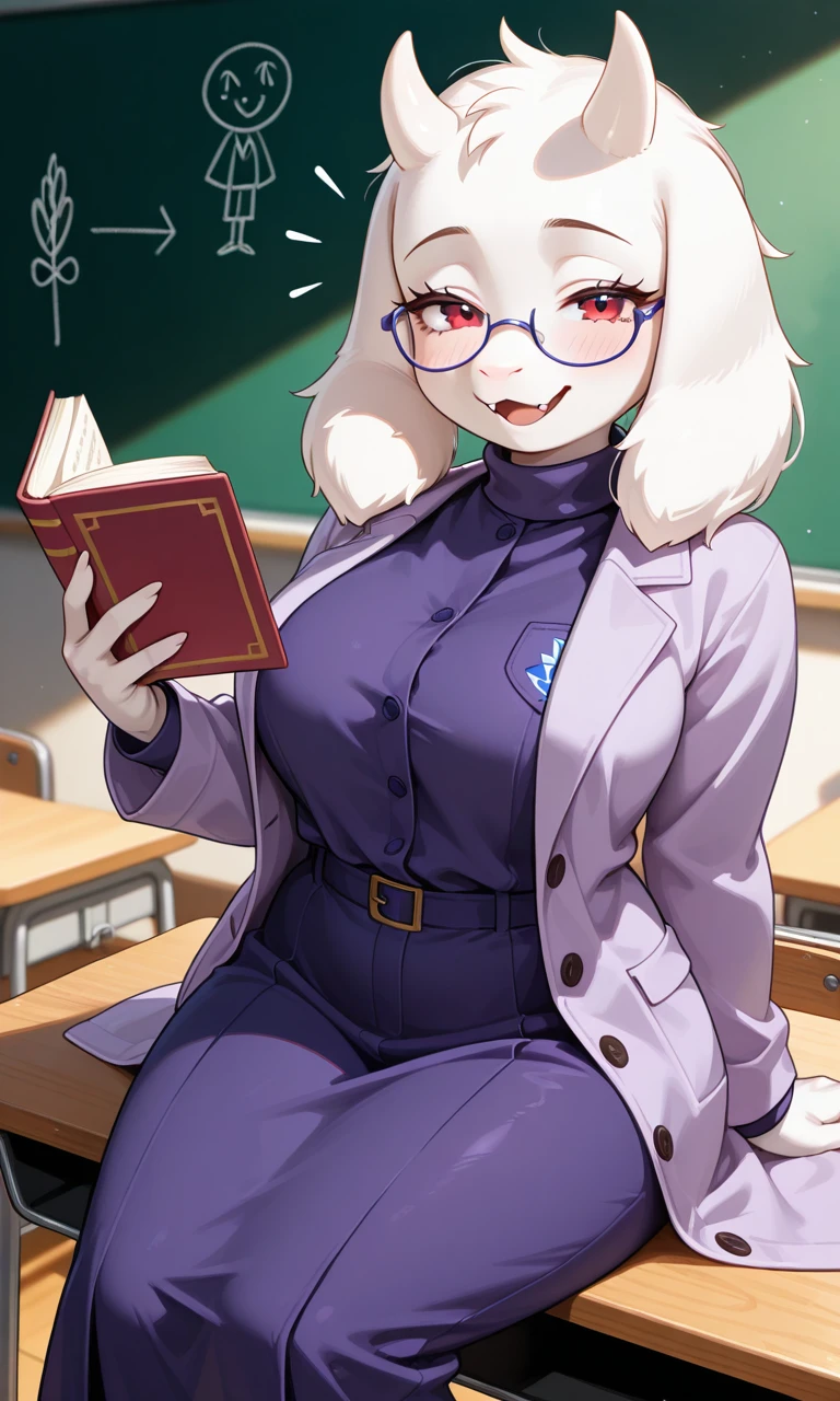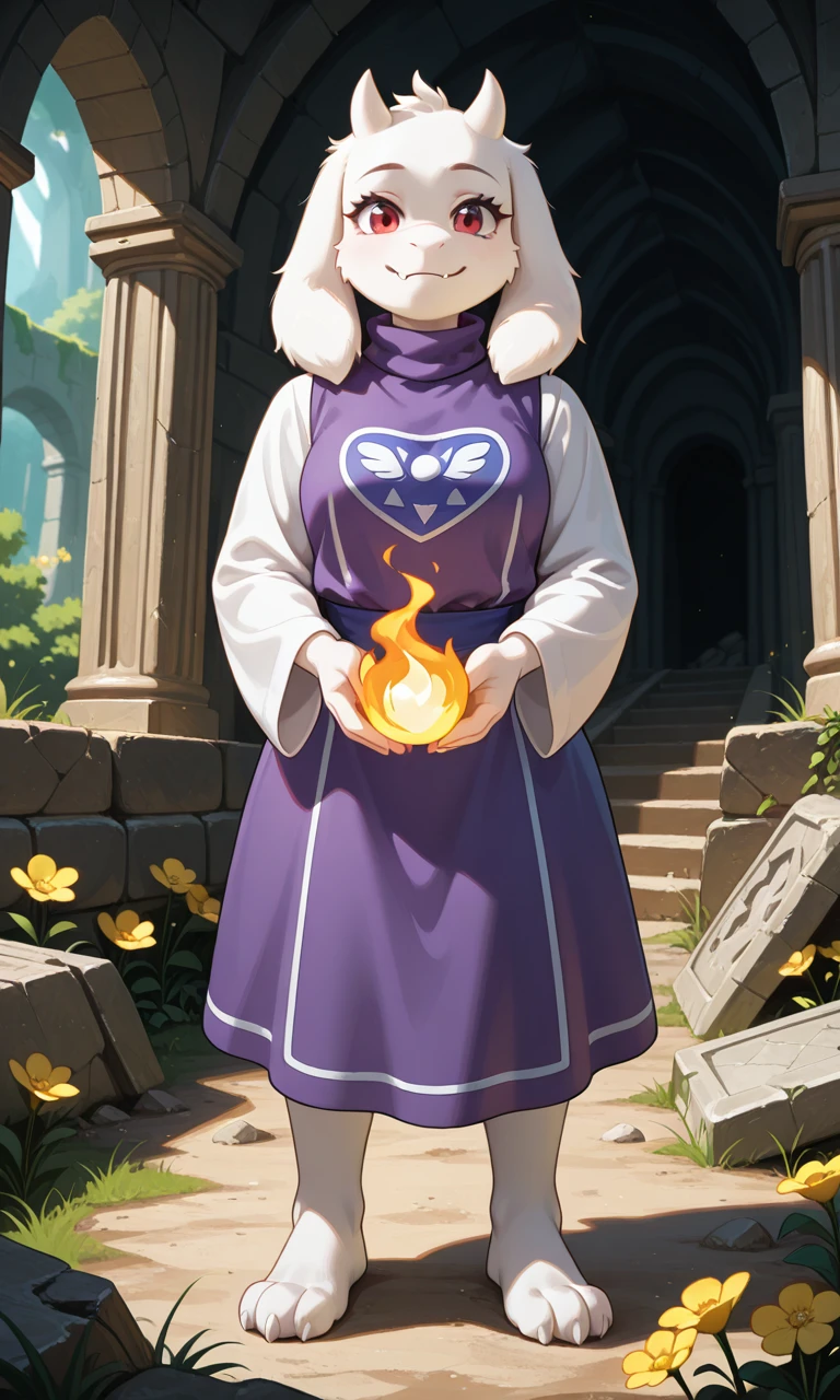 prompts: Toriel_(undertale), anthro goat, red eyes, eyelashes, floopy ears, tiny horns