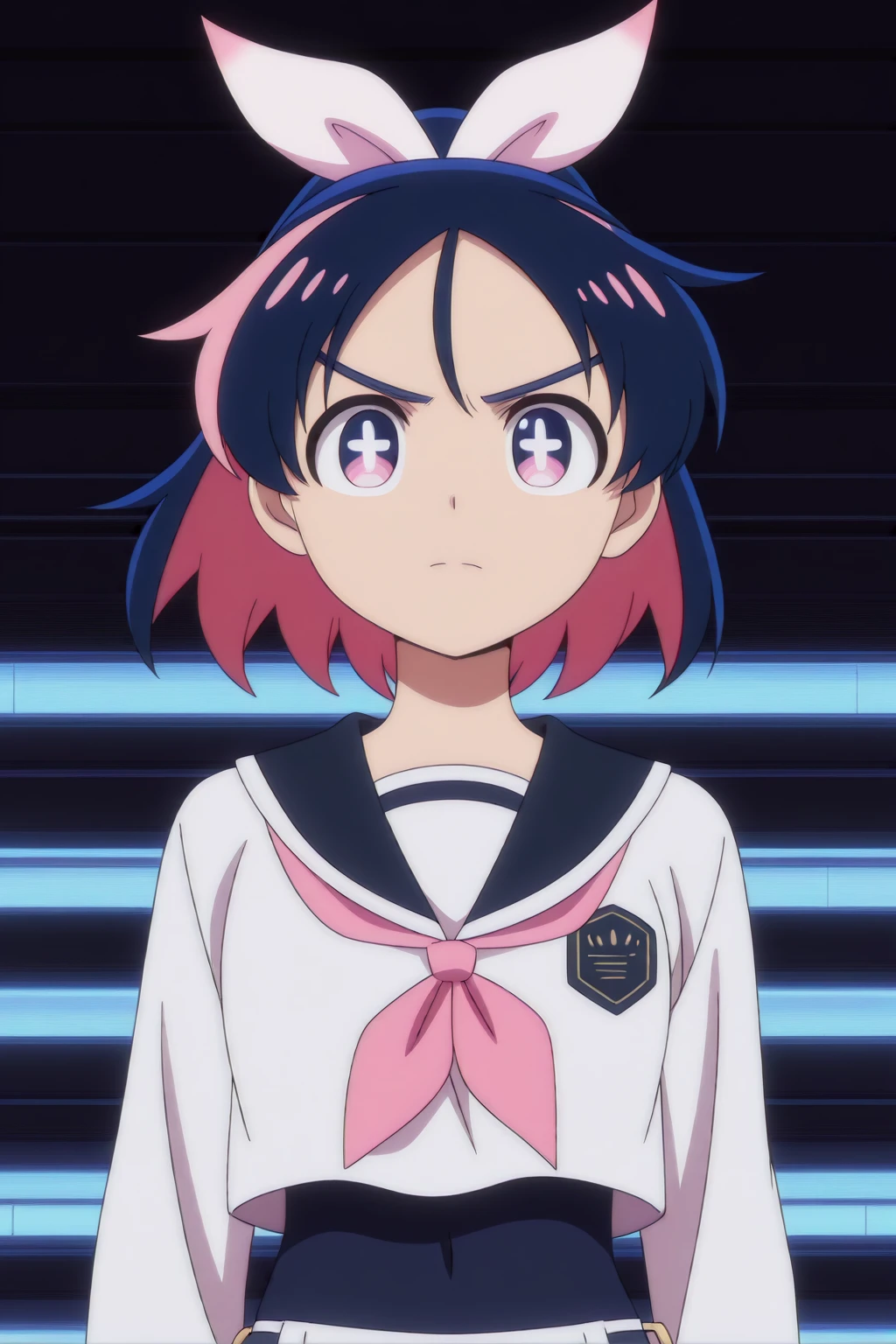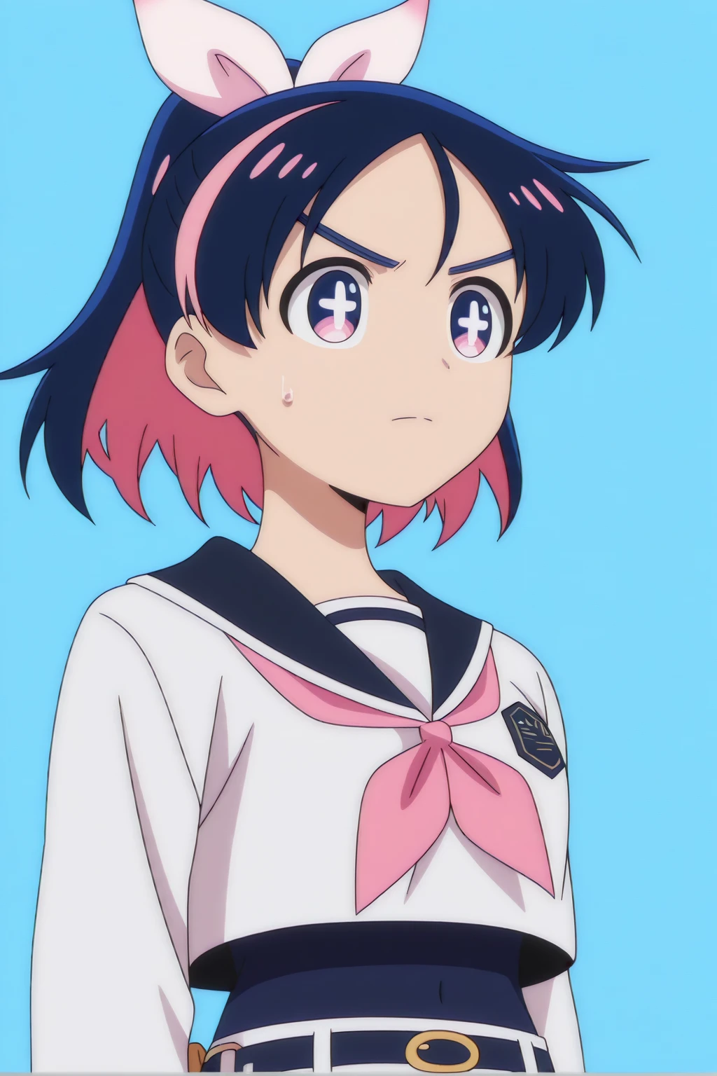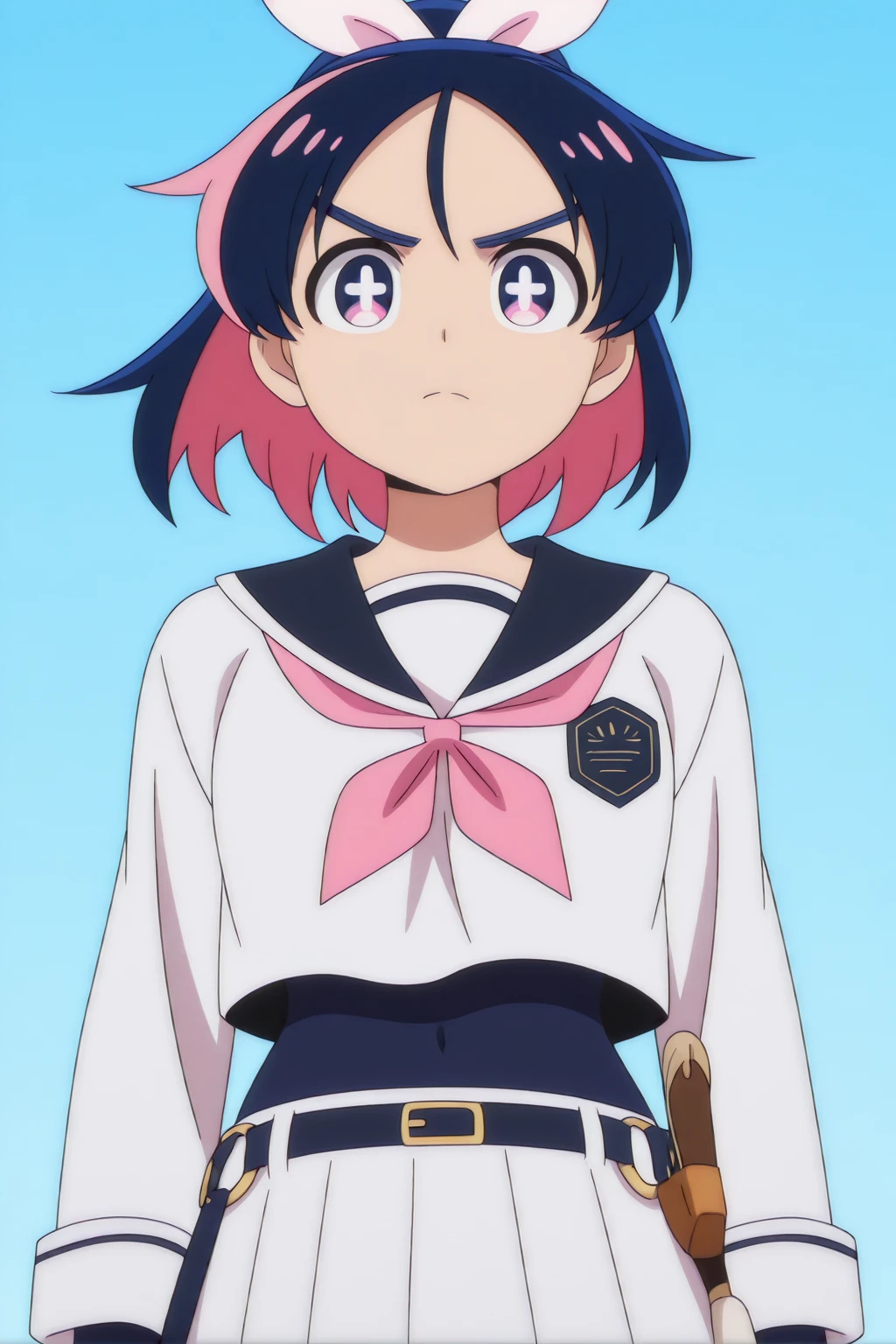 belt, blood on clothes, blood on face, hair bow, hair ribbon, hairband, long hair, long sleeves, pink neckerchief, ponytail, school uniform, serafuku, skirt, white shirt