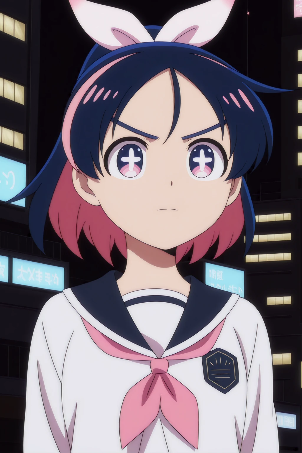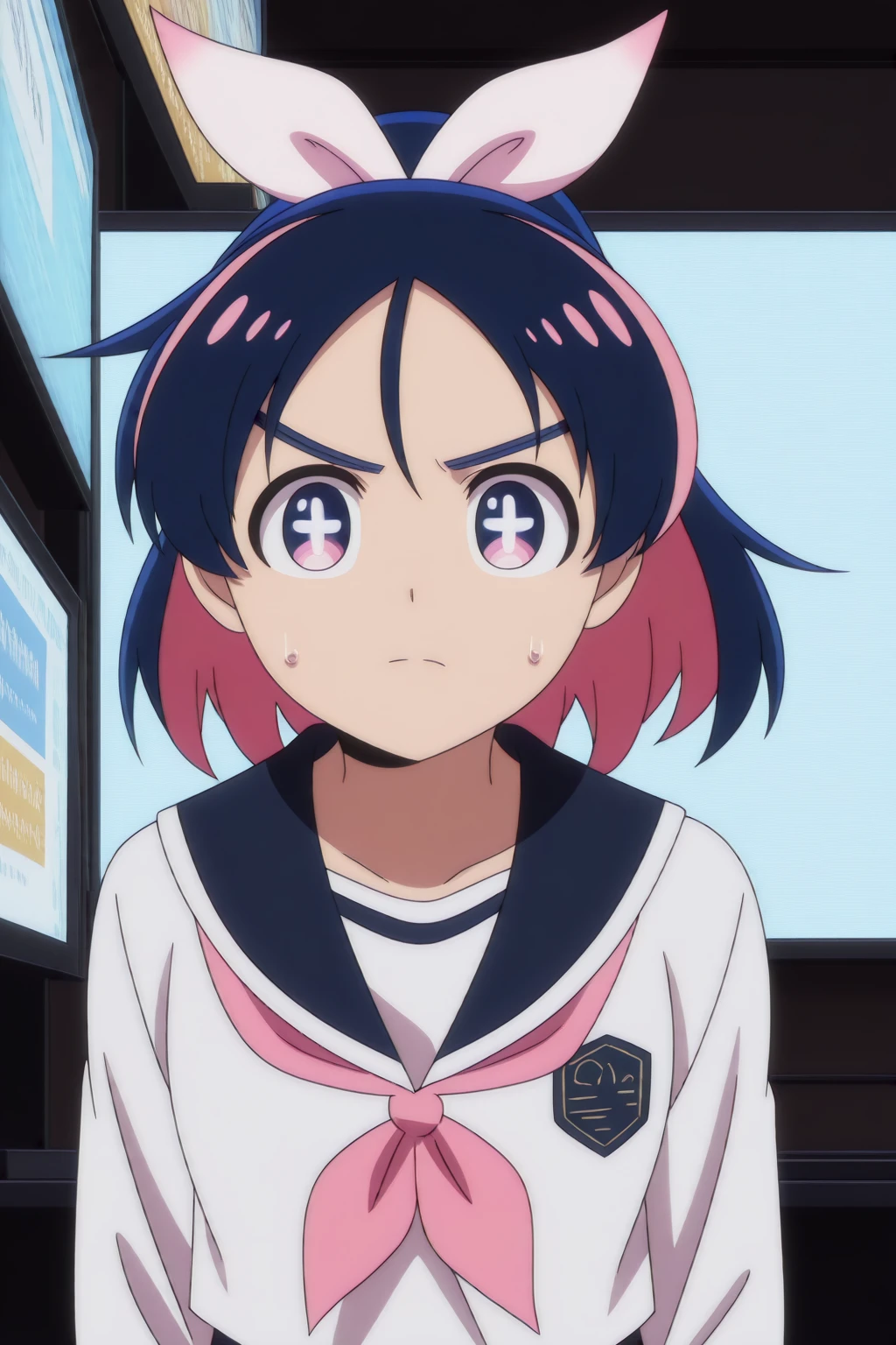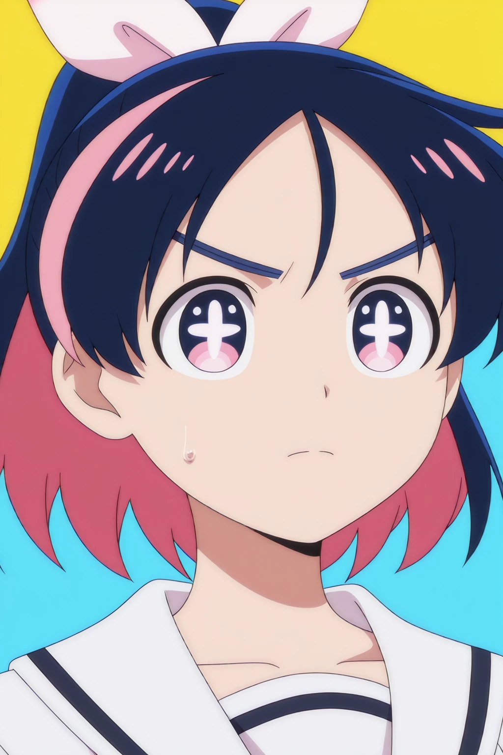 belt, blood on clothes, blood on face, hair bow, hair ribbon, hairband, long hair, long sleeves, pink neckerchief, ponytail, school uniform, serafuku, skirt, white shirt
