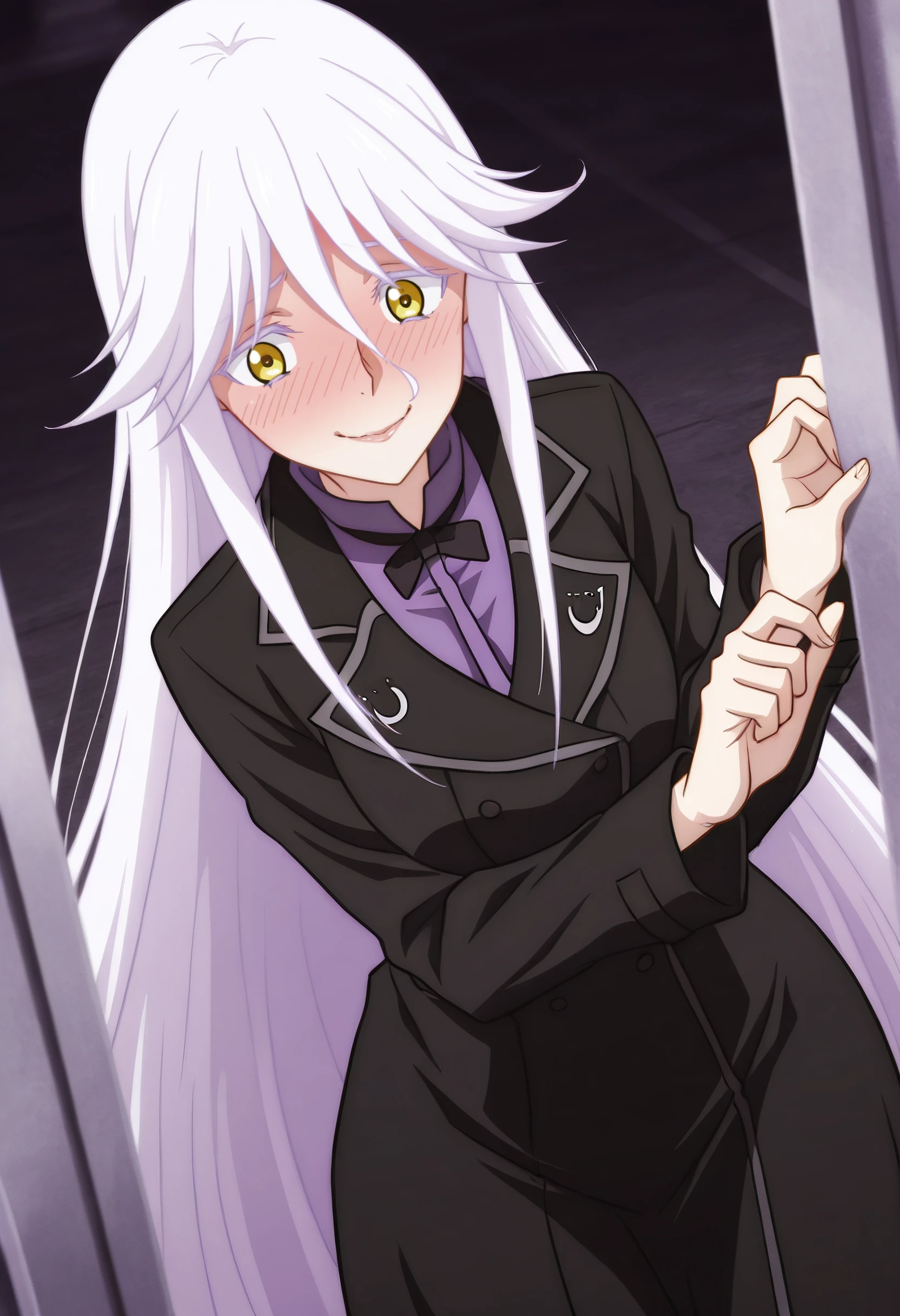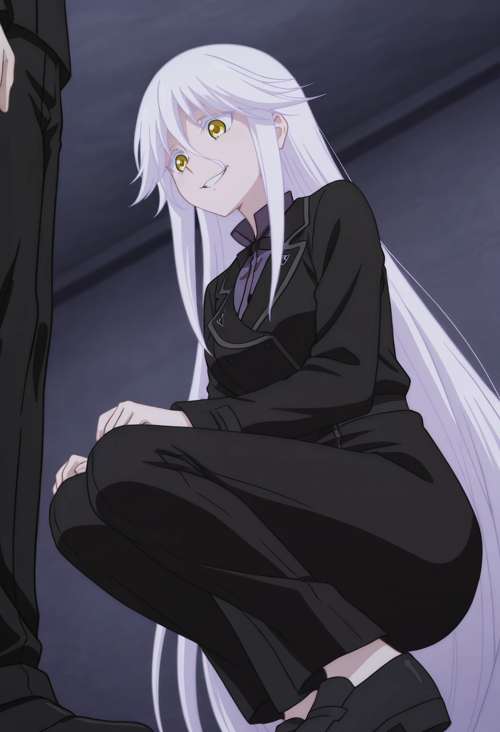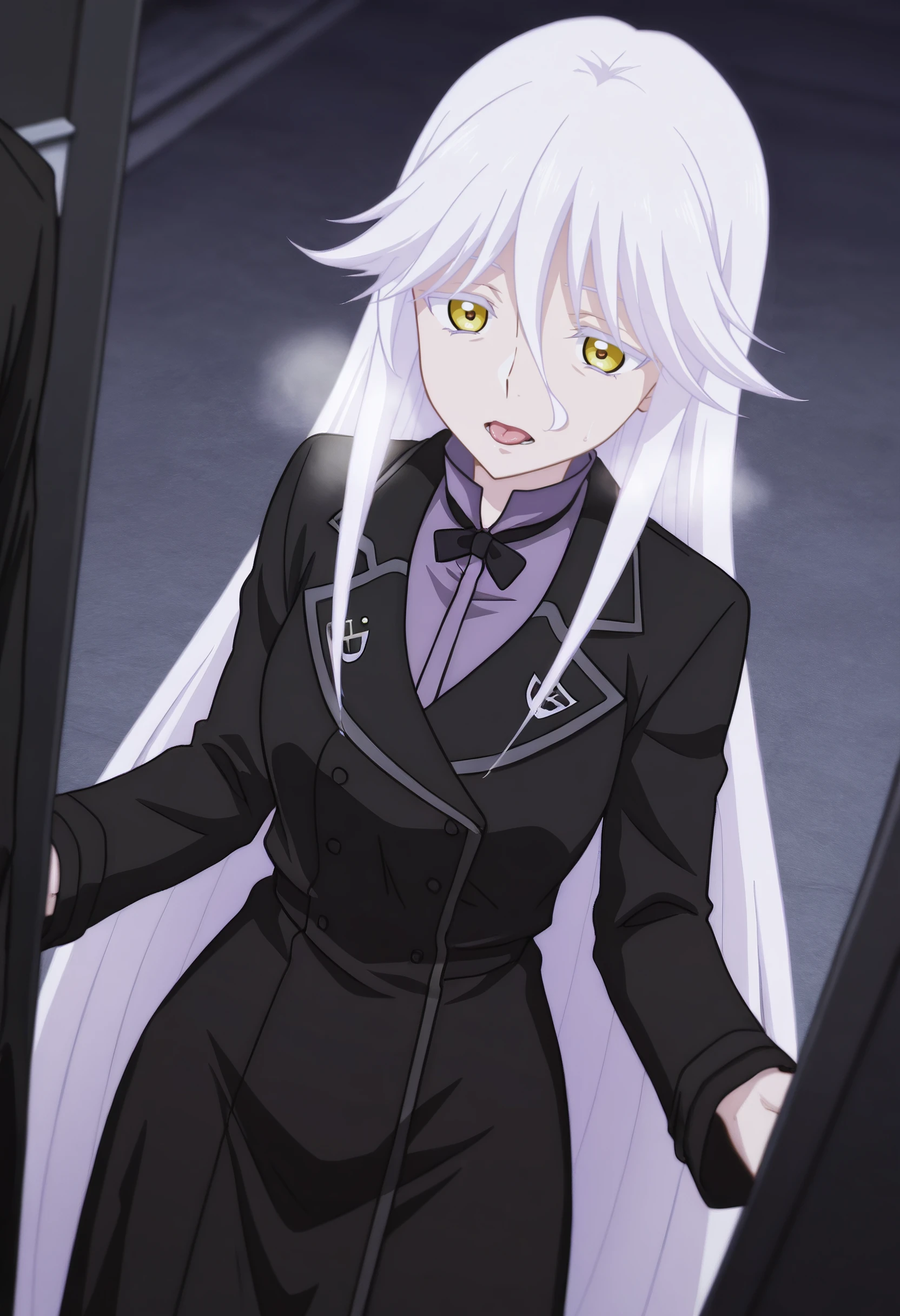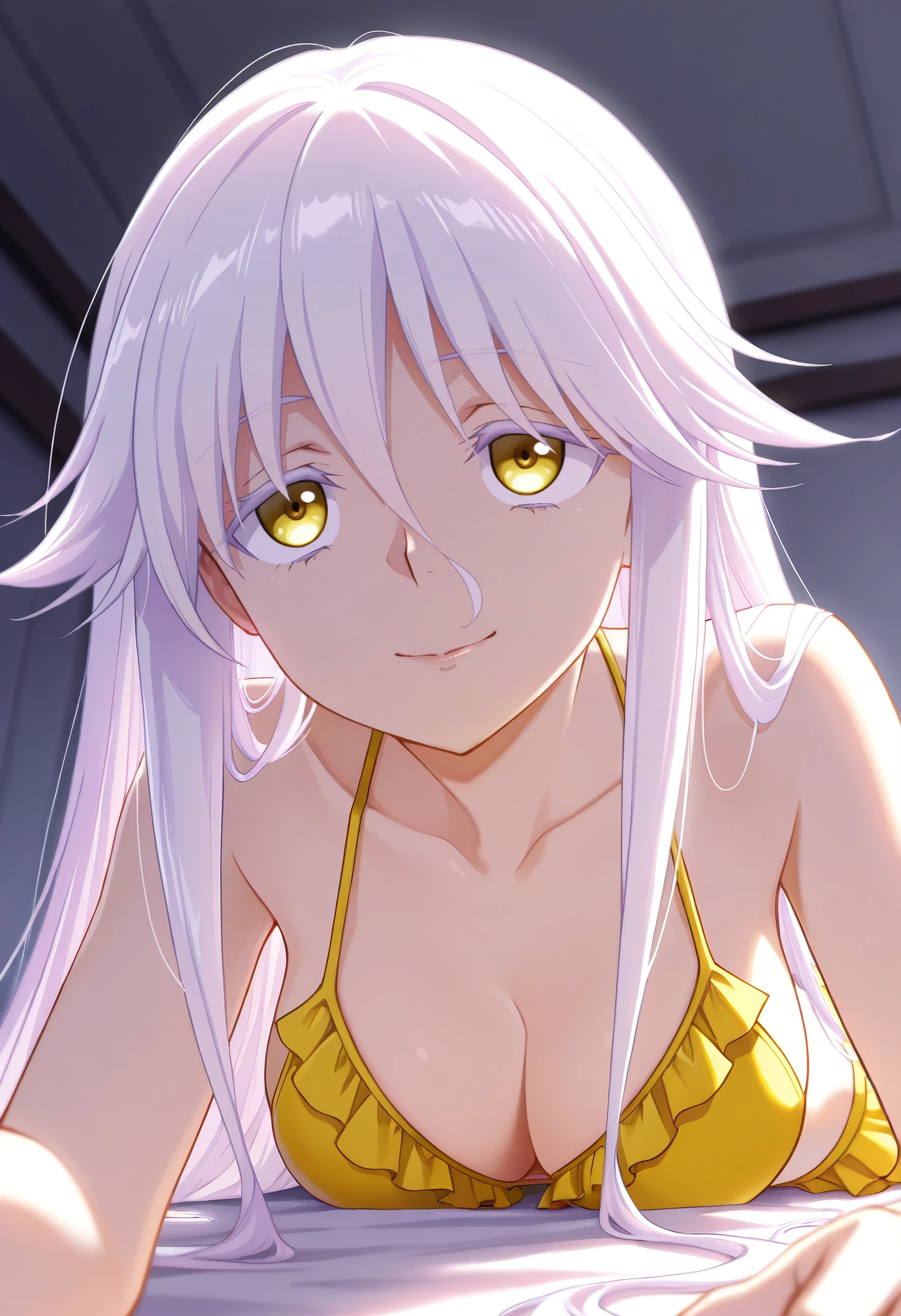 HNMLiselotte, white hair, long hair, very long hair, hair between eyes, yellow eyes, hair flaps, colored eyelashes,