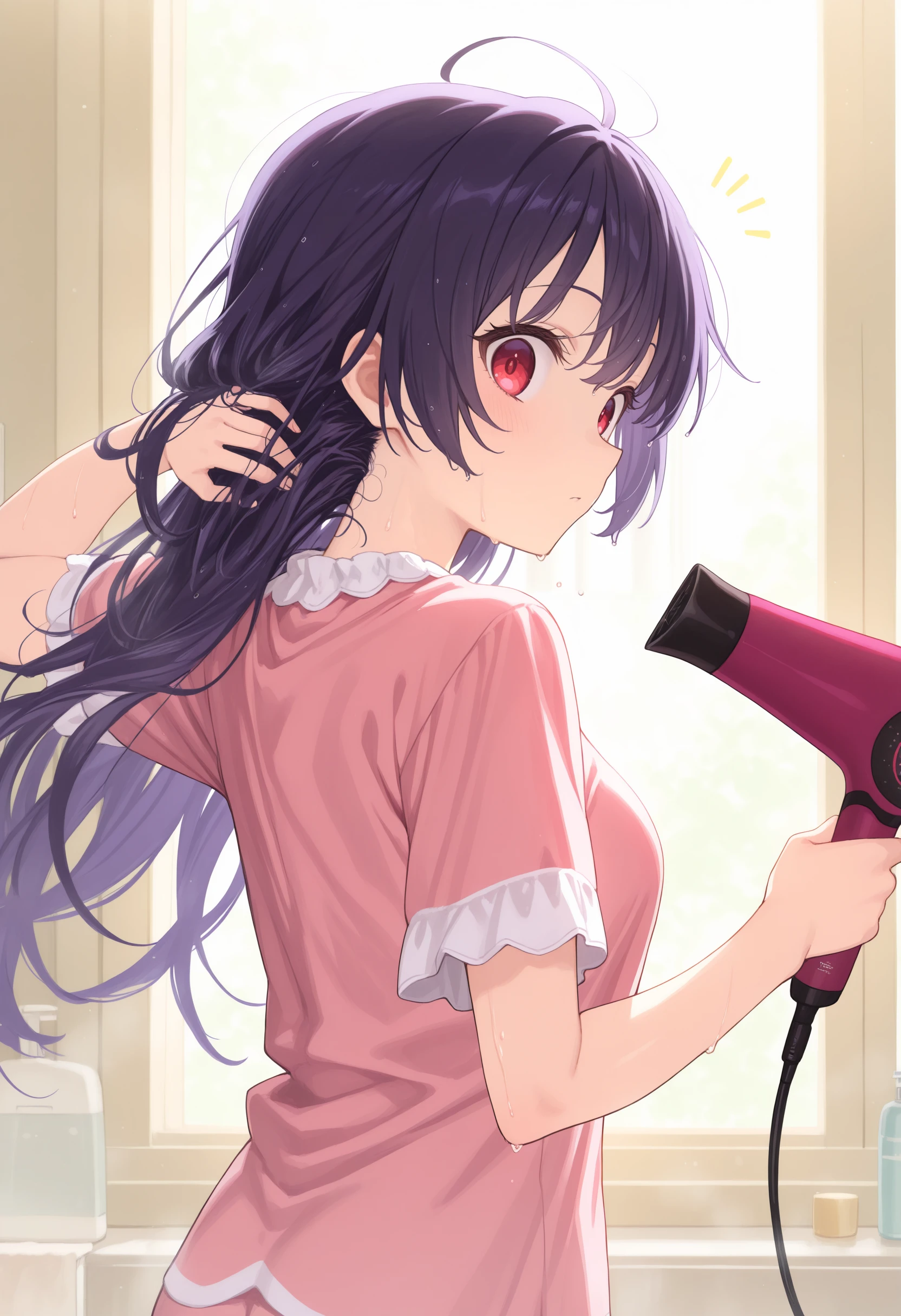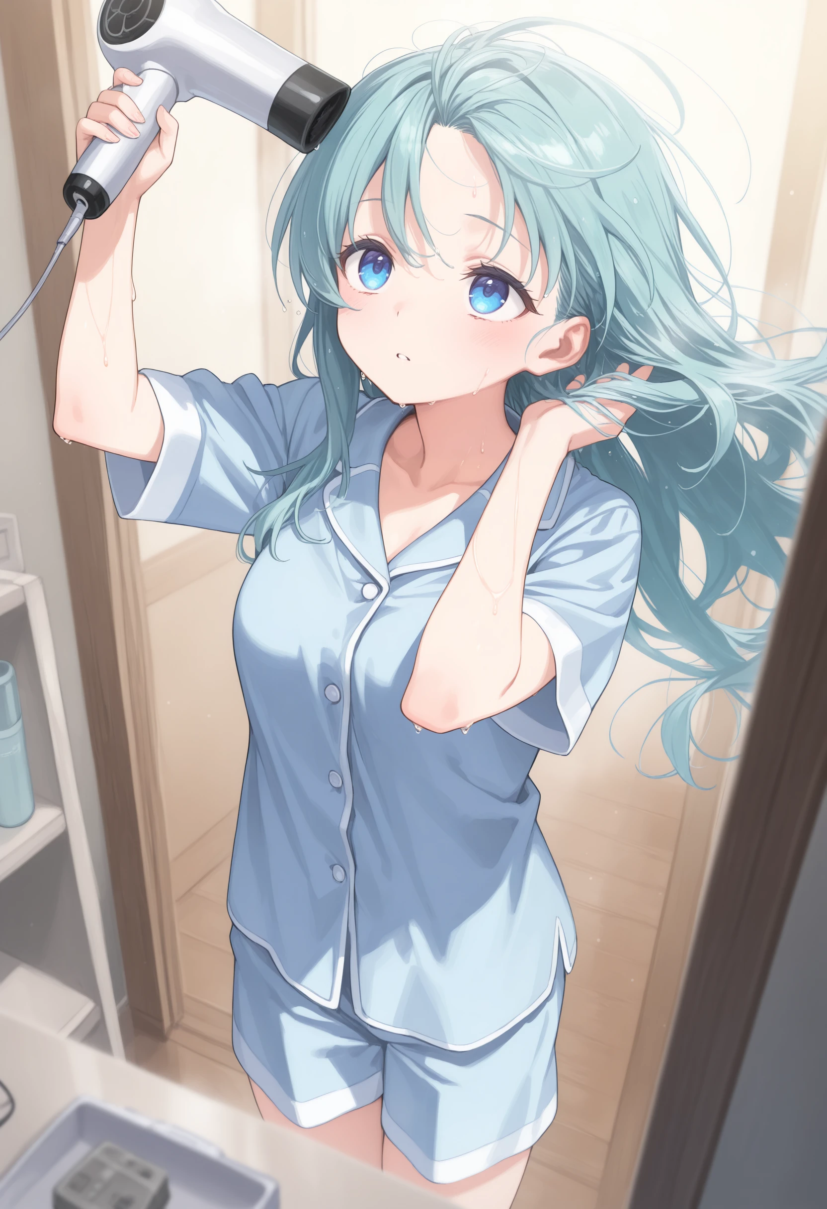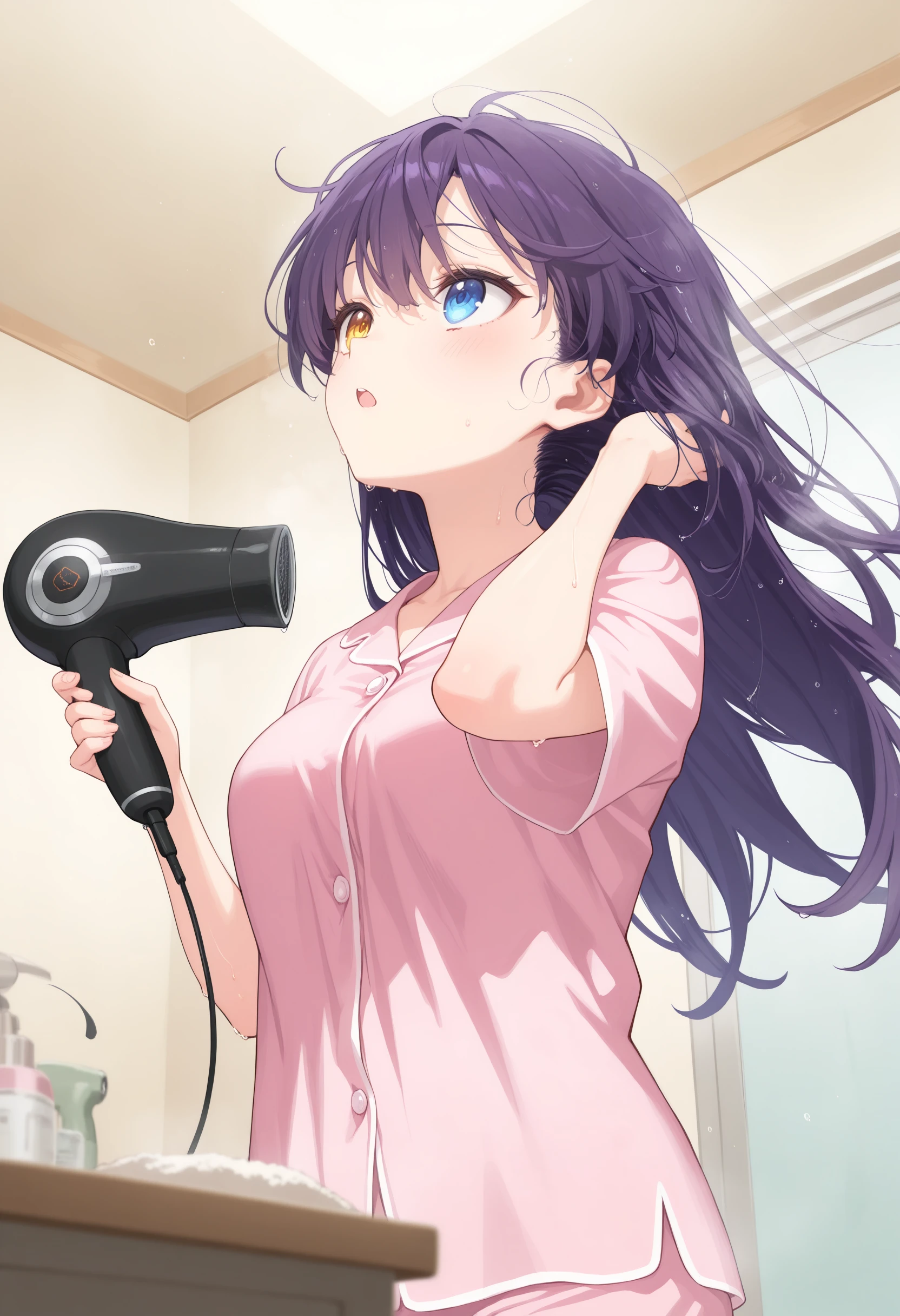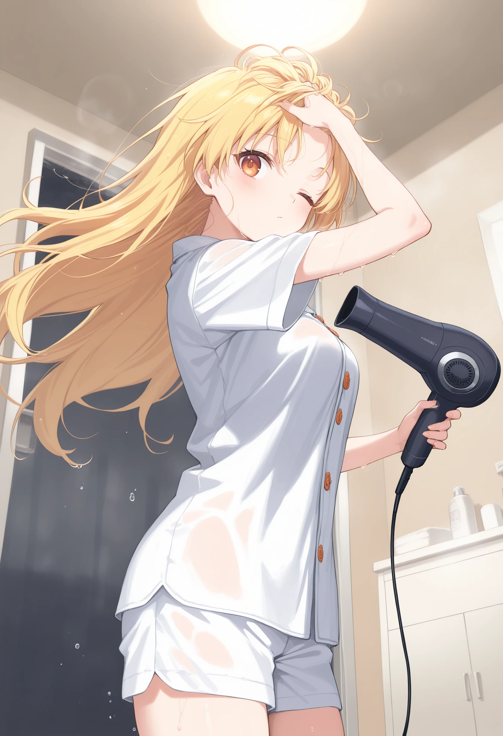 This is a LoRA that dries its own hair with a hair dryer.