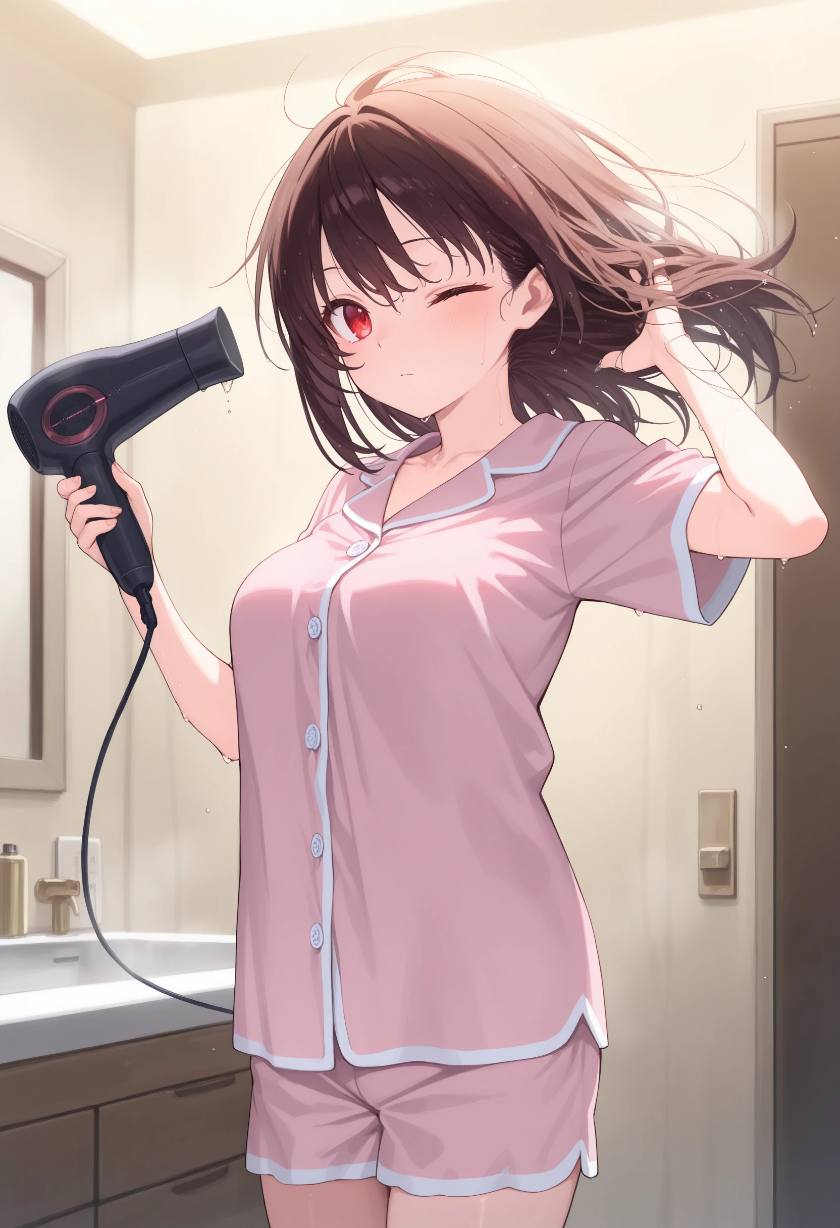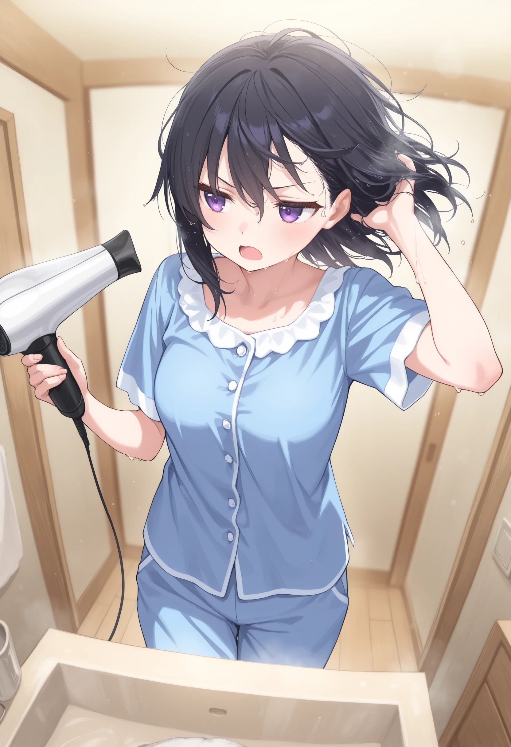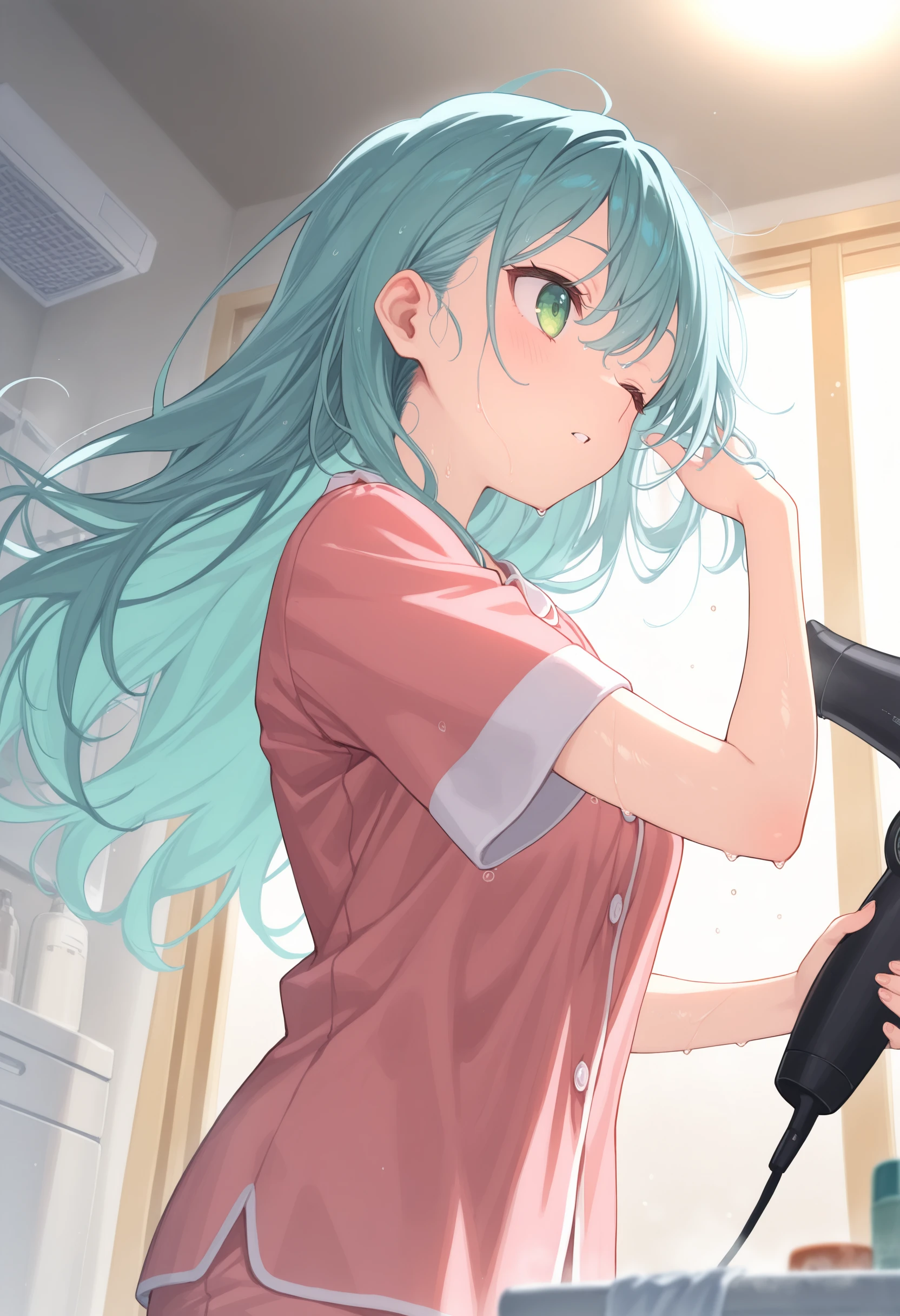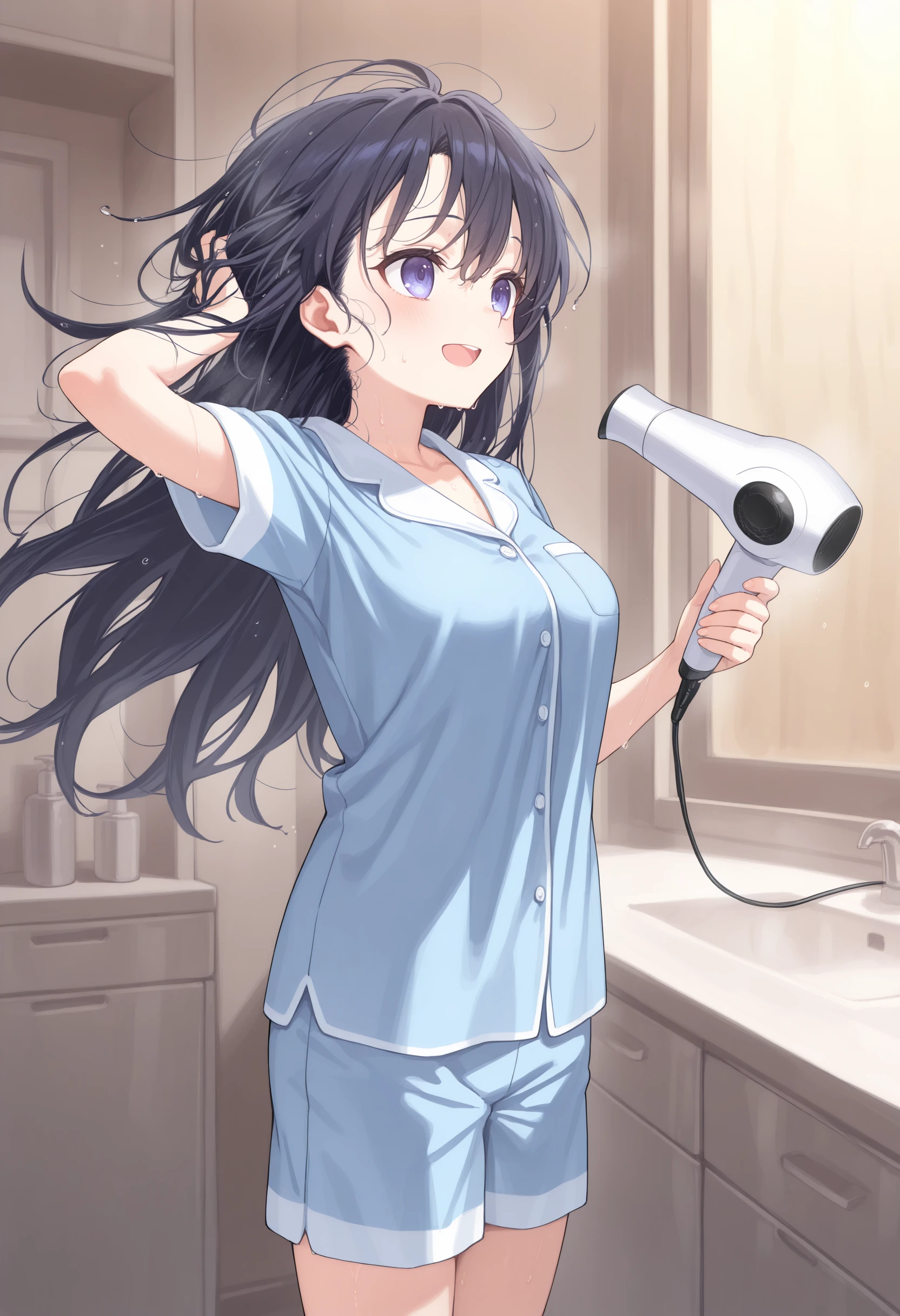 This is a LoRA that dries its own hair with a hair dryer.
