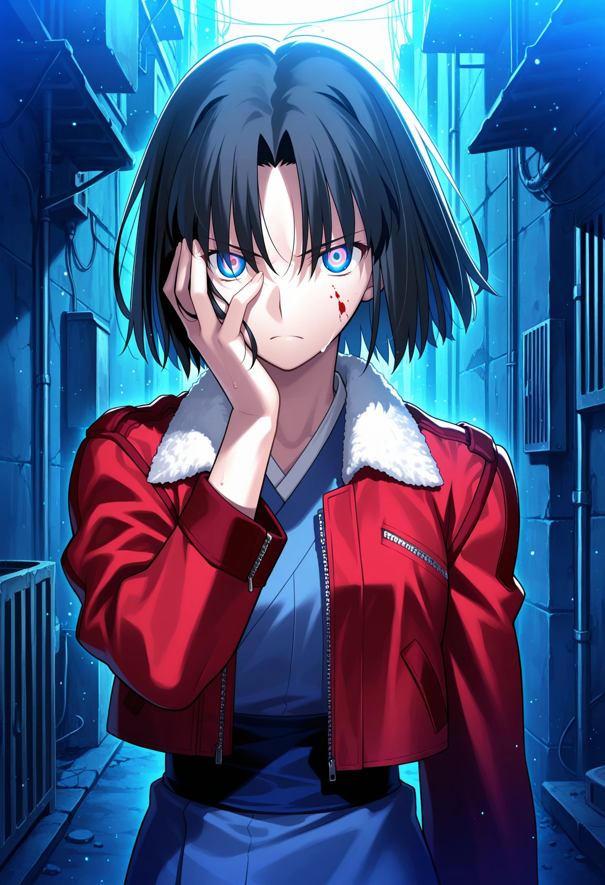 Mystic Eyes of Death Perception (直死の魔眼) : blue eyes, glowing eyes, glowing