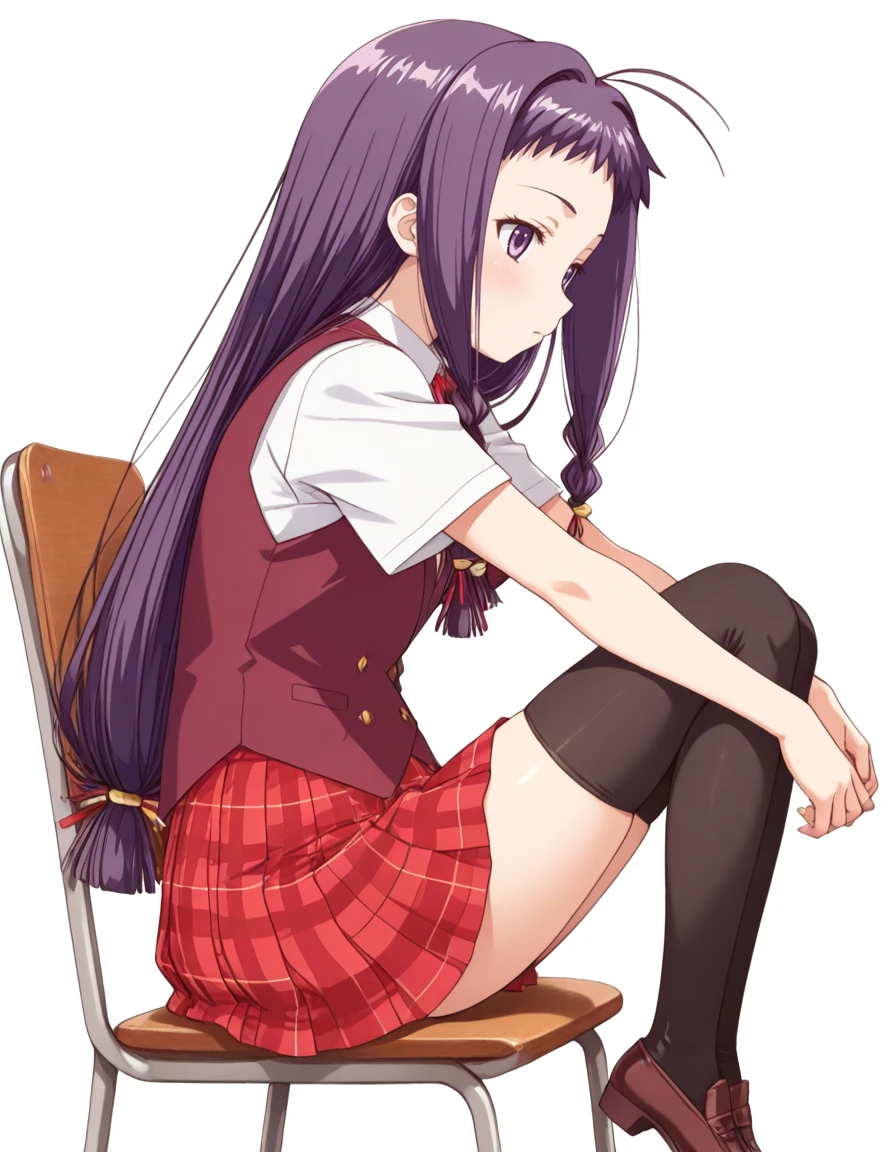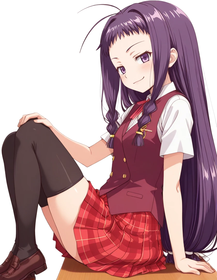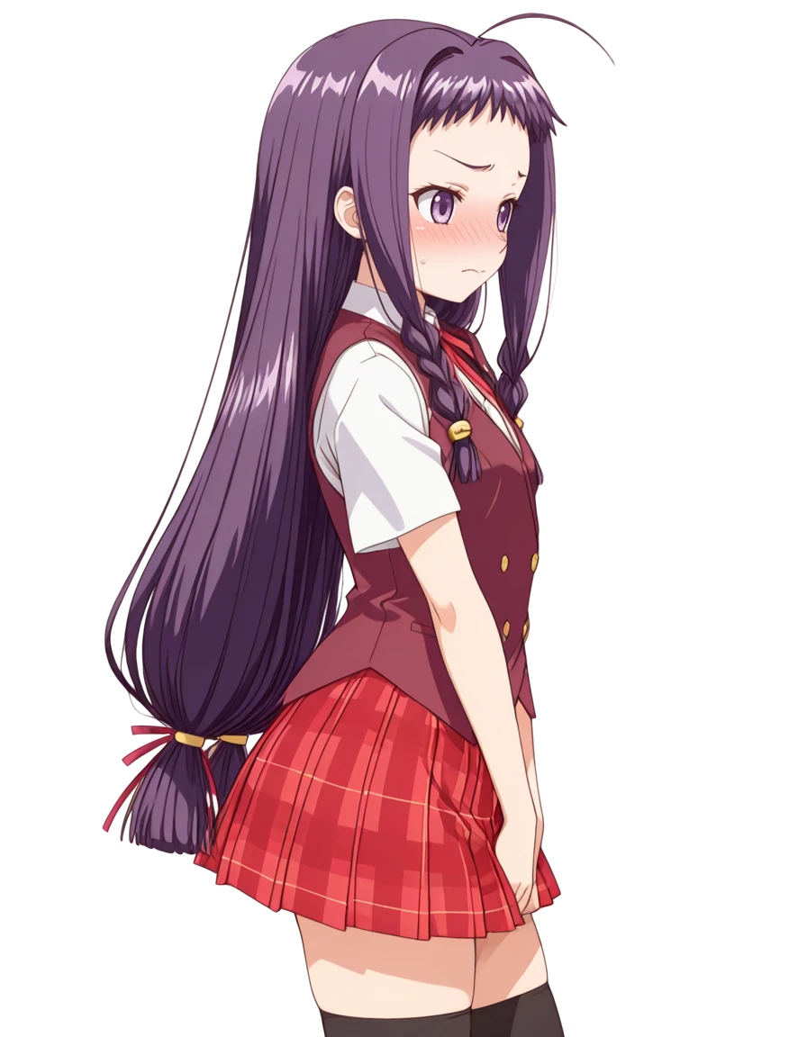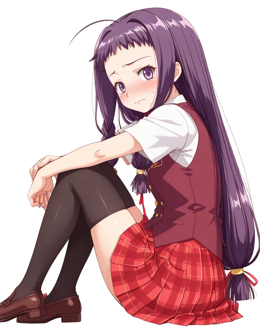 ayase yue, dark-purple hair, purple eyes, black thighhighs, shorty,