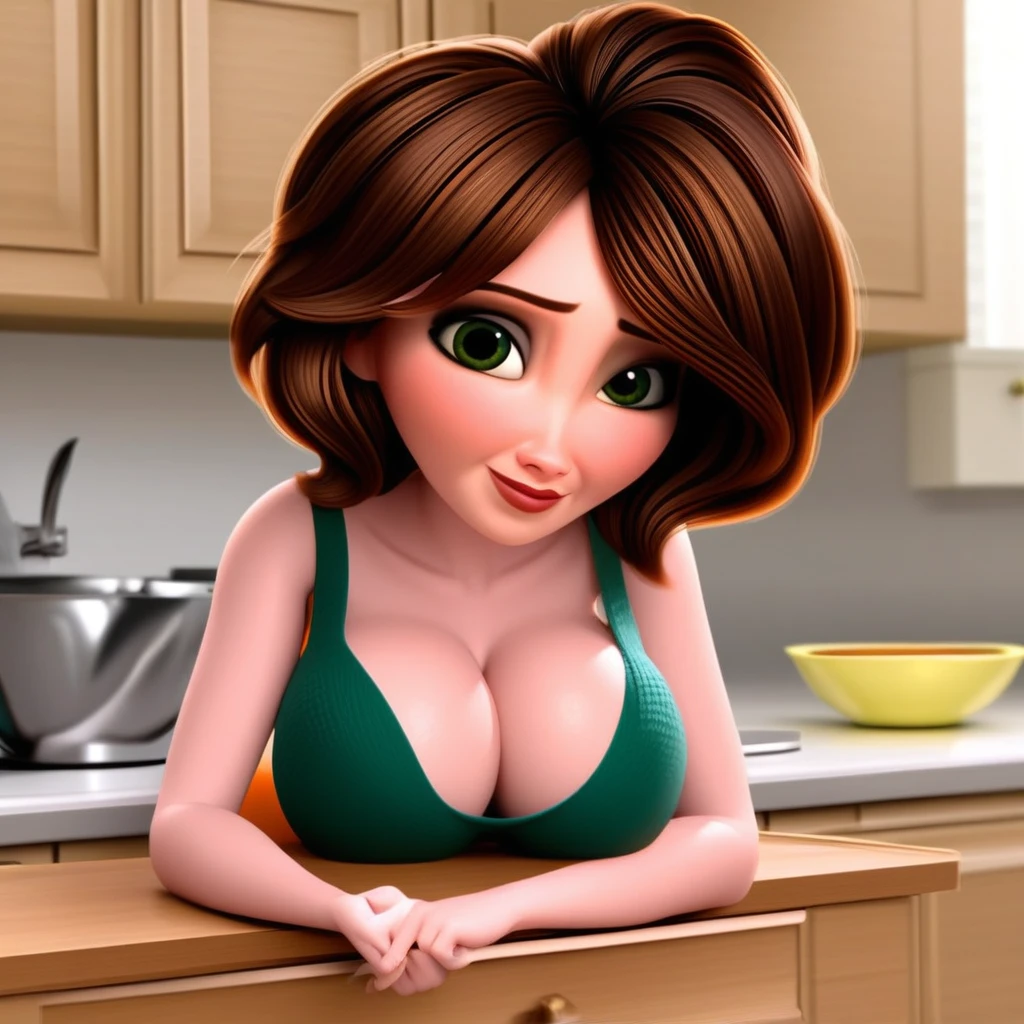 Outfit Recognition: Accurately portrays her casual, approachable style, typically with her green shirt and apron.