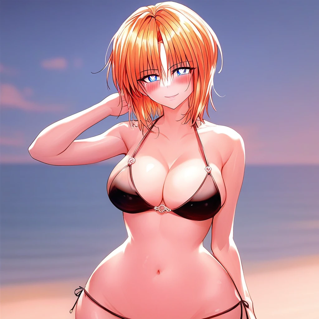 (( <lora:lee_ru-ri:1> , lee_ru-ri, piercing blue eyes, clear eyes, bright pupils, beautiful eyes, beautiful orange hair, beautiful short bob haircut, bangs, huge and shaggy breasts, thin waist, wide hips, beautiful skin, natural beauty, extraordinary beautiful woman, attractive woman, super sexy woman, lustful body, sexy woman with seductive obscene body, sensual body, voluptuous body, sexy beauty, ))