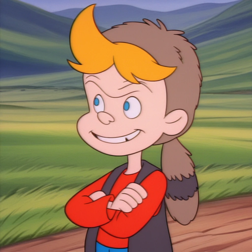 You have the option to generate an image of Verne Brown without his racoon skin cap, though you could use ponytail as a negative tag if his hair incorrectly appears with an unnaturally looking ponytail.