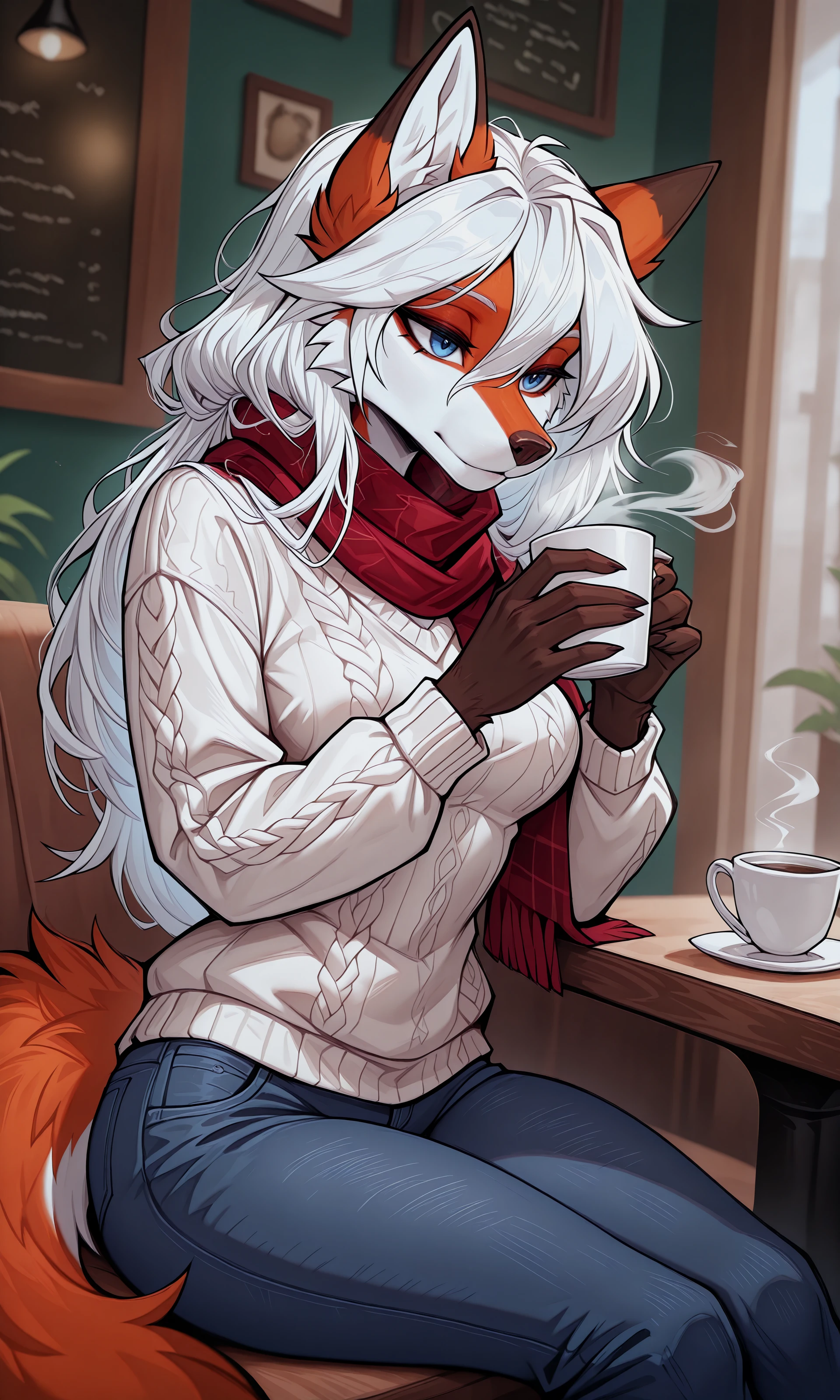 Feyra, white_hair, orange_fur, blue eyes, two-tone_fur, white fur,