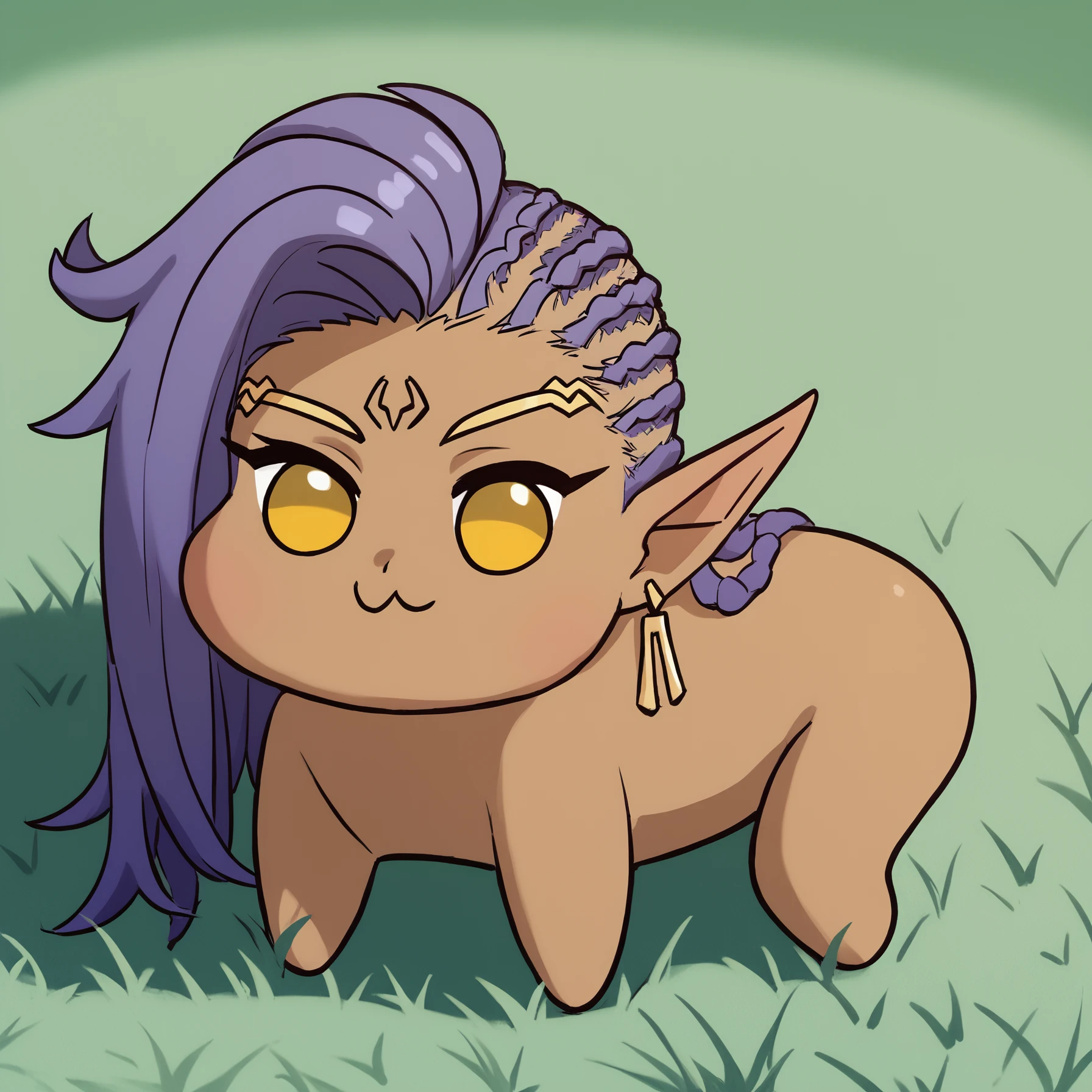 Always needed: "elaishasub, pointy ears, dark-skinned female, yellow eyes, earrings, purple hair, long hair, dreadlocks, large breasts"